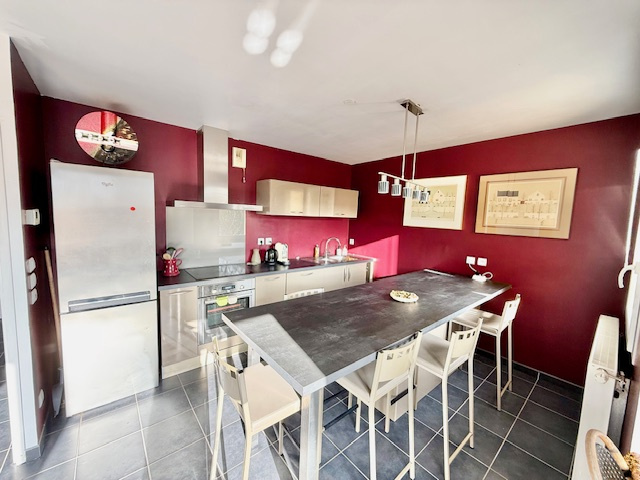 FERNEY-VOLTAIRE 01210, AU COEUR DE VILLE, AU DERNIER ETAGE (2/2 sans ascenseur) d'une petite résidence, Bel appartement type T3 traversant comprenant : une entrée avec un placard, une cuisine entièrement équipée ouverte sur le séjour-salon avec accès balcon exposé au sud, deux chambres avec un placard, une salle de douche, un wc séparé.