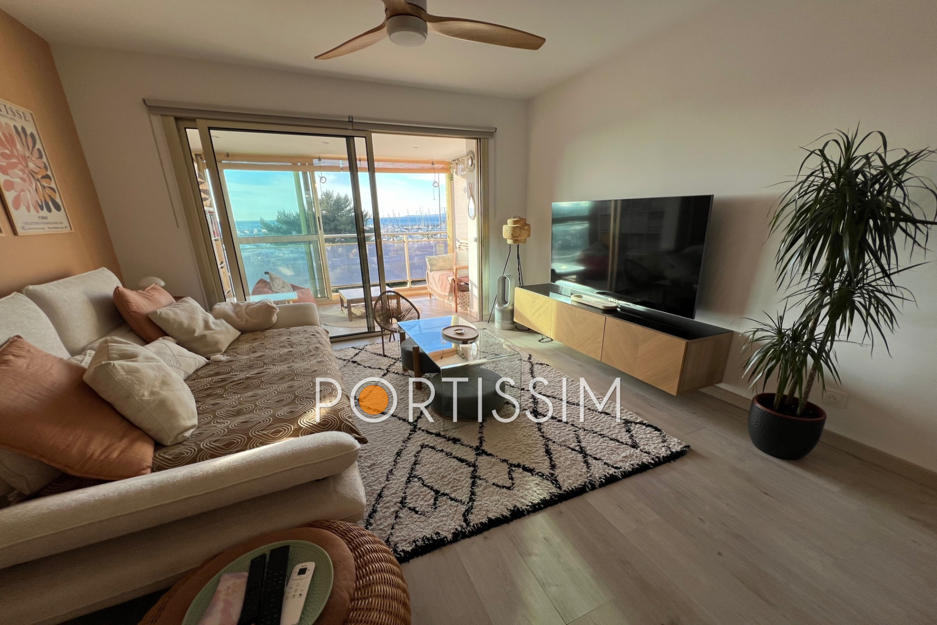 Bel appartement 3 Pièces traversant, belle vue mer panoramique sud, deux chambres avec rangements et très calmes, cuisine équipée moderne, salle de douche à l'Italienne, wc indépendant, terrasse et Balcon, étage élevé. Cave et Parking privatif,
