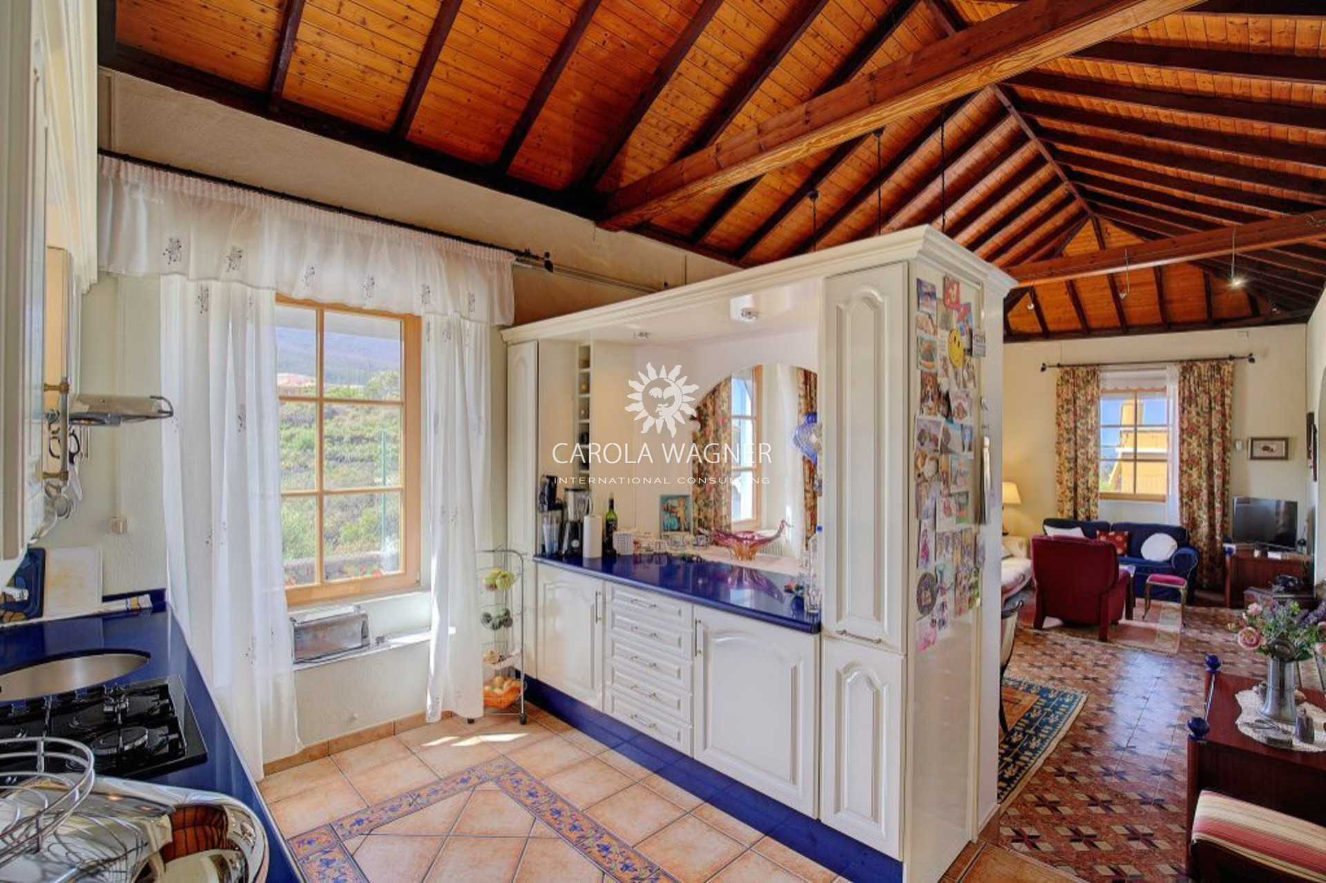 PRESTATIONS: Style canarien, En partie toit plat et en partie toit typique canarien, Belle cuisine en bois massif faite sur mesure, avec lave-vaisselle, Portes et fenêtres en aluminium ou bois avec double vitrage, En partie oscillo-battantes, Partiellement munies de volets roulants en alu et écran anti-mouche, persiennes électriques, carrelage, Pergola en bois, Chauffage à gaz, Poêle à bois, Alarme, Raccordement à l'eau de ville, Action d'eau en propriété, Internet par fibre optique, TV/SAT, Murs de jardin pierres canariennes.