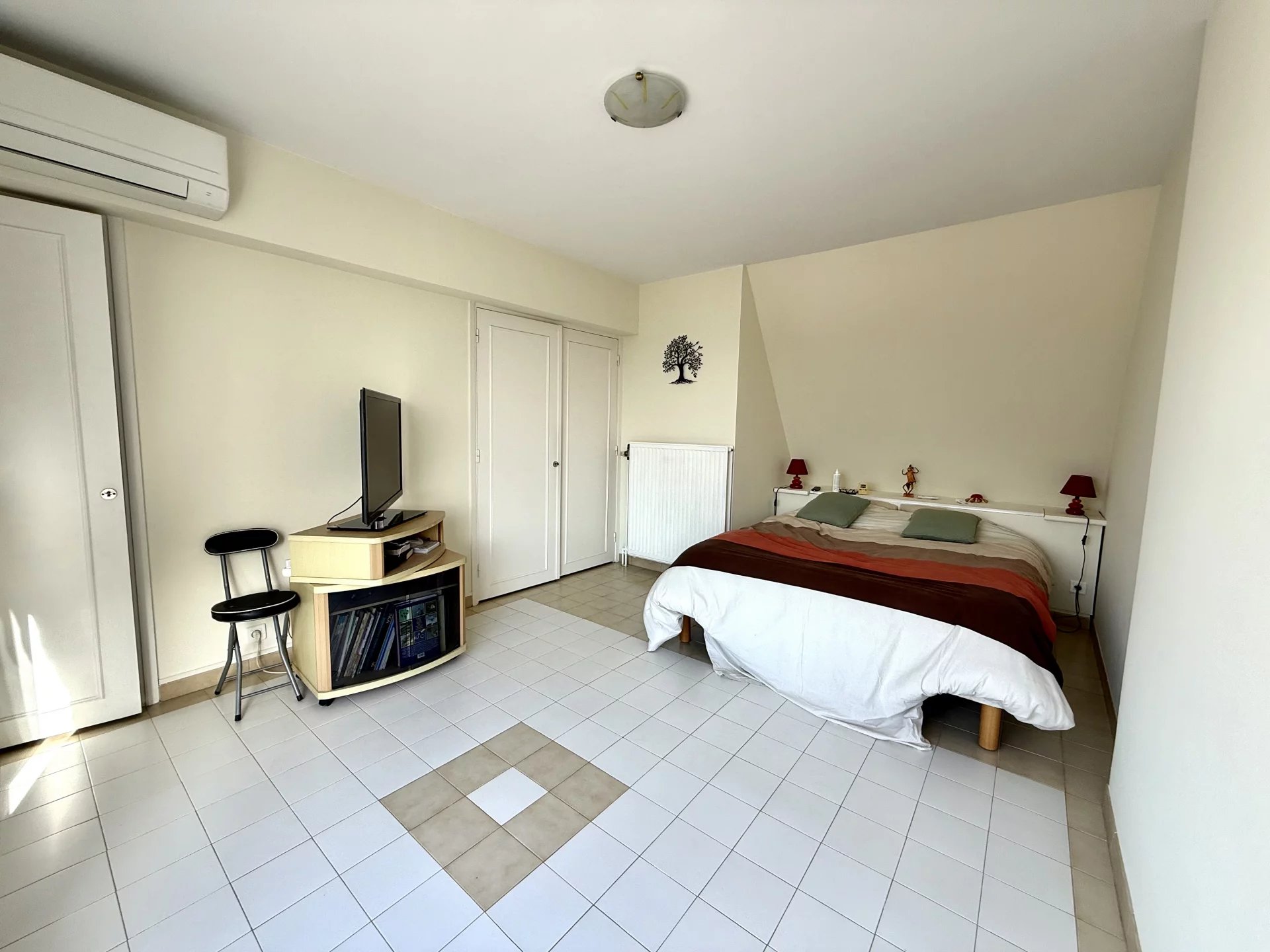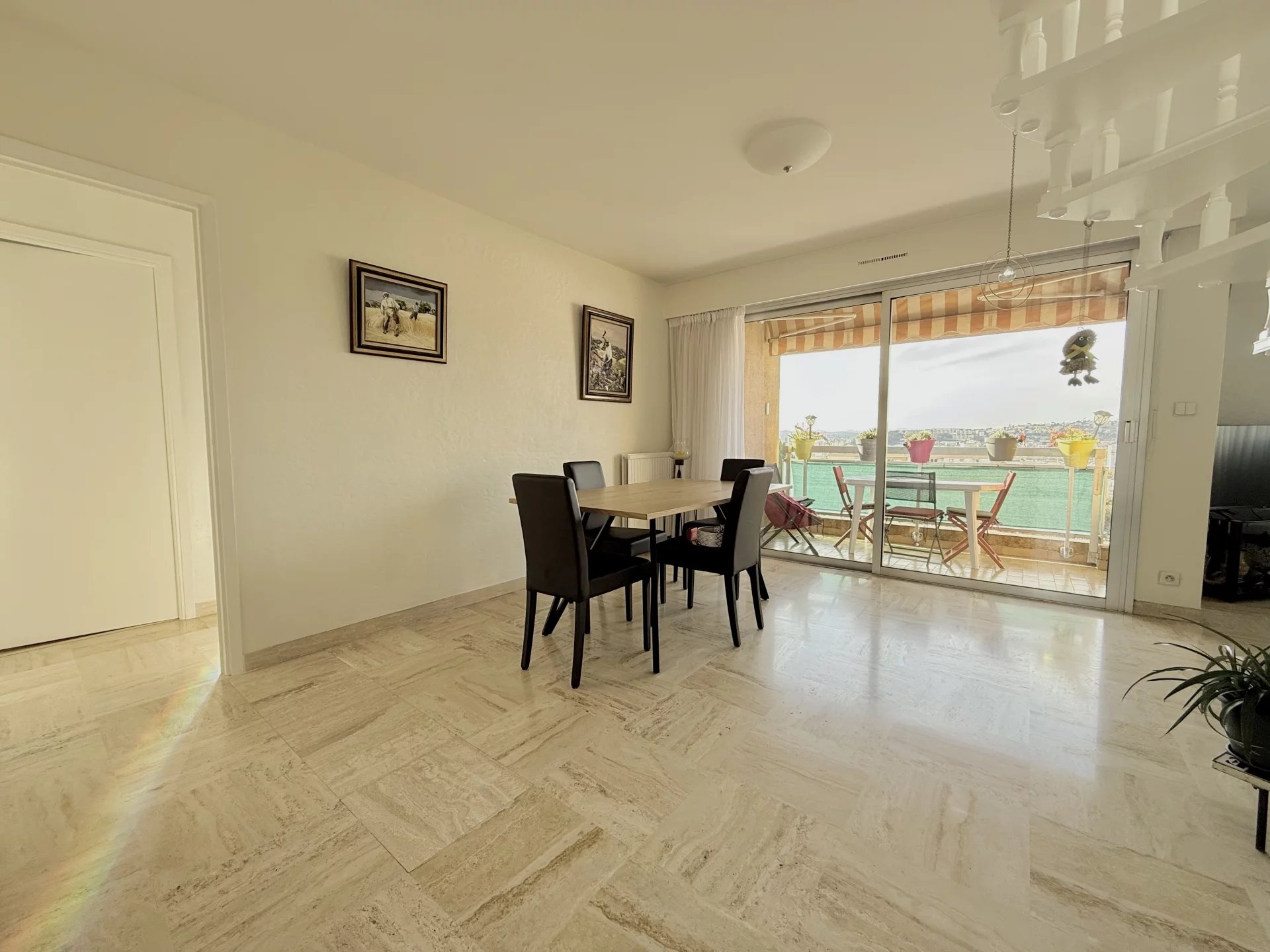 D’une surface généreuse de 113 m², ce bien séduit par ses volumes, sa luminosité et ses espaces extérieurs exceptionnels, totalisant environ 30 m² de terrasses exposées Sud-Ouest, offrant une vue mer dégagée jusqu’au Cap d’Antibes.