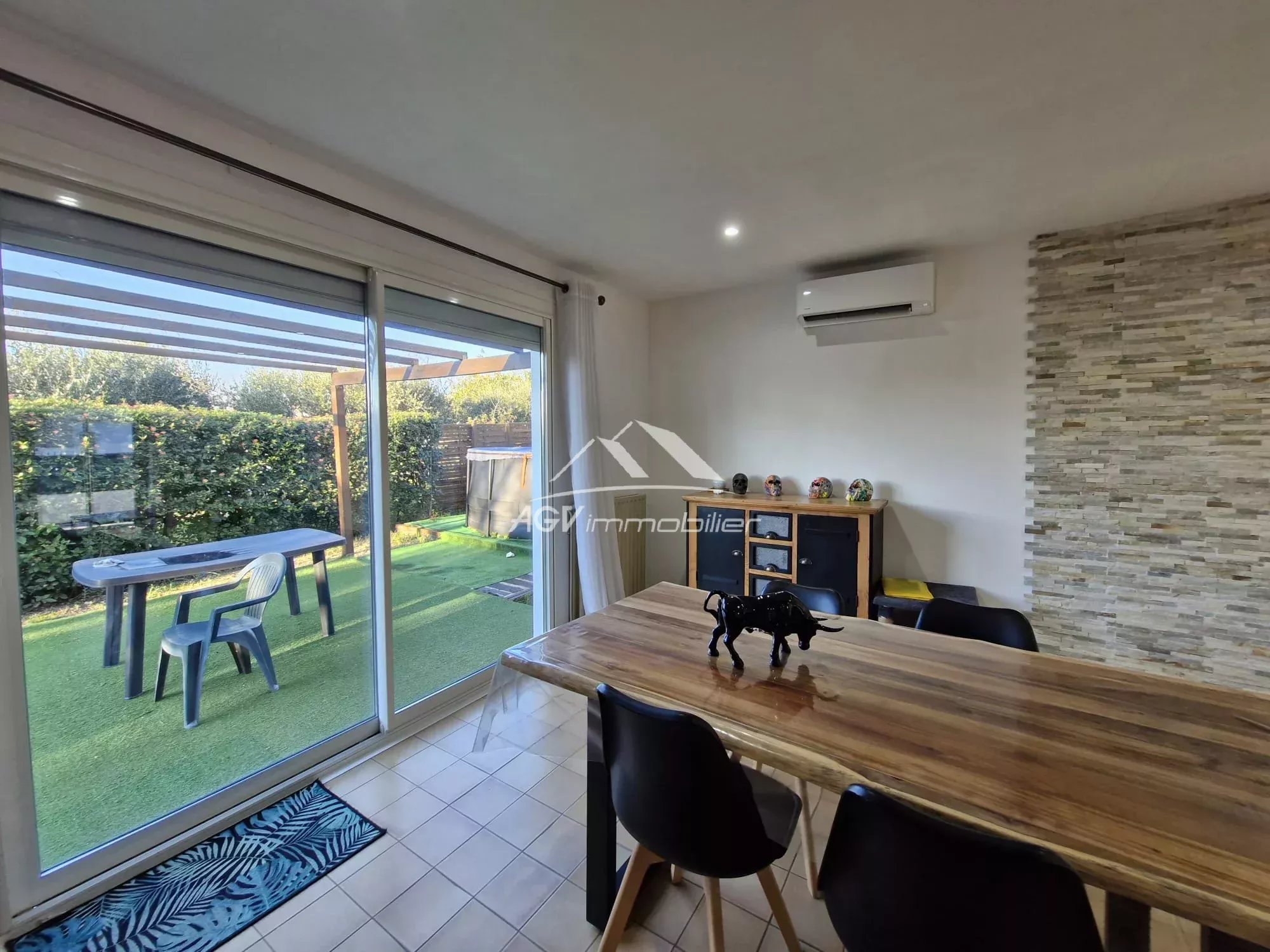 Proche des commodités à Alès, maison de plain-pied d'environ 82 m² rénovée avec goût, sur un terrain entièrement clôturé d'environ 500 m² se compose d'une pièce de vie avec cuisine ouverte, une buanderie, deux chambres, une salle de bain et un toilette séparé. La maison dispose d'un garage attenant, un atelier et une piscine hors-sol.