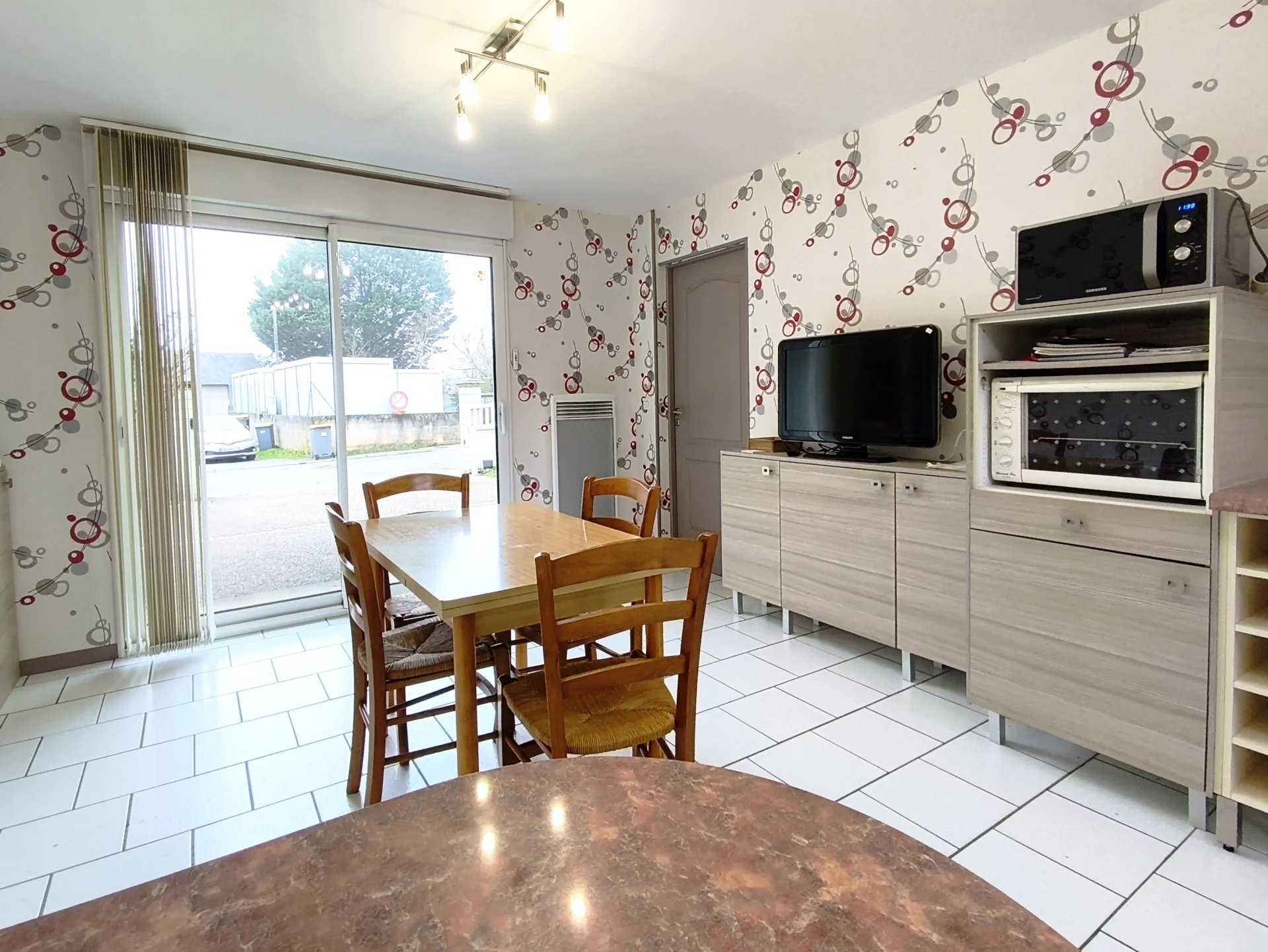Une chambre avec salle d'eau et WC, un dégagement, une cuisine aménagée, un local de stockage, un atelier, un double garage de 82m².