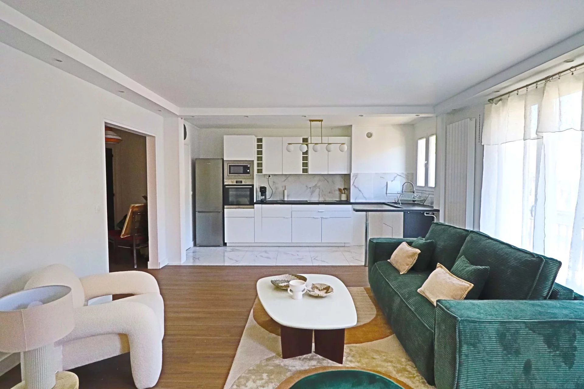 Quartier Stalingrad: Superbe 3 pièces refait à neuf et vendu entièrement meublé, il est au 2ème étage d'un immeuble de l'année 1973. Très lumineux et vue dégagée. Il vous séduira par son plan parfaitement optimisé. Il se compose de : Une entrée avec un dressing, un double séjour donnant sur balcon avec une cuisine ouverte moderne toute équipée, de 2 chambres(possibilité 3) avec balcon, d'une salle de bains, d'une salle de douche, d'un wc invité, d'un espace buanderie. Une cave et un parking en sous-sol complète ce bien. Proche du métro ligne 2,5,7 (à 200 mètres), des écoles et commerces. Appartement coup de coeur! Contact Corinne Teboul 0620522123