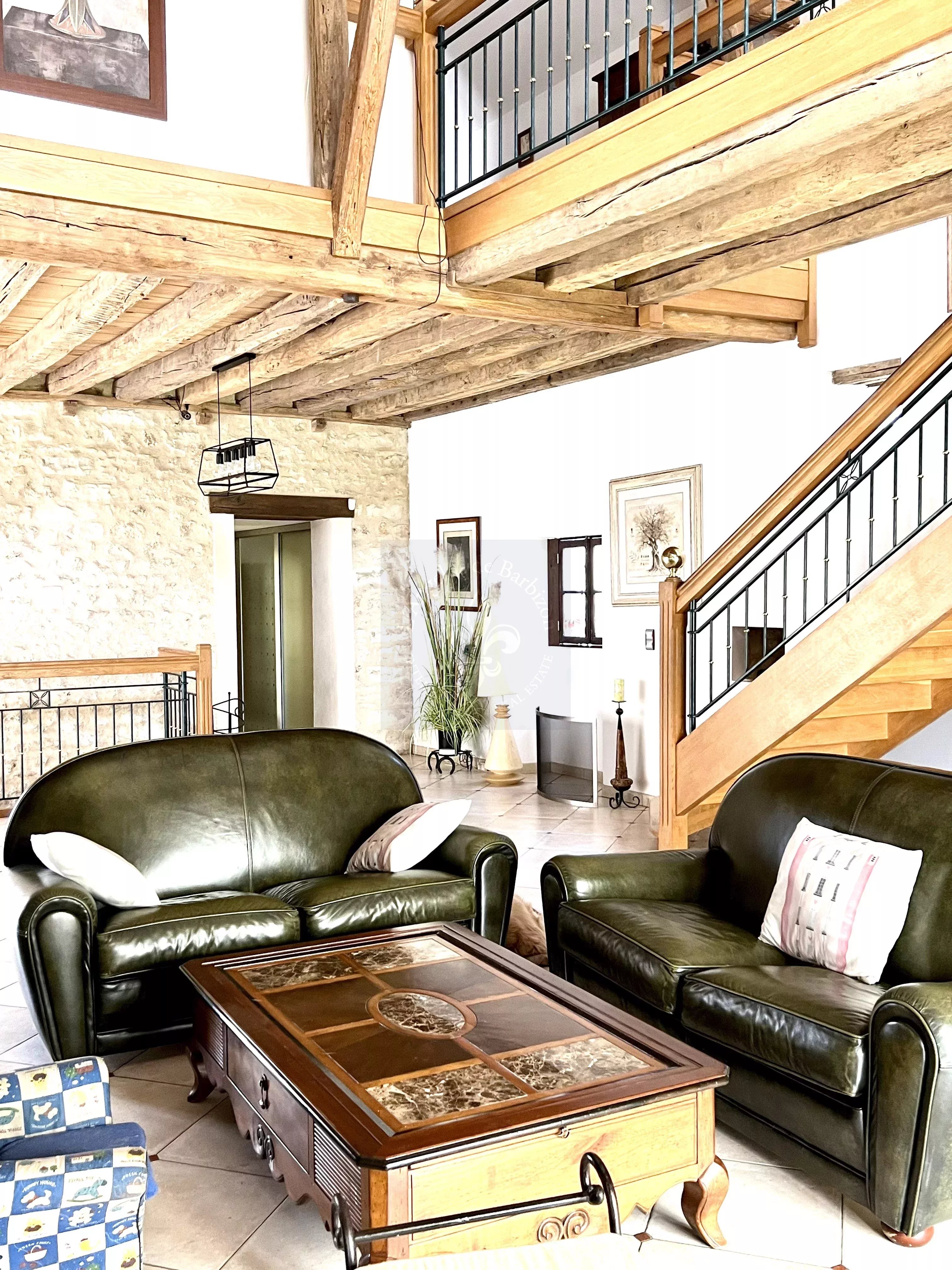 Vendu par l'agence-Magnifique propriété de charme en pierre du pays pour 450 m2 surfaces utiles dont 398,62 m2 habitables avec véranda (chauffée par la géothermie ) l'ensemble dominant sur un beau terrain de 2111 m2 clos et disposant d'une belle piscine chauffée uniquement 7 km de Fontainebleau et accès forêt à pied. Le bâtiment principale comprenant: une belle de réception ( salon/ salle à manger ) avec cheminée centrale , un belle véranda, dégât, une cuisine aménagée et équipée, une arrière cuisine/cellier/chaufferie, une salle de jeux ou salle de musique en semi Ssol ( cave);Etage: grand palier, dégât, quatre chambres, une salle de bain et douche, 2 wc, une salle de douche.Un appartement attenant à l'habitation principale avec son accès indépendant comprenant: un séjour avec cuisine ouverture aménagée et équipée, wc, une chambre avec une salle de douche.une annexe indépendant comprenant: une studette avec sa salle de douche et wc.une cave avec accès par l'extérieur.Double garage.Une annexe en bois comprenant : un local technique pour la piscine et une pièce de rangement pour le jardinage.Puits.Assainissement collectif.Le tout sur un terrain de 2111 m2 clos