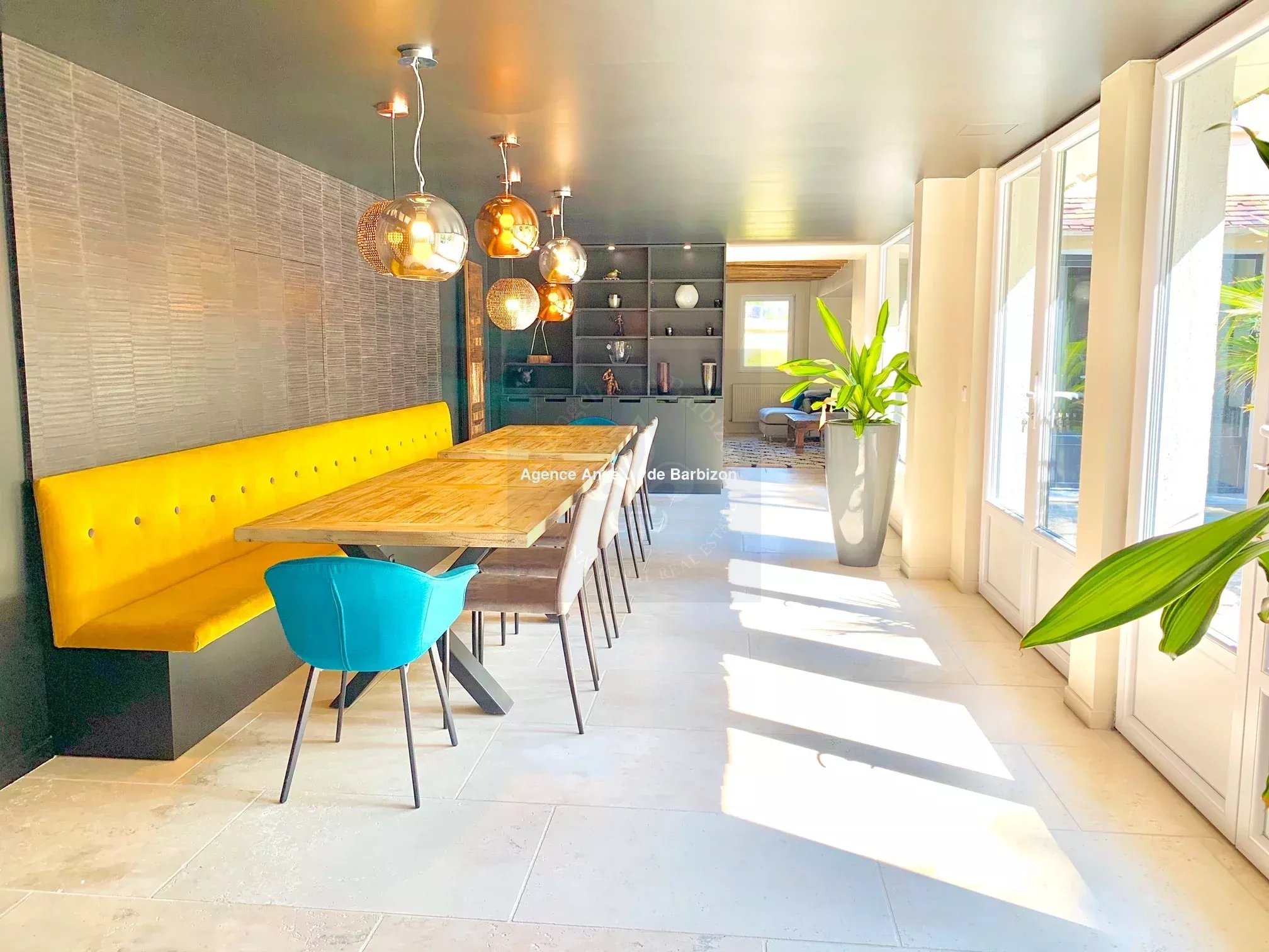Splendida proprietà in pietra locale - Esclusività Alla periferia di Barbizon (2,5 km) - Accesso diretto alla foresta - Raro sul mercato In esclusiva, nel cuore di un ambiente naturale privilegiato, questa magnifica proprietà in pietra locale, risalente al 1830, offre circa 400 m² di spazio abitativo e si affaccia su un superbo terreno recintato di 5.000 m², con accesso diretto alla foresta. Un ambiente eccezionalmente tranquillo a pochi minuti da Barbizon. Una casa piena di carattere con volumi notevoli. Fin dall'ingresso nella proprietà, sarete sedotti dai suoi spazi, dalla sua luminosità e dalle sue caratteristiche di qualità. Il piano terra è composto da : Un bellissimo ingresso, un'ampia cucina attrezzata, Un ripostiglio, un bagno per gli ospiti, un'elegante sala da pranzo, Una magnifica sala di ricevimento di 60 m², disposta intorno a due salotti, che offre un'atmosfera calda e raffinata, Un corridoio che conduce a tre grandi suite padronali, ciascuna con spogliatoio e bagno con doccia e WC. Primo piano: Altre due suite padronali, ciascuna con spogliatoio e bagno o doccia con WC, Due uffici, ideali per il telelavoro o per spazi privati. Annessi e spazi aggiuntivi: Uno chalet in legno indipendente, perfettamente integrato nel terreno, composto da: Un bel soggiorno, Una cucina a vista, Una camera da letto, Un bagno con doccia e WC, uno studio, Una terrazza con vista sul parco, ideale per intrattenere o ospitare parenti e amici. Due annessi per sale giochi o aree di svago, Un annesso per le attrezzature da giardino, Un ampio parcheggio. Un ambiente di vita privilegiato Questa rara proprietà è perfetta per una famiglia numerosa, per una seconda casa o per un'attività di ospitalità di alto livello, combinando autenticità, natura e l'immediata vicinanza della foresta di Fontainebleau. 📍 Posizione: Alle porte di Barbizon 💰 Prezzo: 1.365.000 euro 📐 Superficie abitabile: 400 m² 🌳 Terreno: 5.000 m² recintati 🛏 10 locali - 6 camere da letto - 5 suite 📌 Informazioni sui rischi a cui è esposto questo immobile sono disponibili sul sito web di Géorisques: www.georisques.gouv.fr