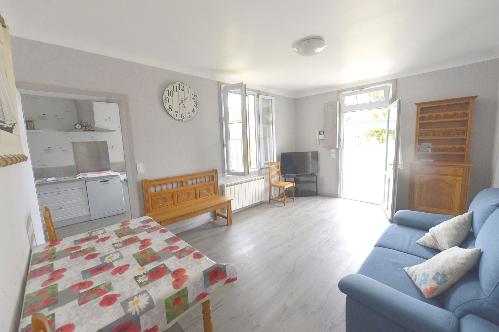 Saint Georges de Didonne. Maison d'environ 55 m² sur une parcelle d'environ 225 m².Il y a deux chambres, un salon séjour, une cuisine indépendante, une salle de bain et un toilette séparée. la maison est très bien équipée. il n'y a aucun travaux à prévoir, elle se situe dans un quartier résidentiel sans vis à vis. Vous pouvez stationner deux véhicules sur la parcelle. il y a un grand garage qui peut être aménager. La maison se situe, dans un quartier extrêmement calme, dans une impasse à 500 mètres de la plage et du centre ville. Les informations sur les risques auxquels ce bien est exposé sont disponibles sur le site 'Géorisques'.