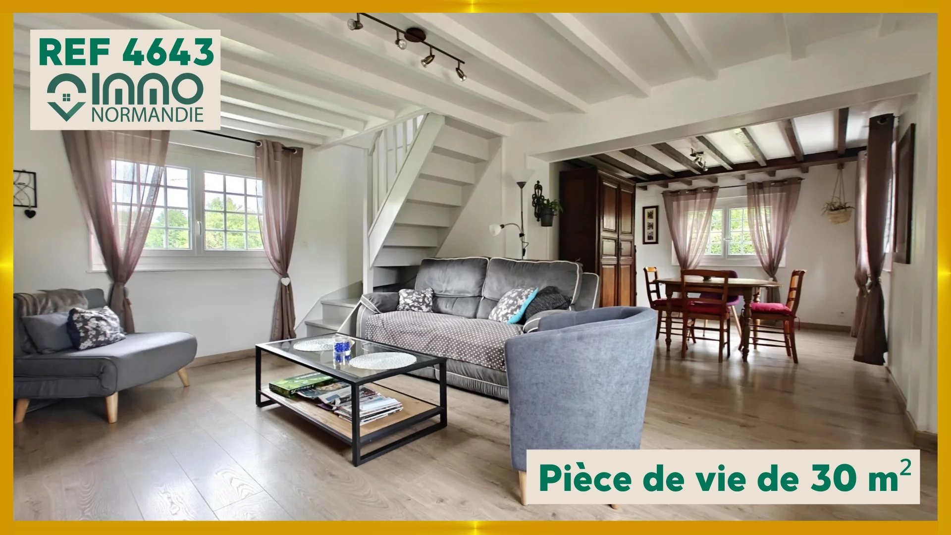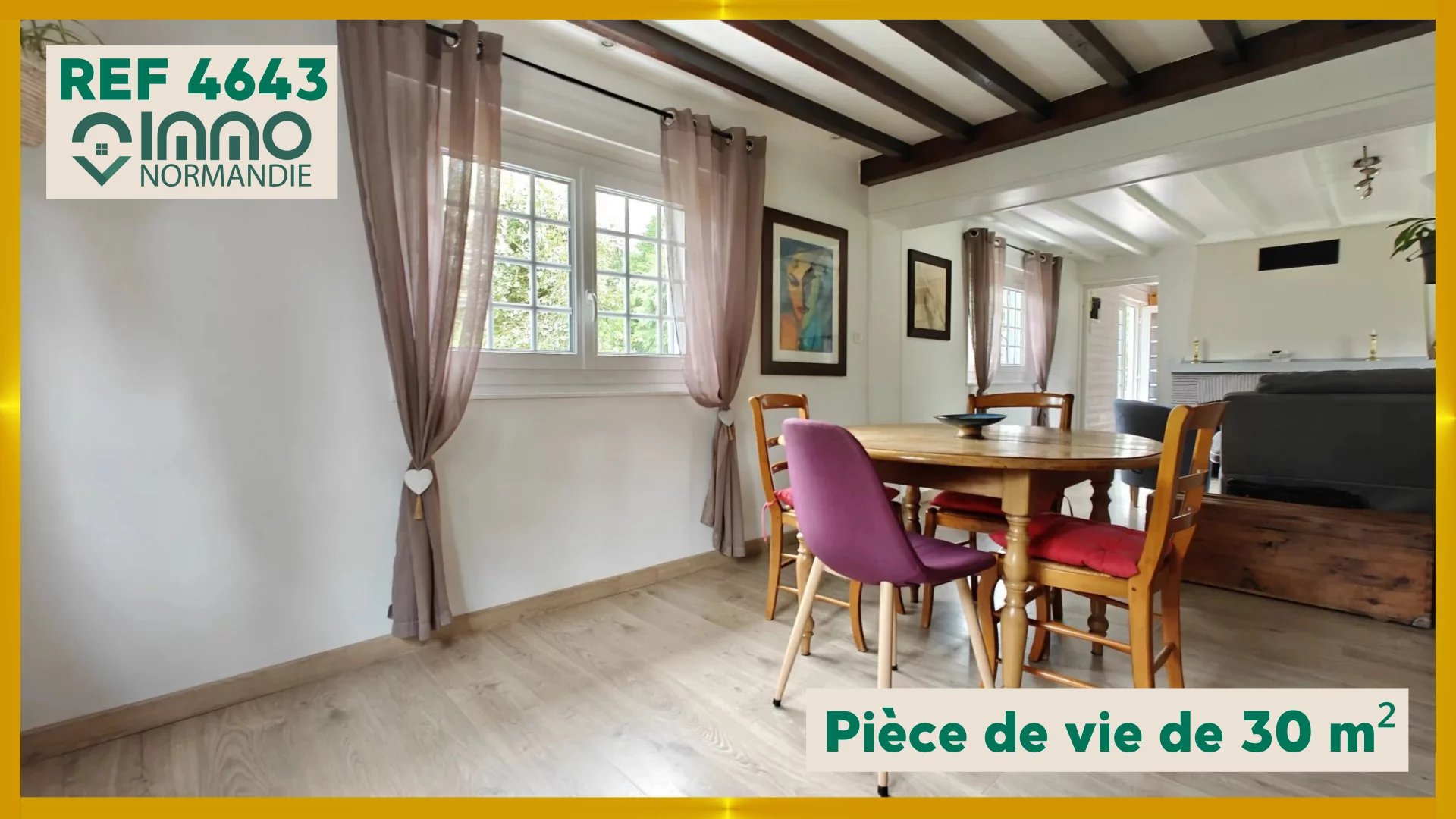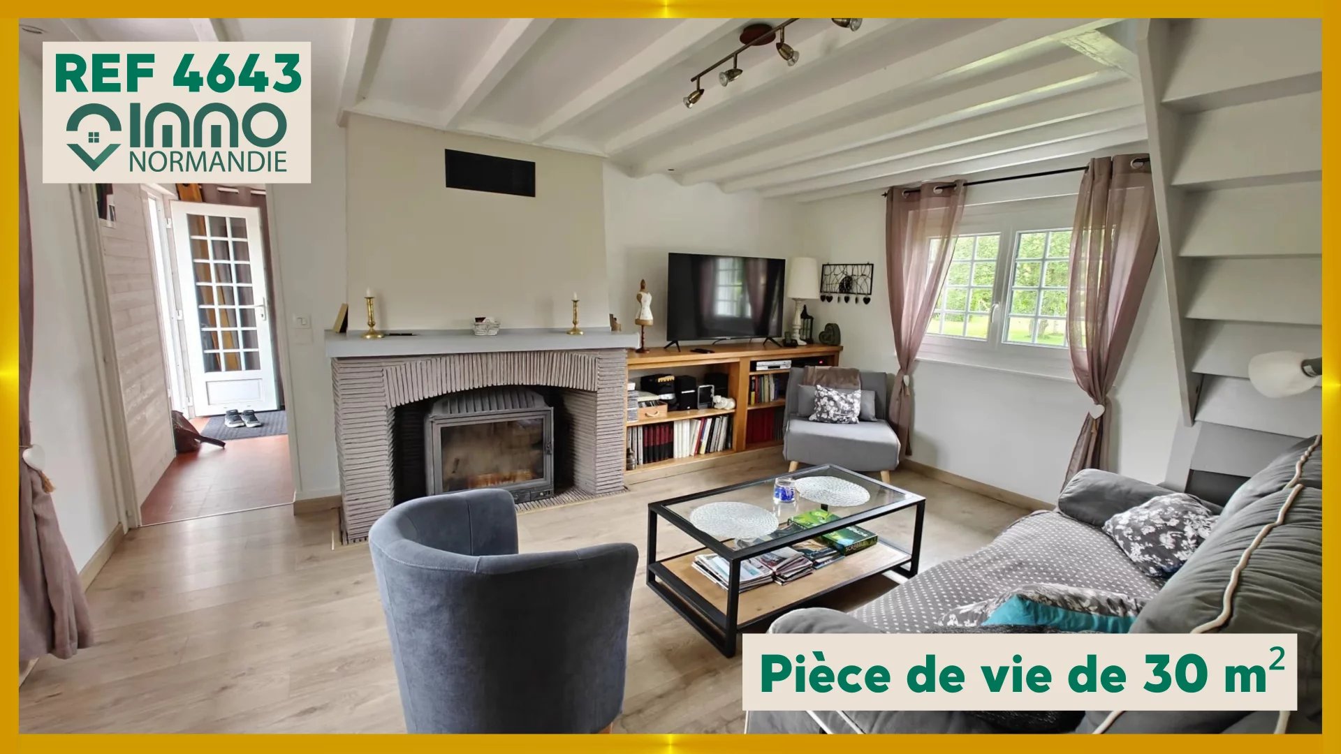 Maison à usage d'habitation comprenant : Au rez-de-chaussée : entrée, cuisine A/E, salle à manger/séjour avec insert à bois, salle de bains, WC. A l'étage : palier, 2 chambres, salle de douche avec WC. Garage, atelier, dépendance normande, dépendance. PVC double vitrage, chauffage électrique, tout à l'égout.
