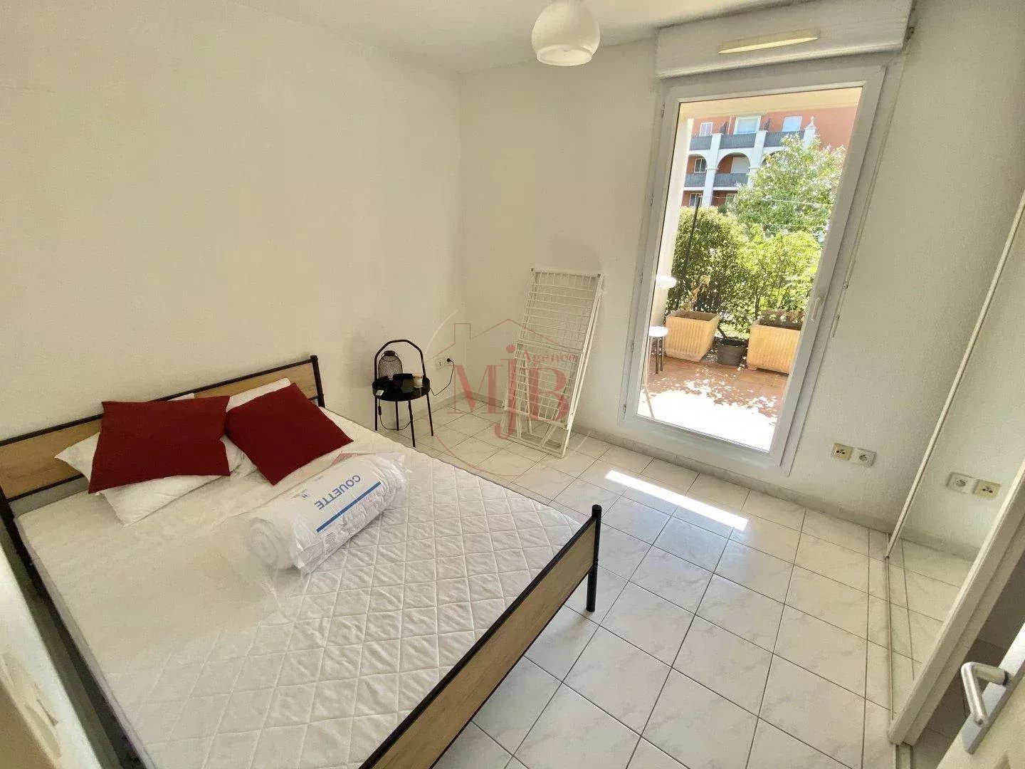 Dans belle résidence sécurisée, appartement T2 de 39.52 m2 (loi Boutin) + très grande terrasse (23 m2) en Rez de chaussée comprenant une jolie pièce à vivre avec cuisine ouverte, une chambre indépendante avec placard de rangement. Salle de douche avec W.C.
