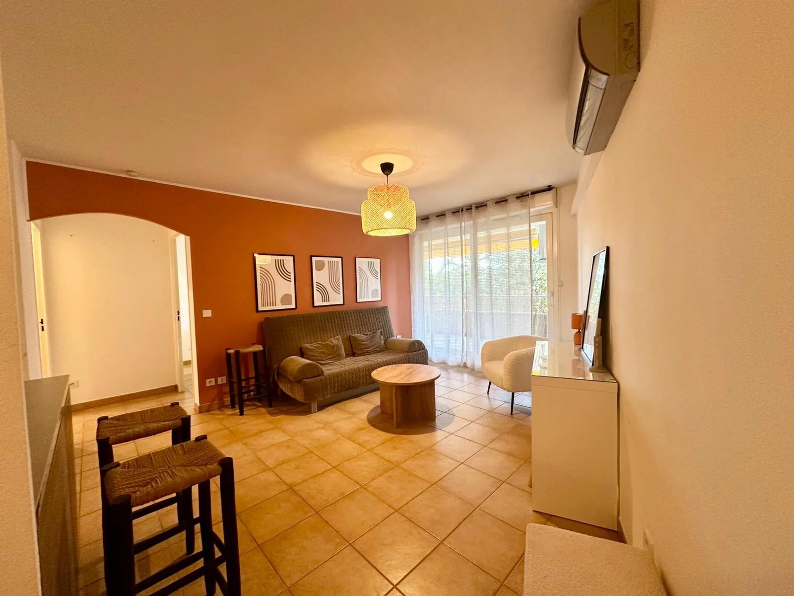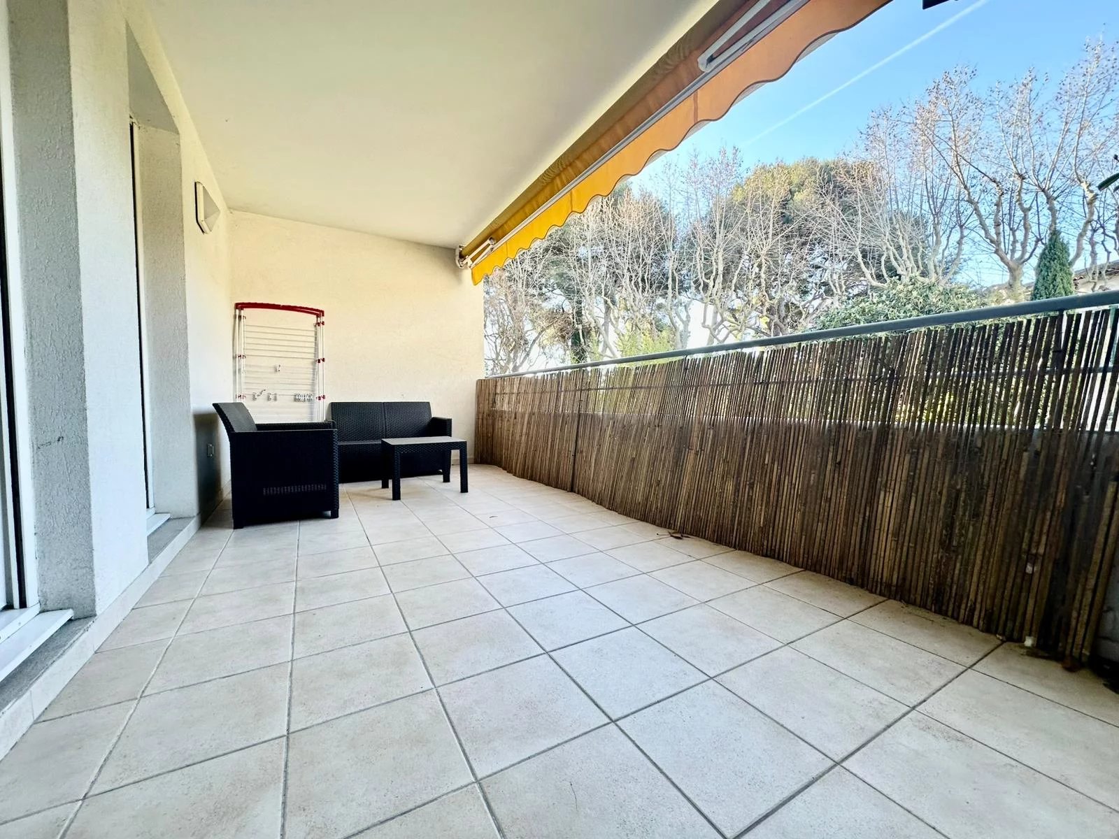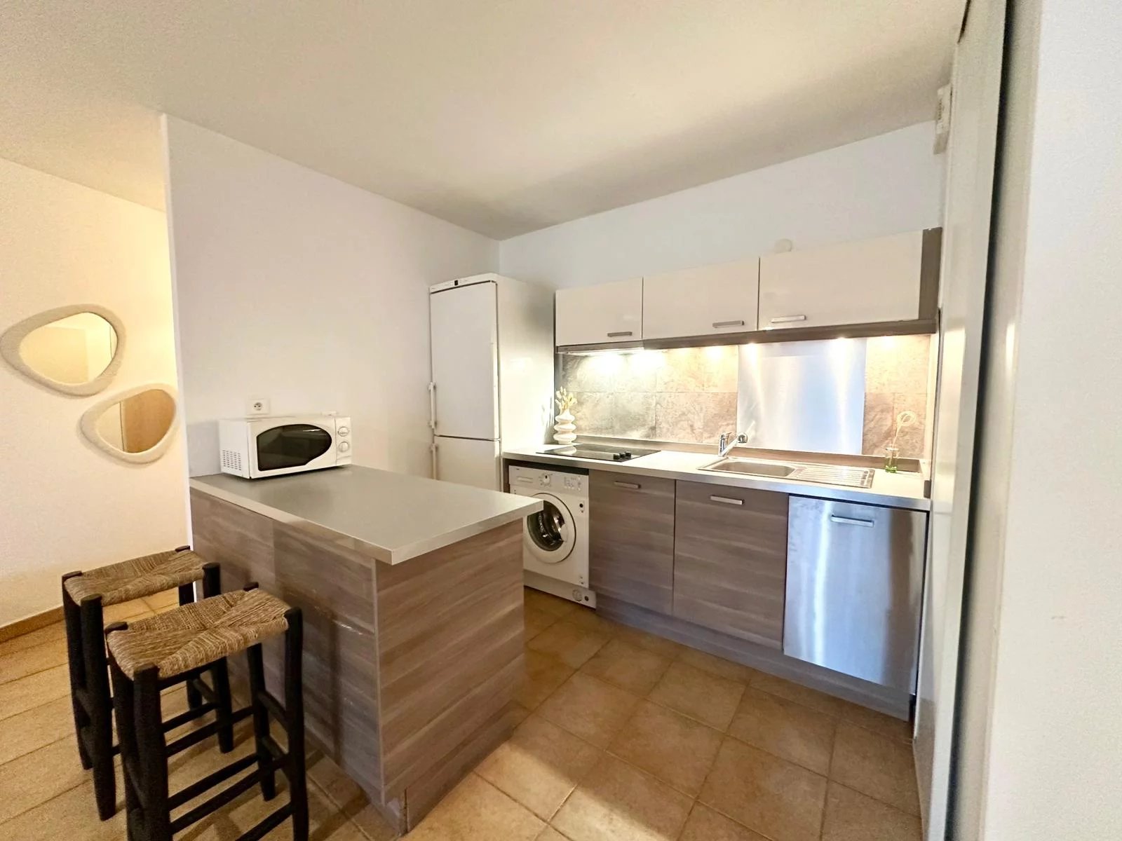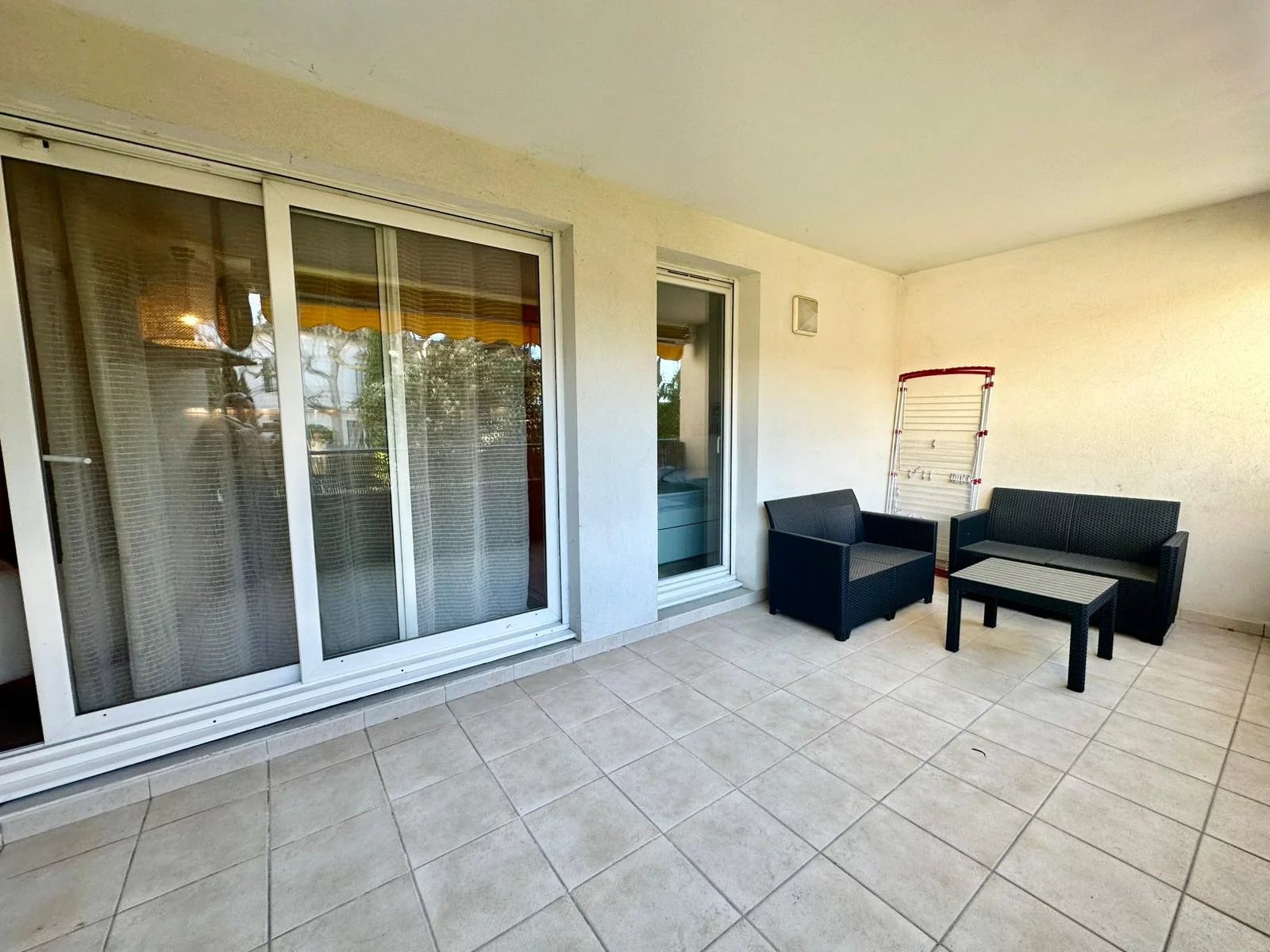 Nous vous proposons à la location cet appartement de type 2 meublé situé dans une résidence fermée et sécurisée. Le logement se compose d'une entrée et d'un séjour avec cuisine le tout donnant sur une terrasse d'environ 13 m². Pour le coin nuit, vous retrouverez une chambre avec dressing ainsi qu'une salle de bains avec WC.