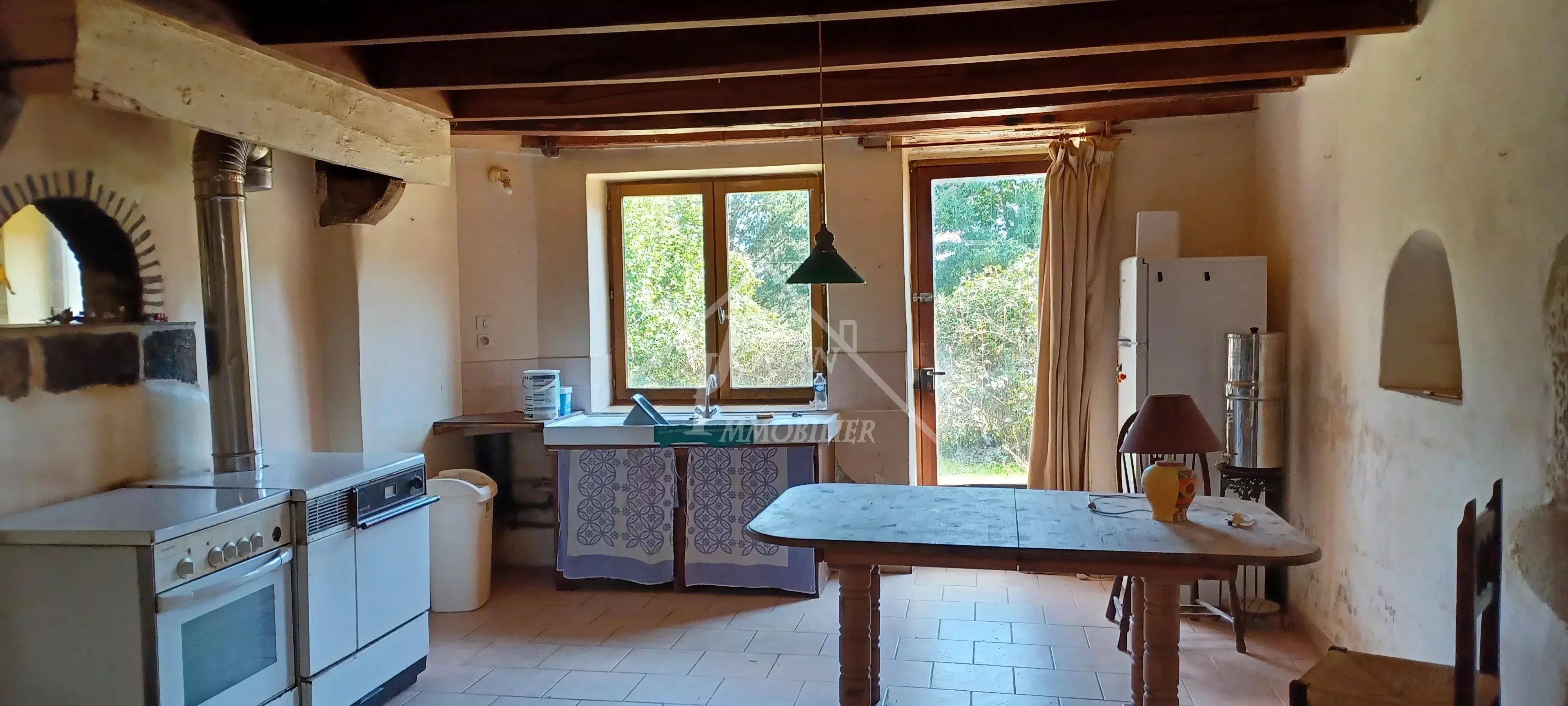 Découvrez, à la campagne du village d’Autry-Issard, cette belle longère à rénover comprenant, en rez-de-jardin : une grande entrée, des toilettes, une salle de bains, une cuisine simple et conviviale (conduit de cheminée), un salon-séjour (conduit de cheminée) ouvrant sur une véranda et le jardin, une chambre, ainsi qu’une petite pièce donnant sur le jardin et un petit garage-atelier. Conserverie-buanderie et chaufferie. Agréable véranda avec vue sur un jardin d’environ 500 m² (construite en bois de récupération avec couverture en polycarbonate). À l’étage : grand palier pouvant faire office de bureau, trois belles chambres lumineuses sur parquet en sapin et une salle de bains avec toilettes (sanitaires anciens). Chauffage central avec chaudière à granulés neuve (fin 2023), alimentée par un silo avec accès extérieur. Assainissement individuel conforme (ECOFLO). Travaux à prévoir : isolation, huisseries, sanitaires et cuisine. Secteur du Bocage très prisé, à seulement 7 km de Bourbon-l’Archambault et de Souvigny, et à 20 minutes de Moulins. DPE : D Les informations sur les risques auxquels ce bien est exposé sont disponibles sur le site Géorisques: www.georisques.gouv.fr