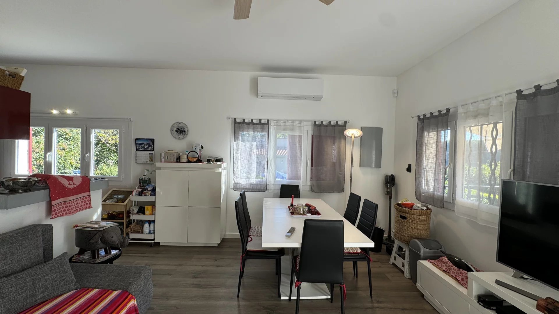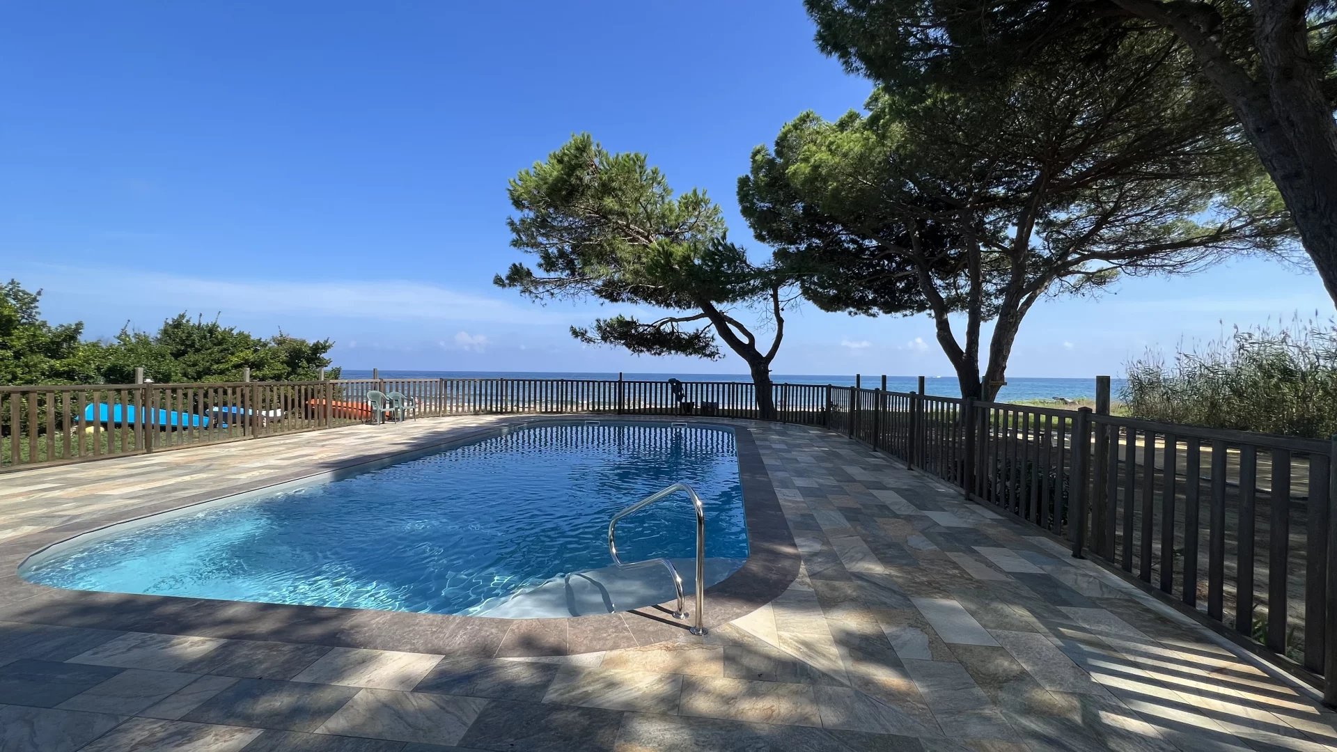 Une exclusivité de vente Panoramer. Belle villa côté plage Type 4 Située dans une résidence bord de mer, cette agréable villa élevée d'un étage se compose : En rez-de-jardin 2 caves et un spacieux garage d'environ 90 m². A l'étage une terrasse d'accès, une entrée, un séjour, une cuisine équipée, trois chambres, une salle de douche et un wc. Terrain de 400 m² arboré. Les charges comprennent : l'entretien des espaces verts de la résidence, de la villa, consommation d'eau de la villa, entretien piscine et tennis. A l'entrée de la résidence se trouve un cours de Tennis et côté plage une piscine, un parc et un jeux de boules.