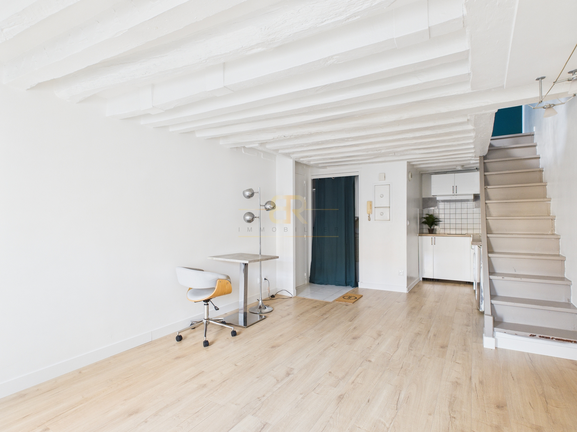 Ce charmant duplex se compose au premier niveau d'une belle pièce de vie avec cuisine ouverte totalement équipée avec deux fenêtres donnant sur cour exposées OUEST, au second niveau vous découvrirez une belle chambre avec poutre apparentes et de nombreux rangements ainsi que d'une salle de bains avec WC.