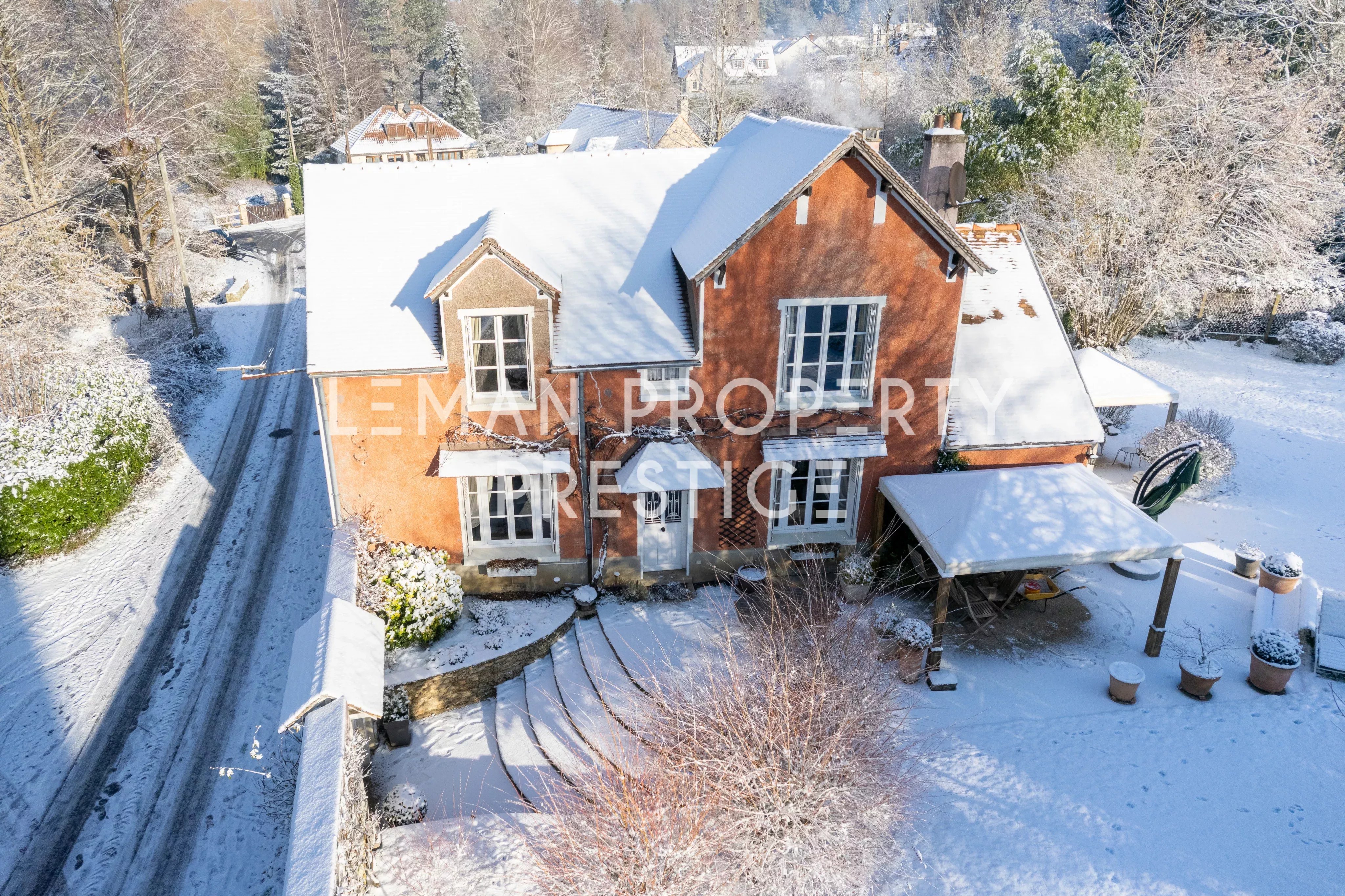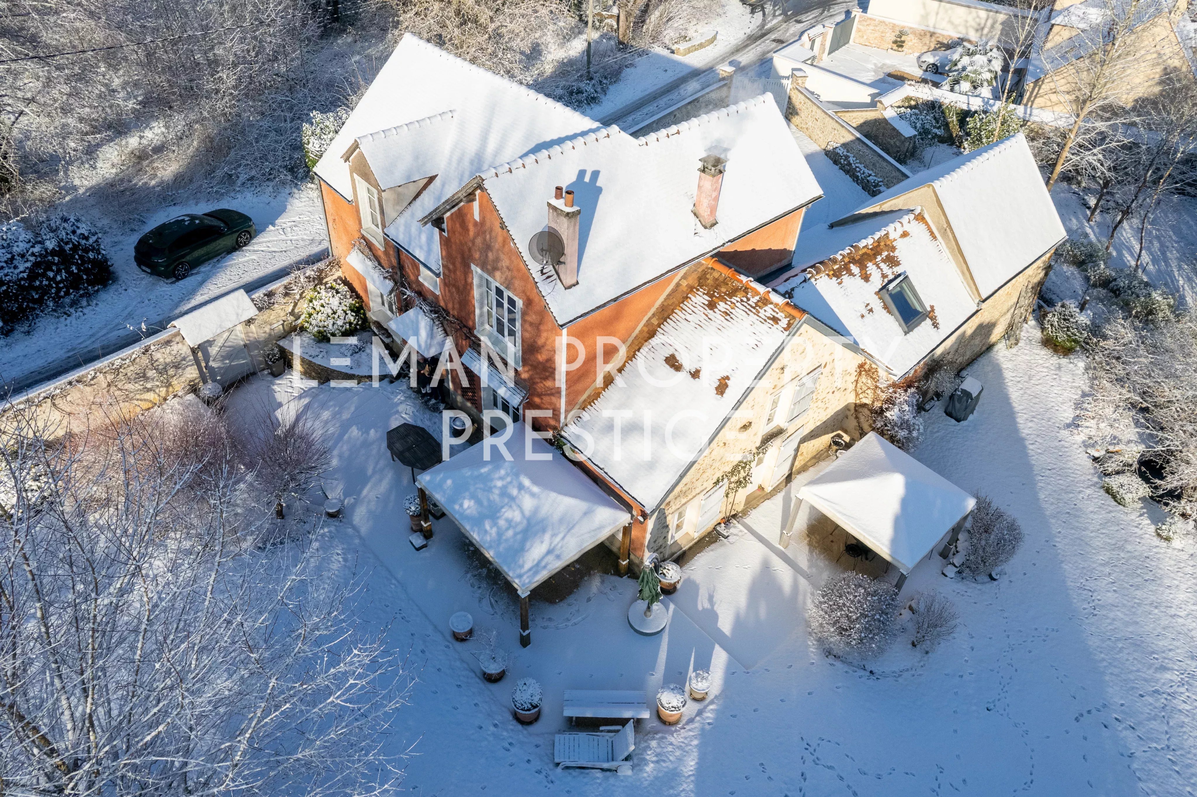 La propriété s’étend sur un terrain clos de plus de 2 200 m², soigneusement arboré, agrémenté d’une petite source, offrant un cadre naturel rare et apaisant.