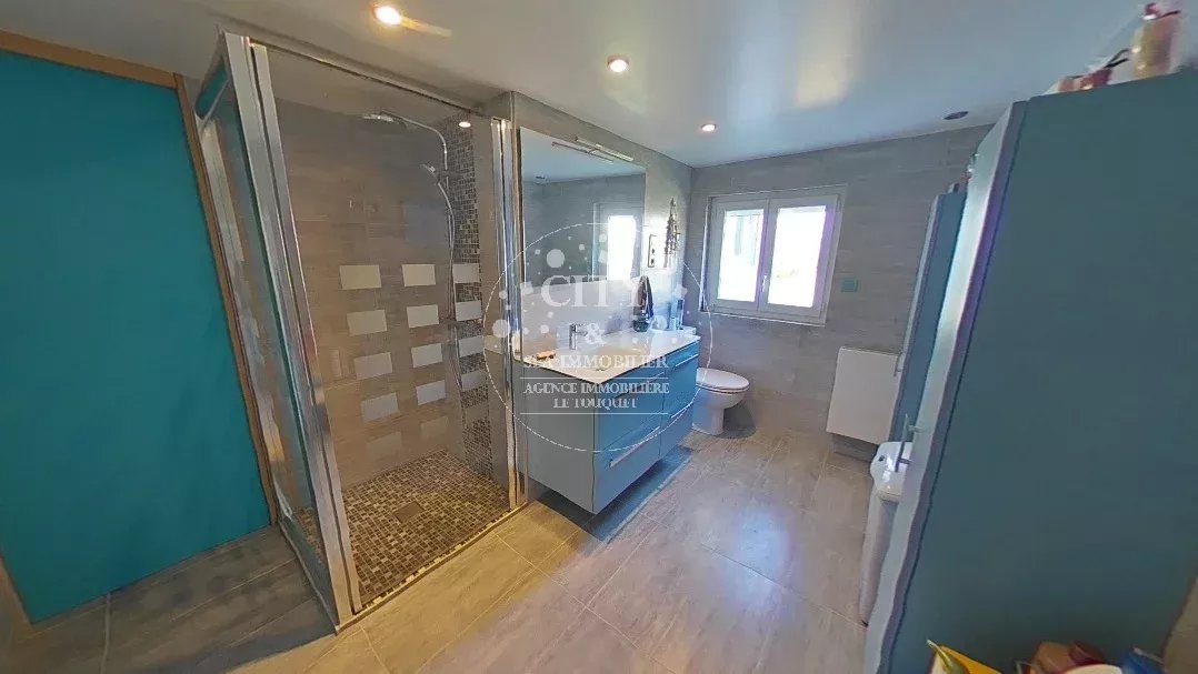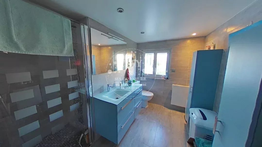 - Une salle-de-bains avec douche à l'italienne, meuble vasque et wc