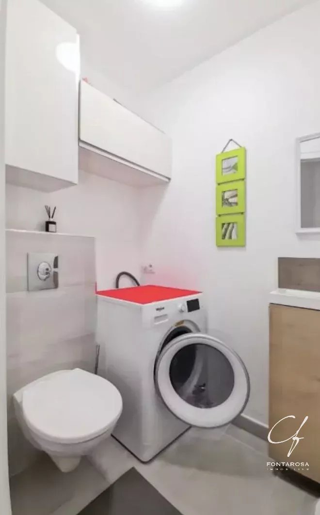 L’espace de vie comprend une cuisine moderne aménagée et équipée avec îlot central, une salle d’eau rénovée avec douche à l’italienne, double vasque et sèche-serviettes, ainsi qu’un WC indépendant avec porte à galandage. L’espace nuit se compose de deux chambres confortables avec placards intégrés.