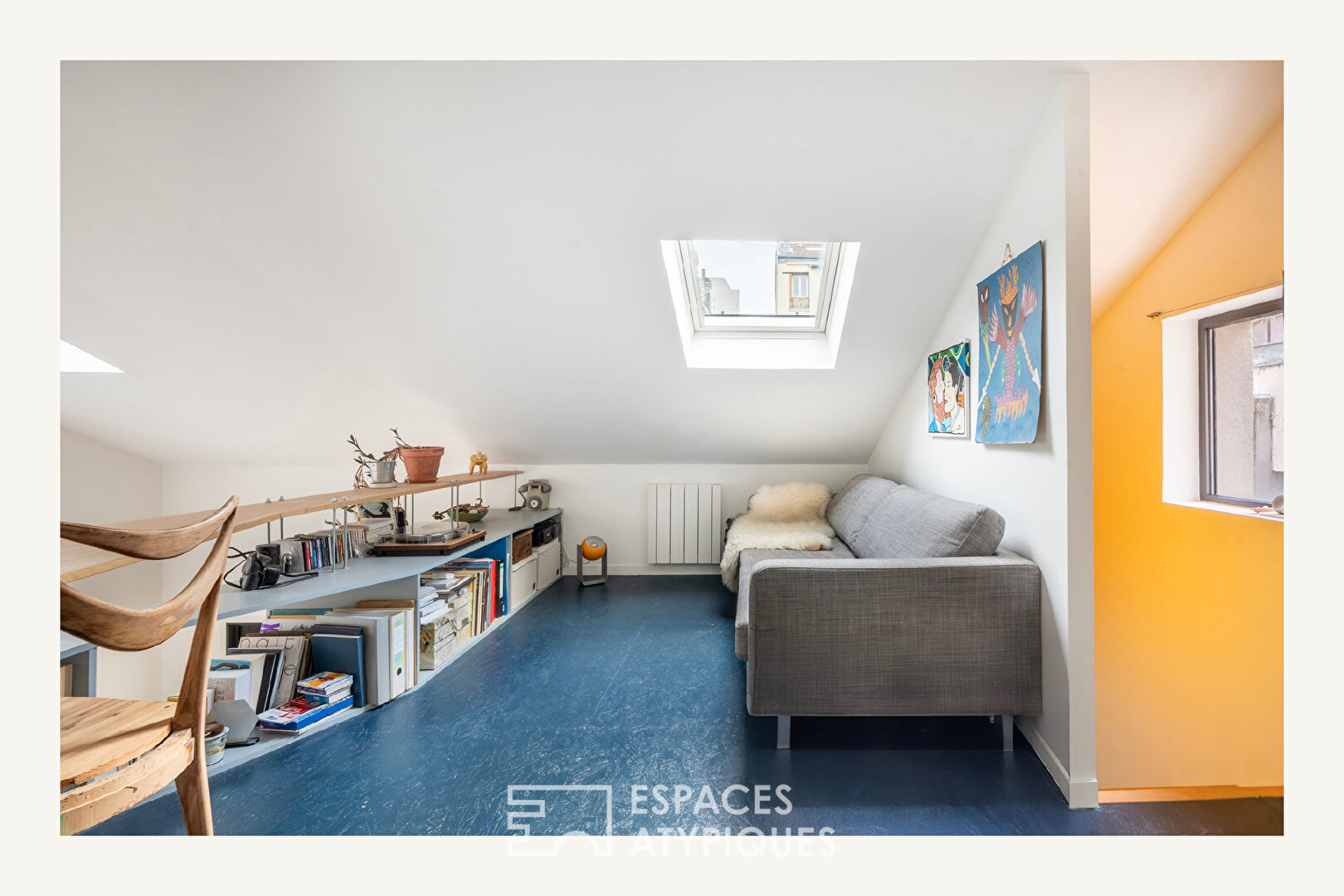 Au coeur d'une venelle pavée au charme suranné, dissimulée derrière la façade d'un immeuble ancien qui la protège des rumeurs de l'avenue Danielle-Casanova, cette maison en copropriété d'environ 60 m2 Carrez se révèle comme un discret refuge d'architecture, pensé et façonné par ses propriétaires, un couple d'architectes ayant entrepris une métamorphose totale du lieu. Passé le premier bâtiment, l'impasse se dévoile dans une atmosphère presque villageoise, ponctuée de petites maisons mitoyennes se faisant face sans jamais empiéter les unes sur les autres. Tout au fond, au plus près du calme, un portillon marque l'entrée du jardinet privatif. La végétation s'y déploie librement, offrant une transition douce entre extérieur et intérieur, presque comme un sas de verdure avant de pénétrer dans la maison. Quelques marches de béton patiné mènent à la pièce de vie de 34 m2. Celle-ci s'organise autour d'une cuisine sobrement intégrée et d'un espace salon prolongé par une salle à manger. La lumière y circule avec une générosité rare, grâce à une orientation plein sud et à un vide sur séjour qui confère à l'ensemble une verticalité inspirante. Le contraste entre les matériaux (pierre apparente, béton lissé, bois chaleureusement travaillé) donne à la pièce une identité à la fois brute et délicate. Une salle d'eau et un cabinet de toilettes complètent ce niveau, dont le confort est renforcé par un chauffage au sol discret et efficace. Un escalier de bois, traité presque comme un objet sculptural, conduit sous les toits. Là, une pièce ouverte domine le séjour par un jeu de perspectives et de niveaux, puis un espace parental se niche dans la partie la plus intime. Cette suite de 15 m2, baignée de lumière, abrite un dressing et une salle de bain, offrant un retrait empreint de calme et de douceur. L'ensemble forme un étage à l'atmosphère tendre, où le travail architectural révèle toute sa précision : isolation repensée, surélévation de toiture, optimisation des volumes pour magnifier chaque centimètre carré. Ivry-sur-Seine, et plus particulièrement le secteur de la mairie, cultive une énergie singulière, à mi-chemin entre l'effervescence créative d'un faubourg proche de Paris et la convivialité d'un centre-ville où l'on circule volontiers à pied. Les commerces y sont nombreux et variés, les équipements culturels foisonnent, et l'on y retrouve cette vitalité urbaine qui fait la réputation de la ville. Un quartier vivant, humain, intensément fréquenté, où le quotidien se déploie avec fluidité et plaisir. Une cave complète la propriété. Bien soumis au statut de la copropriété. Métro Ligne 7 « Mairie d'Ivry » : 7 minutes à pied Commerces : 5 minutes à pied Écoles : 5 minutes à pied CLASSE ÉNERGIE : D / CLASSE CLIMAT B : Montant moyen estimé des dépenses annuelles d'énergie pour un usage standard, établi à partir des prix de l'énergie de l'année 2021 : entre 918 euros et 1242 euros. Les informations sur les risques auxquels ce bien est exposé sont disponibles sur le site Géorisques : https://www.georisques.gouv.fr Contact : Balthazar - 07 66 36 29 98 - Agent Commercial - RSAC : 534 060 124 Créteil Copropriété de 59 lots - dont 17 lots habitation. (Pas de procédure en cours). Charges annuelles : 656 euros. Balthazar BRIGAUD (EI) Agent Commercial - Numéro RSAC : 534060124 - Créteil.