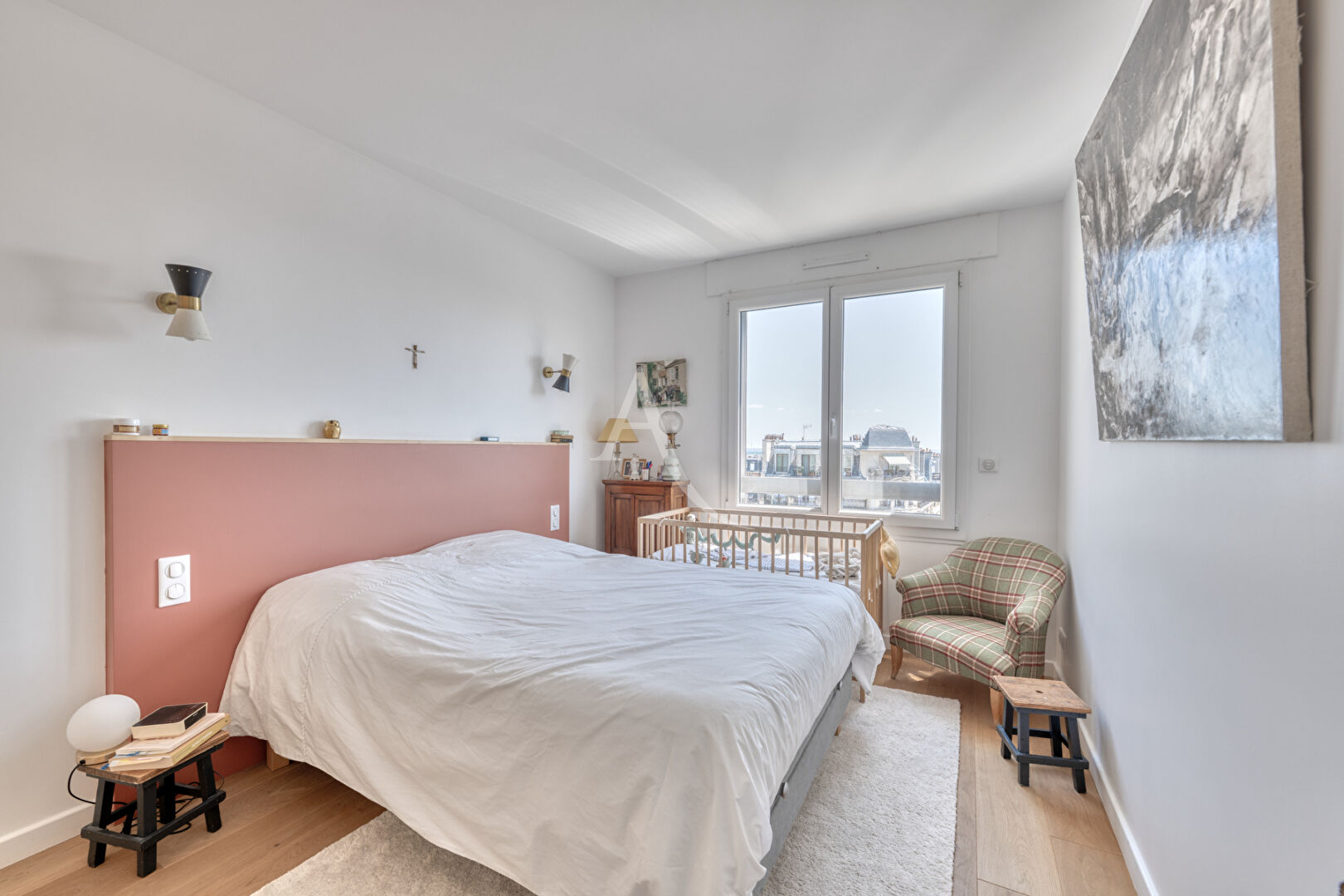 **Rue Villiers de l'Isle Adam** Nichée dans une charmante rue pavée du 20e arrondissement, dans une ambiance de village, au coeur du quartier Gambetta, cet appartement de 137 m² habitables vous séduira par son calme absolu, son exceptionnelle luminosité, ses volumes et sa proximité immédiate des commerces. Situé au 8e étage d'un immeuble avec ascenseur, il se compose d'une entrée, d'un superbe séjour/salle à manger de 43 m² baignée de lumière, prolongé par trois balcons et offrant une vue à couper le souffle sur Paris, quel que soit l'endroit où l'on se trouve dans la pièce. Il propose de nombreux rangements. La cuisine, aménagée et équipée, est sublimée par une verrière réalisée sur mesure. L'appartement dispose de deux espaces nuit distincts : Le premier accueille deux chambres, un dressing, une salle d'eau et un WC séparé. Le second comprend également deux chambres, un petit bureau, une buanderie, une salle de bains et un WC séparé. Deux places de parking, une cave et un local vélo viennent compléter ces belles prestations.