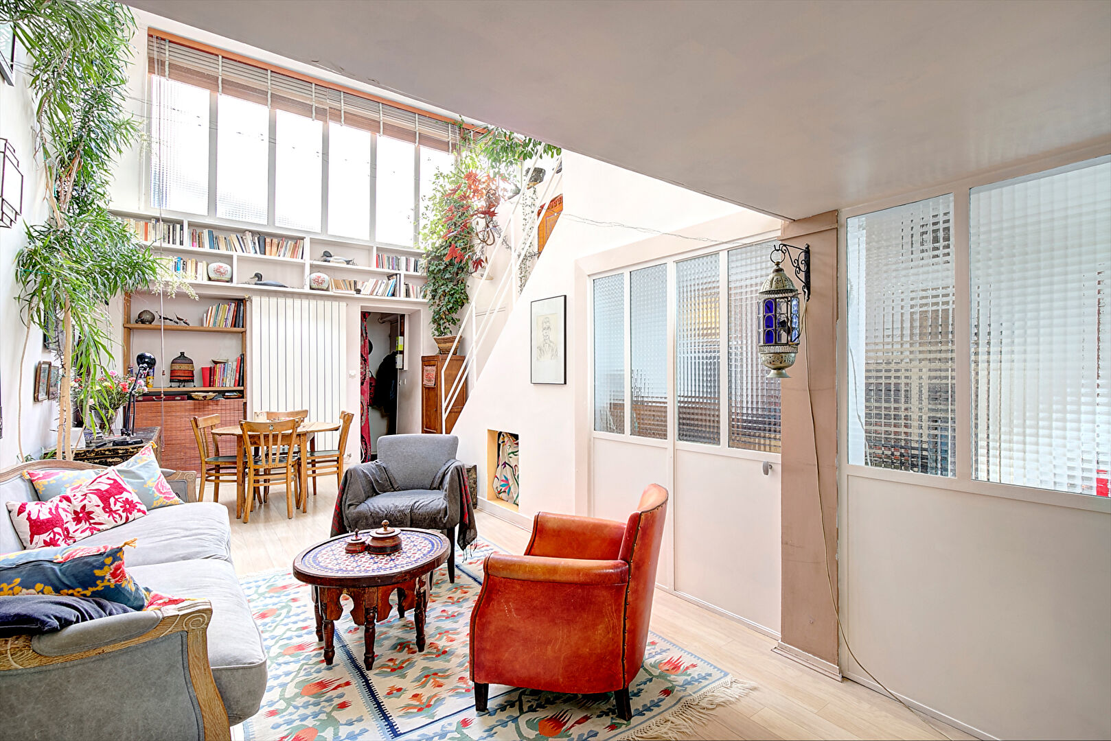 Maison à Montmartre un bien rare ! A deux pas de la rue Lepic et des Abbesses, au fond d'une discrète impasse pavée, l'Agence des 3 Frères vous présente en exclusivité cette maison unique de 63m², baignée de lumière et au charme fou ! Au sein d'une copropriété saine et bien tenue, elle offre une entrée avec rangements, une magnifique pièce de vie dotée de près de 6m de hauteur sous plafond, une chambre, une cuisine indépendante et un WC séparé. A l'étage, une grande chambre avec salle d'eau. Vous apprécierez son ambiance chaleureuse, ses volumes exceptionnels et ses verrières qui offrent une lumière douce et constante à toute heure de la journée. Situation idéale, au calme absolu, au coeur du quartier des Abbesses et de la vie montmartroise. Un bien unique sur le marché ! (4.05 % honoraires TTC à la charge de l'acquéreur.) Copropriété de 22 lots - dont 20 lots habitation. (Pas de procédure en cours). Charges annuelles : 1200 euros.
