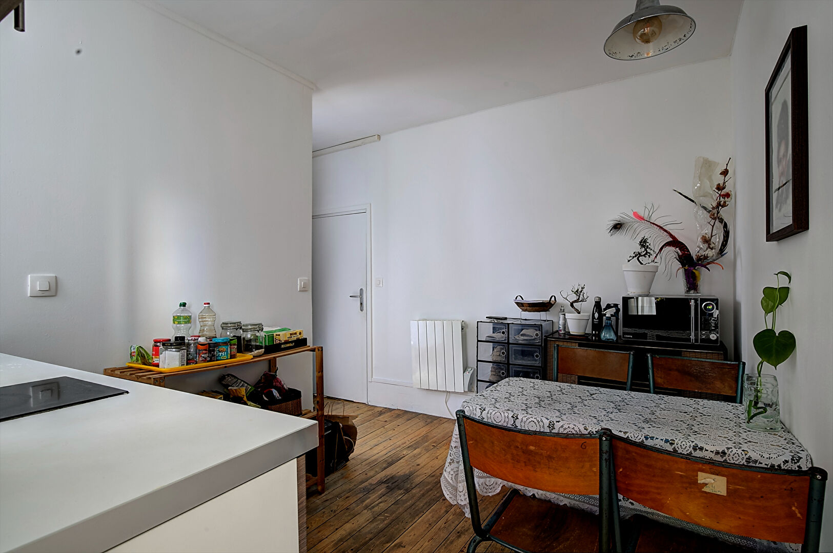 Montmartre Abbesses Idéalement situé dans une charmante voie piétonne pavée au coeur des Abbesses, l'Agence des 3 Frères vous propose en exclusivité ce studio plein de charme de 27 m², au calme et bien exposé. Installé au 1?? étage d'une copropriété bien entretenue, il s'ouvre sur une entrée donnant accès à une cuisine dinatoire de 8m², puis à un séjour exposé Sud agrémenté d'une cheminée de 14m². Une salle d'eau avec WC, éclairée par une fenêtre, complète l'aménagement intérieur. A cela s'ajoute, sur le palier, un cagibi aménagé en buanderie privative. Son adresse prisée, au calme absolu tout en étant au coeur de la vie montmartroise, en fait un pied-à-terre idéal ou un premier achat de caractère. Copropriété de 33 lots - dont 27 lots habitation. (Pas de procédure en cours). Charges annuelles : 1132 euros.