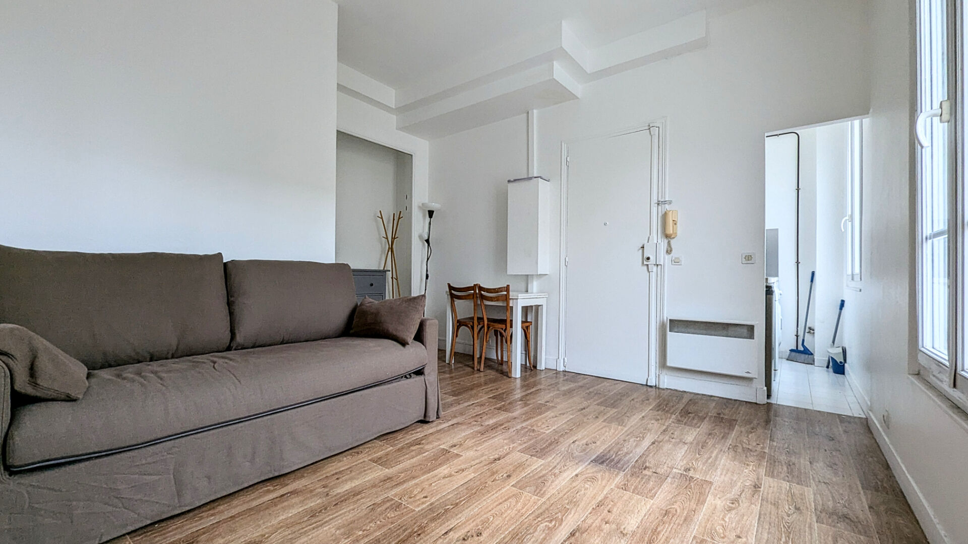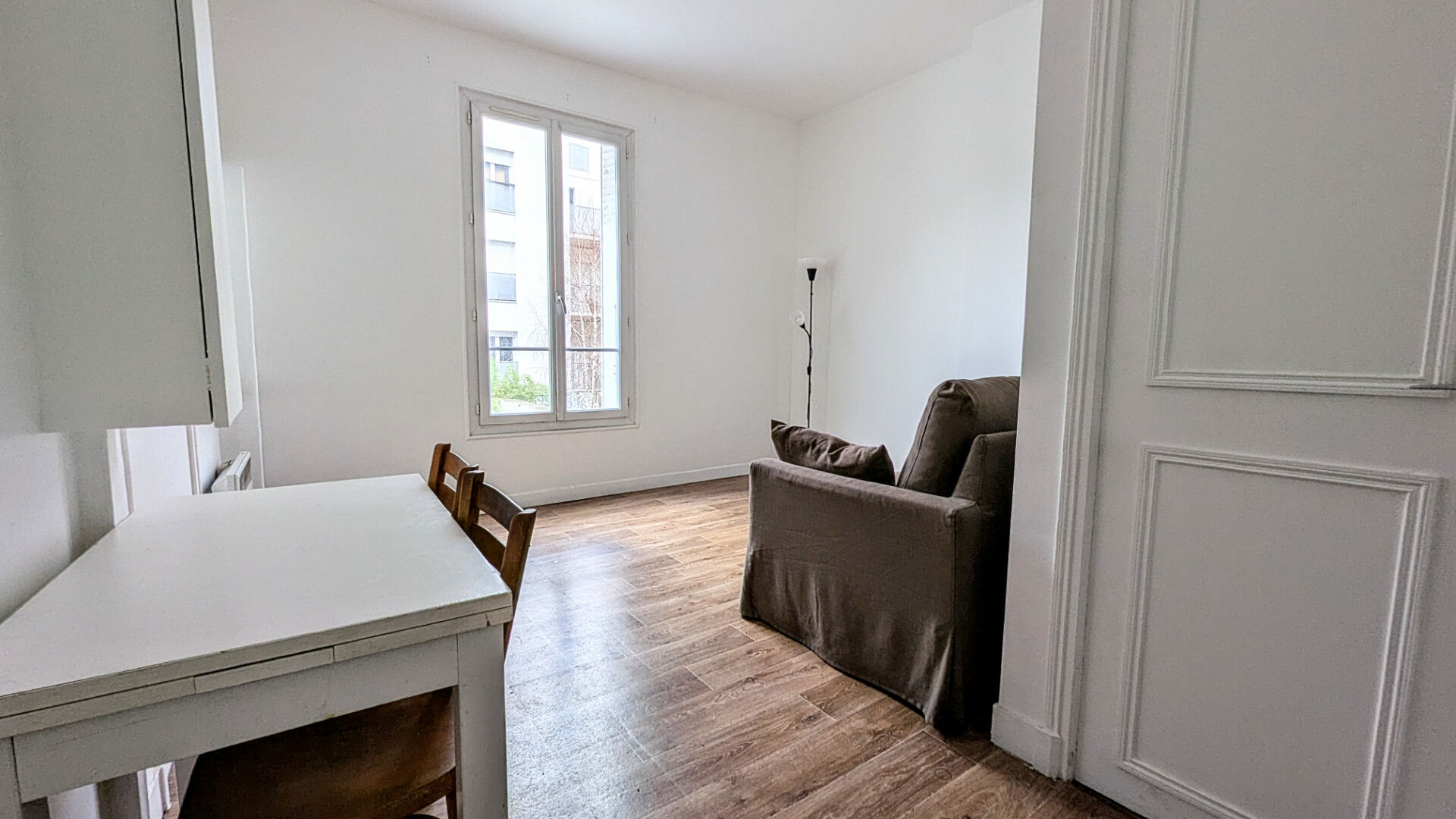 CENTRE-VILLE / GARE - A 4 minutes de la gare SNCF RER D de Saint-Denis, 14 minutes des stations de métro ligne 13 Porte de Paris et Basilique et à proximité de tous les commerces dans un bel immeuble ancien au premier étage sur cour au calme, un appartement de type STUDIO comprenant séjour, cuisine semi-ouverte, salle d'eau avec WC. Chauffage individuel électrique, fenêtres PVC double vitrage. Charges annuelles de copropriété : environ 648 euros.