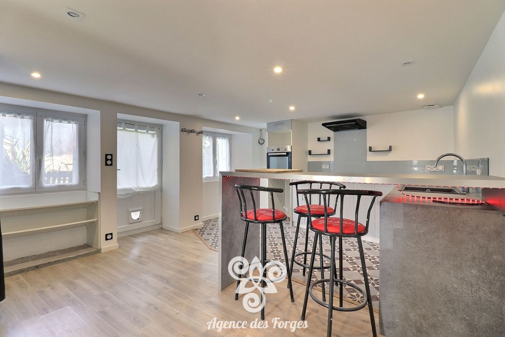 L' Agence des Forges vous propose à la vente une maison mitoyenne entièrement rénovée, d'environ 60 m², offrant au rez de chaussée : Un bel espace de vie avec une belle hauteur sous plafond qui dessert une grande cuisine aménagée et équipée. A l'étage: une mezzanine d'environ 6m² (espace bureau) desservant une chambre de 13.50 m² avec un rangement - une salle d'eau avec douche, vasque, sèche serviettes et wc. A l'extérieur, une petite dépendance (local technique), à deux pas, un jardin avec deux autres dépendances (7.80 et 14.40m²). Assainissement collectif conforme / Chauffage électrique / Fibre / Travaux récents : isolation - électricité - peintures - plomberie Pour une visite, contactez Virginie VINET (agent commercial inscrit au RSAC de la Roche-Sur-Yon au n°2024AC00145) au numéro figurant sur la dernière diapositive. (5.67 % honoraires TTC à la charge de l'acquéreur.) Virginie VINET (EI) Agent Commercial - Numéro RSAC : - .