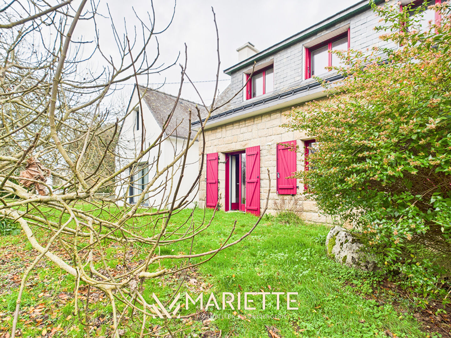"MAEN" Est cette maison familiale nichée dans un écrin de verdure à quelques minutes des plages. Pensée pour accueillir des moments précieux, cette demeure marie avec subtilité le cachet de l'ancien et le confort moderne. Volumes généreux, matériaux authentiques, belle hauteur de plafond et lumière traversante composent un lieu de vie privilégié et agréable. Son extension communiquante de 2011 lui offre de multiples usages : un lieu pour vos proches ou invités, un studio, une activité professionnelle... Un environnement calme et proche des sentiers côtiers. Une nouveauté à l'agence Mariette de Trégunc La distribution de la maison : -au rez-de-chaussée : salon-séjour cuisine de 50m², WC avec lave mains, salle de bains, buanderie, véranda d'été -à l'étage : dégagement, trois chambres dont une avec lave mains, WC L'extension : -au rez-de-chaussée : séjour avec cuisine, WC, chambre avec salle d'eau attenante -à l'étage : grenier à aménager Annexes : véranda, abris de jardin, jardin sur plus de 4.500m² non constructible. Ce que l'on aime : la tranquillité du hameau, le charme de la bâtisse, les volumes, l'extension, la parcelle de terrain, la proximité des sentiers côtiers. Points d'intérêt : A 3 min des plages de Trévignon A 8 kms des commerces A 8 kms des écoles A 15 mins de Concarneau Depuis plus de 3 ans et à chaque transaction réalisée, Mariette Immobilier Conciergerie soutient la SNSM de Trévignon - Concarneau en reversant 1 % de chaque commission d'agence, afin de contribuer à leurs actions de prévention et de sauvetage en mer. (3.90 % honoraires TTC à la charge de l'acquéreur.)