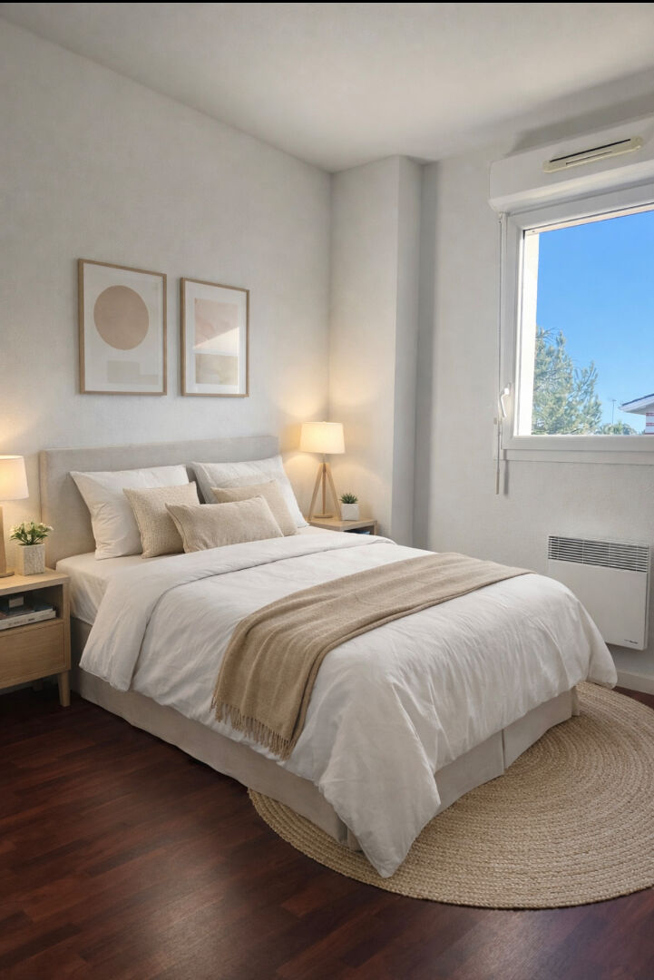 Maison lumineuse à Lège-Cap-Ferret Calme, nature et proximité de l'océan Située à Lège-Cap-Ferret, au sein d'un lotissement résidentiel recherché et au calme, cette charmante maison (64 m2 surface utile, 62,4 m2 Carrez) offre un cadre de vie privilégié, à proximité immédiate des commerces, écoles, transports et à quelques minutes de l'océan. Au rez-de-chaussée, un couloir d'entrée dessert un séjour baigné de lumière, ouvert sur une terrasse et un jardin idéalement exposés, parfaits pour profiter des beaux jours dans un environnement verdoyant. La cuisine fonctionnelle, complétée par un cellier, apporte un réel confort au quotidien. L'étage, entièrement dédié à l'espace nuit, propose deux chambres ainsi qu'une salle de bain. Deux places de stationnement aérien viennent compléter ce bien. Cette maison constitue une opportunité idéale pour une famille en quête de nature et de sérénité, ou pour un investissement locatif dans un secteur très prisé . - Emplacement privilégié Calme Luminosité Jardin d'accueil, jardin et terrasse côté séjour Proximité océan (proposition aménagement IA) (6.00 % honoraires TTC à la charge de l'acquéreur.)
