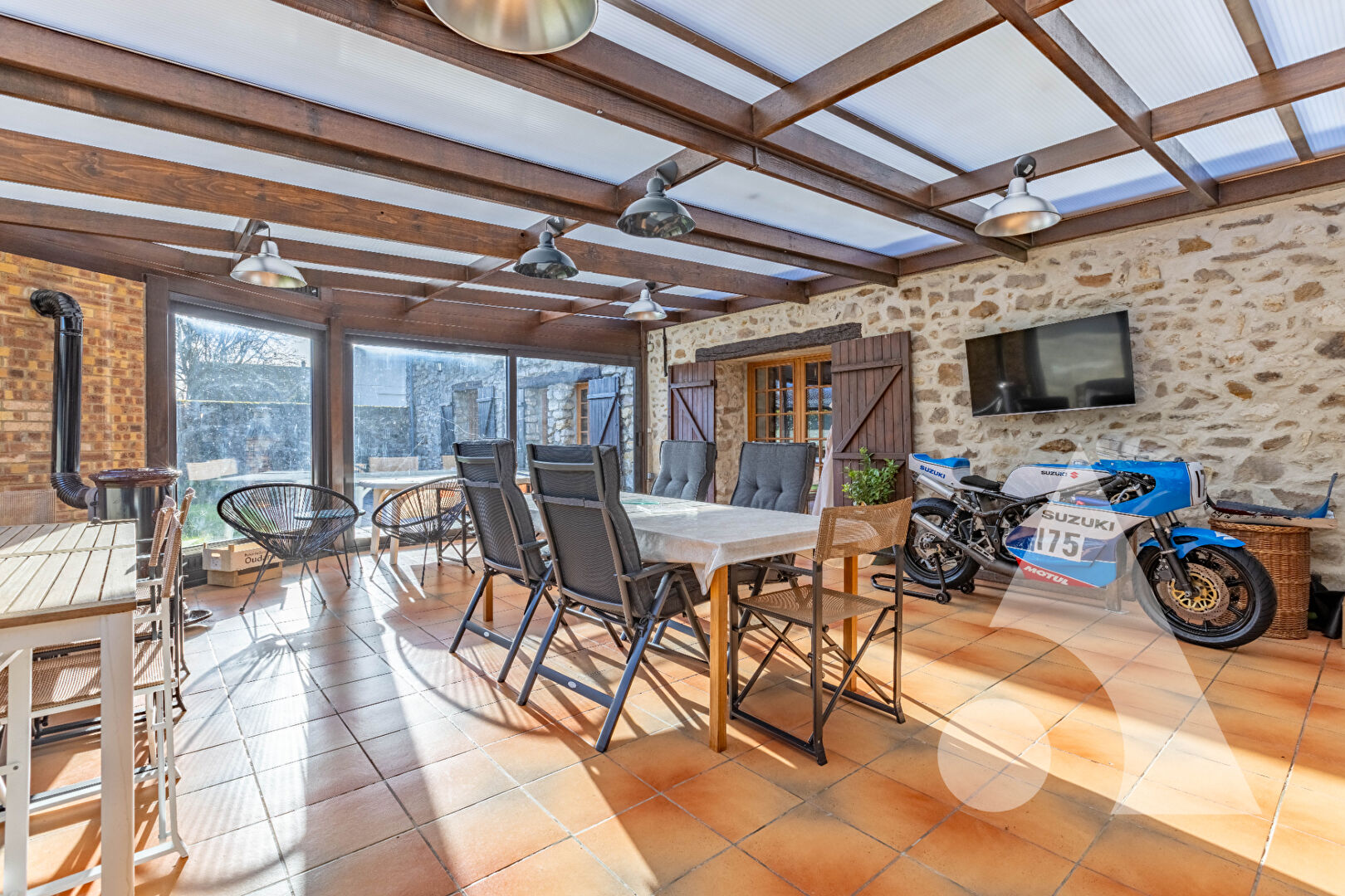 L'agence Stéphane PLAZA Immobilier Estrées-Saint-Denis devient SIXIEME AVENUE et a le plaisir de vous présenter cette sublime longère en pierres idéalement située. Dans un village recherché et au calme, proche de la N2 et avec école sur place. Entrez dans cette maison pleine d'authenticité et soyez charmés par ses espaces, sa luminosité et ses hauteurs sous plafonds. Arrivez sous toit cathédral dans un séjour de plus de 55 m² avec sa cheminée trônant sur tout le long d'un mur. Continuez par sa cuisine aménagée et équipée avec espace buanderie - cellier. Passez par une véranda de plus de 50 m² chauffée au poêle à bois et bien exposée avec vue sur le jardin arrière de la maison. Le rez de chaussée se complète par une suite parentale comprenant une chambre, un WC, une salle de bains et son dressing. L'étage se compose d'un palier en mezzanine avec vue sur la cheminée du séjour, de 2 belles chambres avec placards et d'une salle d'eau. Ses extérieurs d'environ 980m² présentent un jardin à l'avant avec places de stationnement, terrasse et cabanon de jardin. Celui à l'arrière, plus intimiste, vous permettra d'accéder au garage et aux dépendances. Le tout entièrement clos et sans vis à vis. Vous recherchez le charme de l'ancien avec de beaux espaces, idéalement situé ? Bienvenue chez vous. VISITE VIRTUELLE DISPONIBLE sur l'onglet 360 !!! Pour plus d'informations, contactez Tristan LEFRANCOIS au 07°87°23°04°75 . tlefrancois@sixiemeavenue.com Tristan LEFRANCOIS (EI) Agent Commercial - Numéro RSAC : 494370117 - BEAUVAIS.