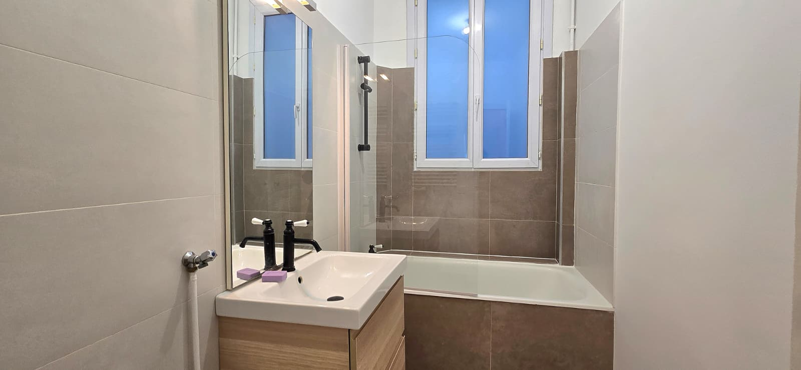 Au sein d'un immeuble ancien sécurisé, au troisième étage par ascenseur, un appartement traversant de trois pièces principales. Il dispose sur 75m² d'une entrée desservant en étoile, une réception, une cuisine indépendante, une salle de bains, un water-closet et un dégagement permettant l'accès a deux chambres de part et d'autre du plan. Chauffage individuel électrique. DPE: E Honoraires bail code civil: 15% du loyer annuel. Copropriété de 21 lots ().