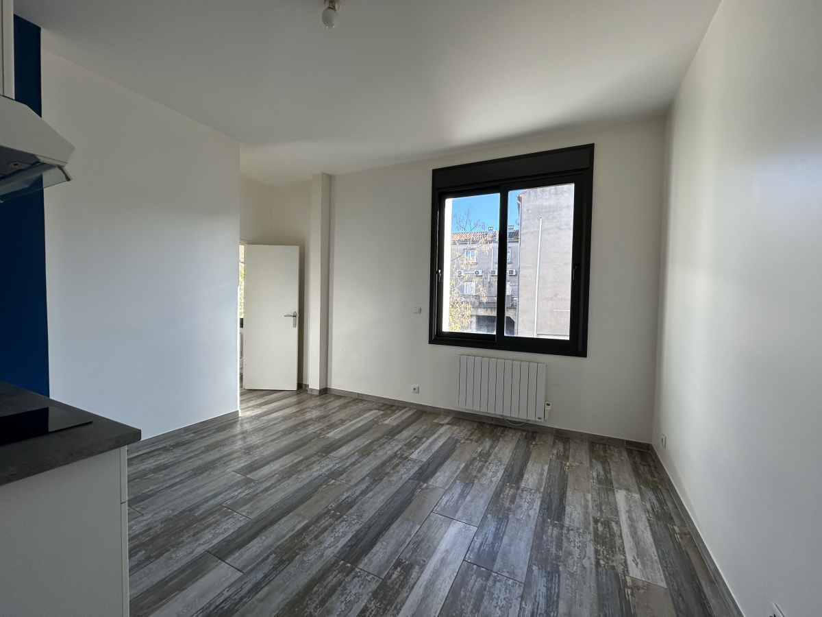 Sur la ville de Narbonne, trouver un nouveau logement avec cet appartement de type T2 au 1e niveau ; pas d'ascenseur dans le bâtiment. La construction de l'immeuble date de 1970 mais le logement a été crée en 2017. En plein centre de Narbonne mais les fenêtres se trouvent à l'arrière au calme, avec vue sur des jardins privés. Pour visiter ce logement, Clap'immo se tient à votre disposition. Ce logement peut convenir pour un investissement locatif ou un jeune couple. Mesurant 28.1m2, l'espace intérieur est constitué d'un coin salon de 16m2, une salle d'eau, un espace cuisine et une chambre. La tranquillité des occupants est garantie par le double vitrage et les volets électriques. Prix : 74 000 euros. Le montant de la taxe foncière s'élève à 700 EUR par année, soit plus ou moins 58 euros par mois et les charges de copopriétés de 300EUR / an environ.