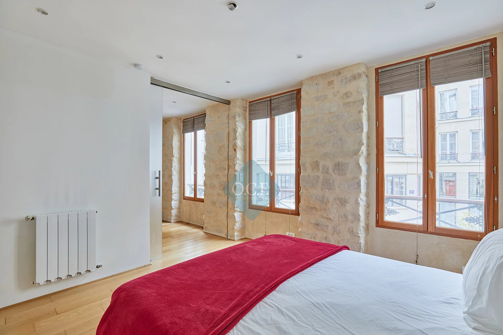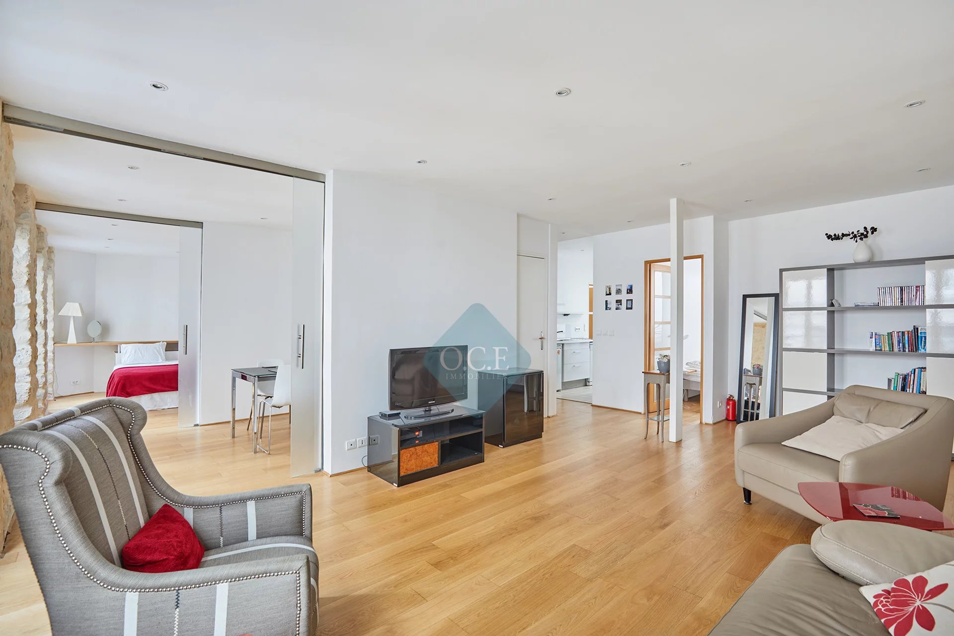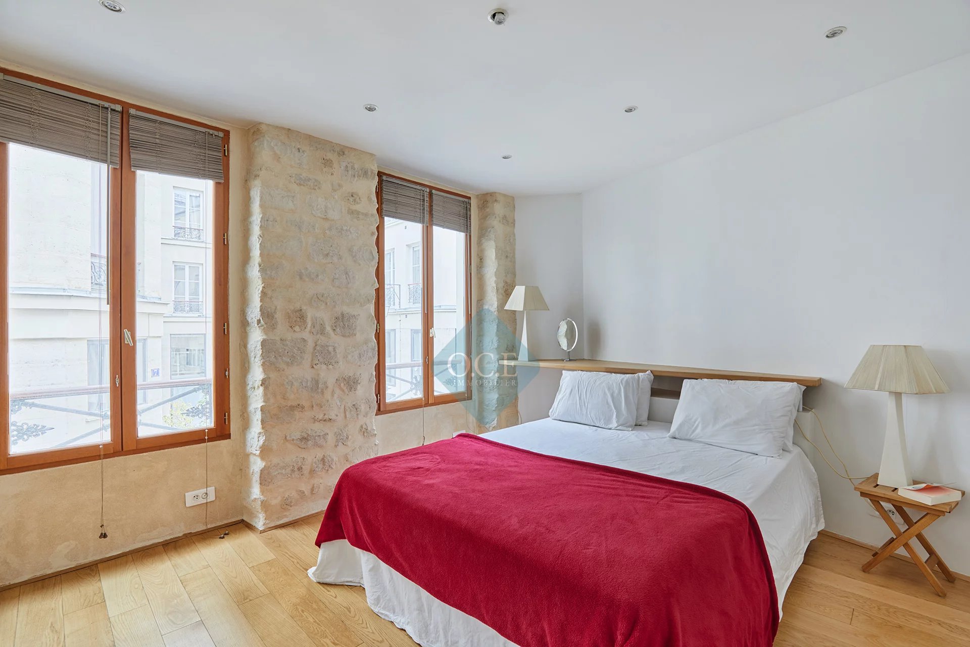 A deux pas de la mairie du 3ème et du square du Temple, 4 pièces de 82 m² situé au 1er étage d’un immeuble de 1750, typique du Marais. Il est composé d'une entrée qui dessert un vaste séjour-salle à manger de 37 m² avec un mur de pierres apparentes, d'une suite parentale avec salle de bain et WC, d' une seconde chambre sur cour, d'une cuisine séparée et d'une deuxième salle de bain avec WC. Au 2ème étage, un petit cagibi équipé d'une fenêtre complète ce bien et offre un espace de rangement supplémentaire. Au calme bien qu'à proximité immédiate des cafés, galeries et boutiques tendance. Un bien rare au cœur du Marais historique.