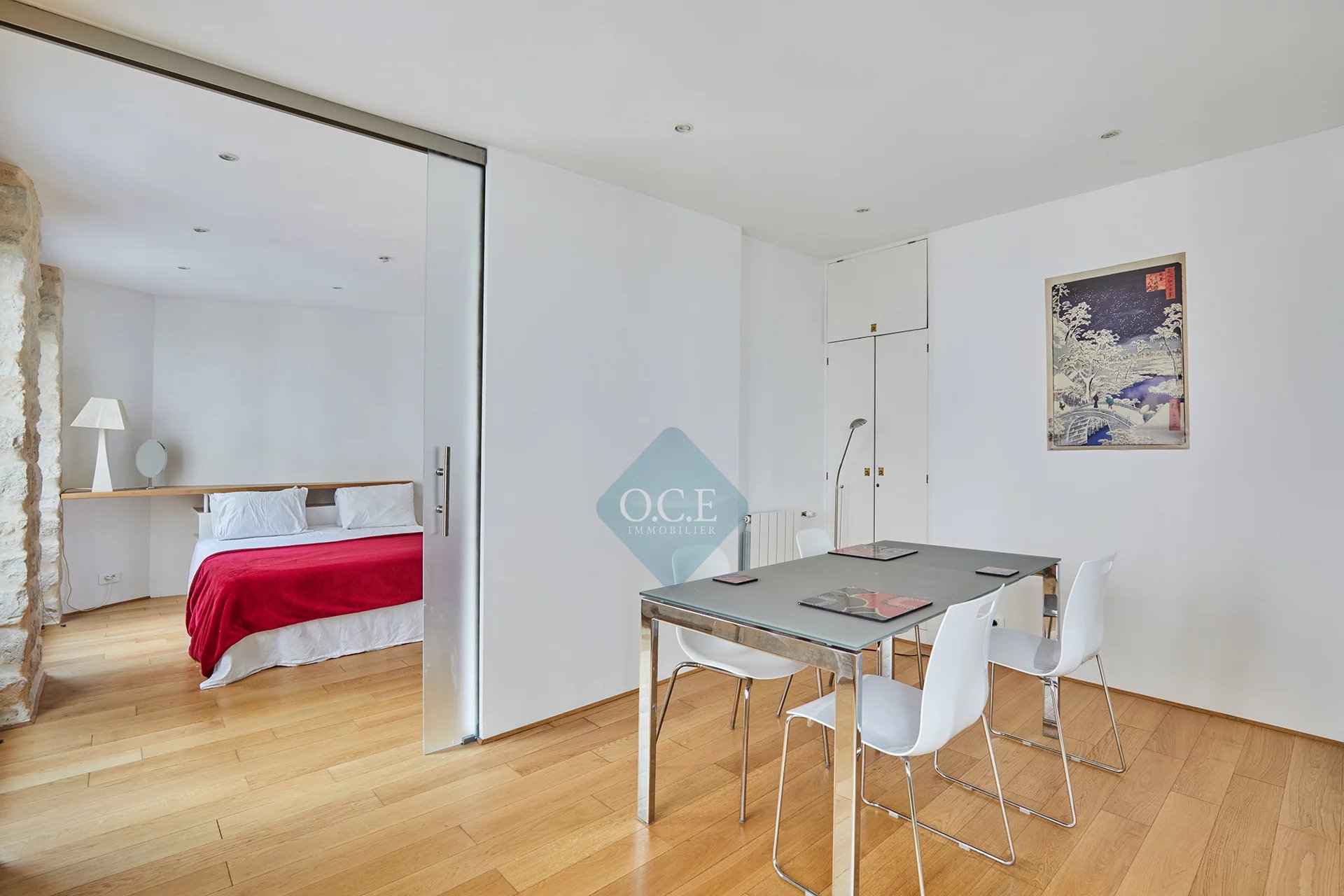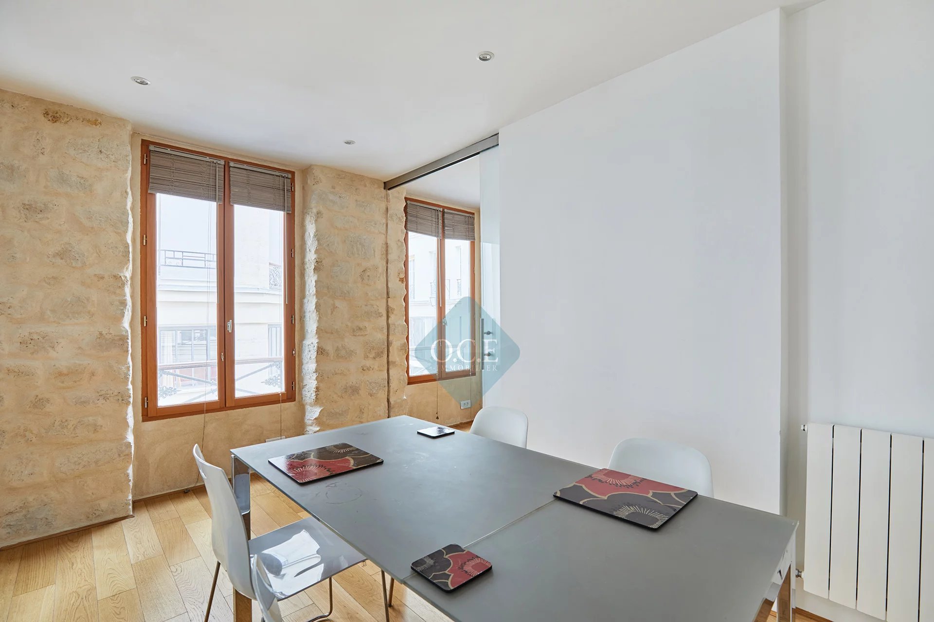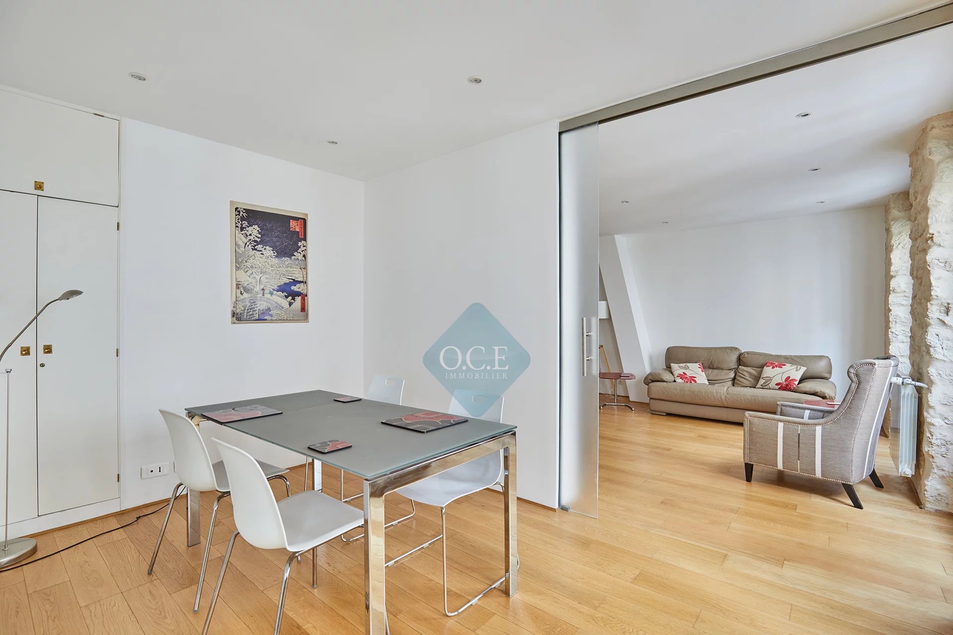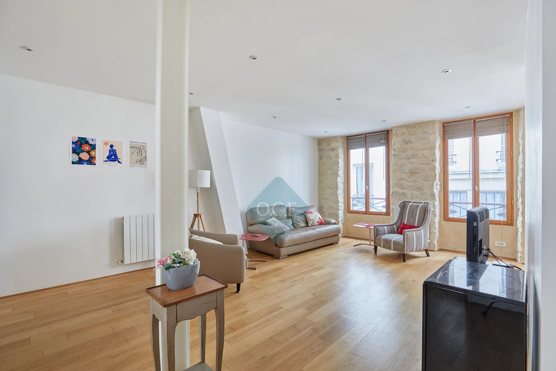A deux pas de la mairie du 3ème et du square du Temple, 4 pièces de 82 m² situé au 1er étage d’un immeuble de 1750, typique du Marais. Il est composé d'une entrée qui dessert un vaste séjour-salle à manger de 37 m² avec un mur de pierres apparentes, d'une suite parentale avec salle de bain et WC, d' une seconde chambre sur cour, d'une cuisine séparée et d'une deuxième salle de bain avec WC. Au 2ème étage, un petit cagibi équipé d'une fenêtre complète ce bien et offre un espace de rangement supplémentaire. Au calme bien qu'à proximité immédiate des cafés, galeries et boutiques tendance. Un bien rare au cœur du Marais historique.