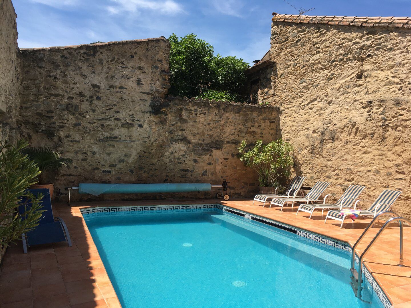 T Jolie demeure en campagne avec piscine et studio indépendant. Située dans un village paisible proche de la Vallée de l'Orb à 15 minutes de Roquebrun, 10 minutes de Cessenon sur Orb et 30 minutes de Béziers, cette demeure est constituée de différents bâtiments entièrement restaurés. L'entrée se fait en passant sous le porche donnant sur la cour qui dessert plusieurs locaux (atelier- cave et local technique), un escalier tout en pierre mène à une grande terrasse de 33 m² desservant l'espace piscine, l'habitation principale et le studio avec entrée indépendante. L'habitation principale sur 3 niveaux : - RDC : espace jour de avec cuisine équipée et petit salon avec poêle à bois - Niveau 1 : 2 chambres et une salle de bain avec wc - Niveau 2 : grande pièce avec sol en parquet et petit balcon- 1 chambre et 1 salle d'eau avec wc. Le studio (entrée indépendante) : d'une surface de 23 m², il se présente avec une kitchenette et coin nuit ainsi qu'une petite salle d'eau avec wc. La piscine : entourée de vieilles pierres 10x4.40 et 140cm de profondeur plage d'environ 30 m² autour du bassin. Un lieu tout en discrétion, facile à vivre, au coeur d'un petit village pittoresque du Parc Naturel Régional du Haut Languedoc. La maison est vendue entièrement meublée. Visite sur rendez-vous.Informations LOI ALUR :