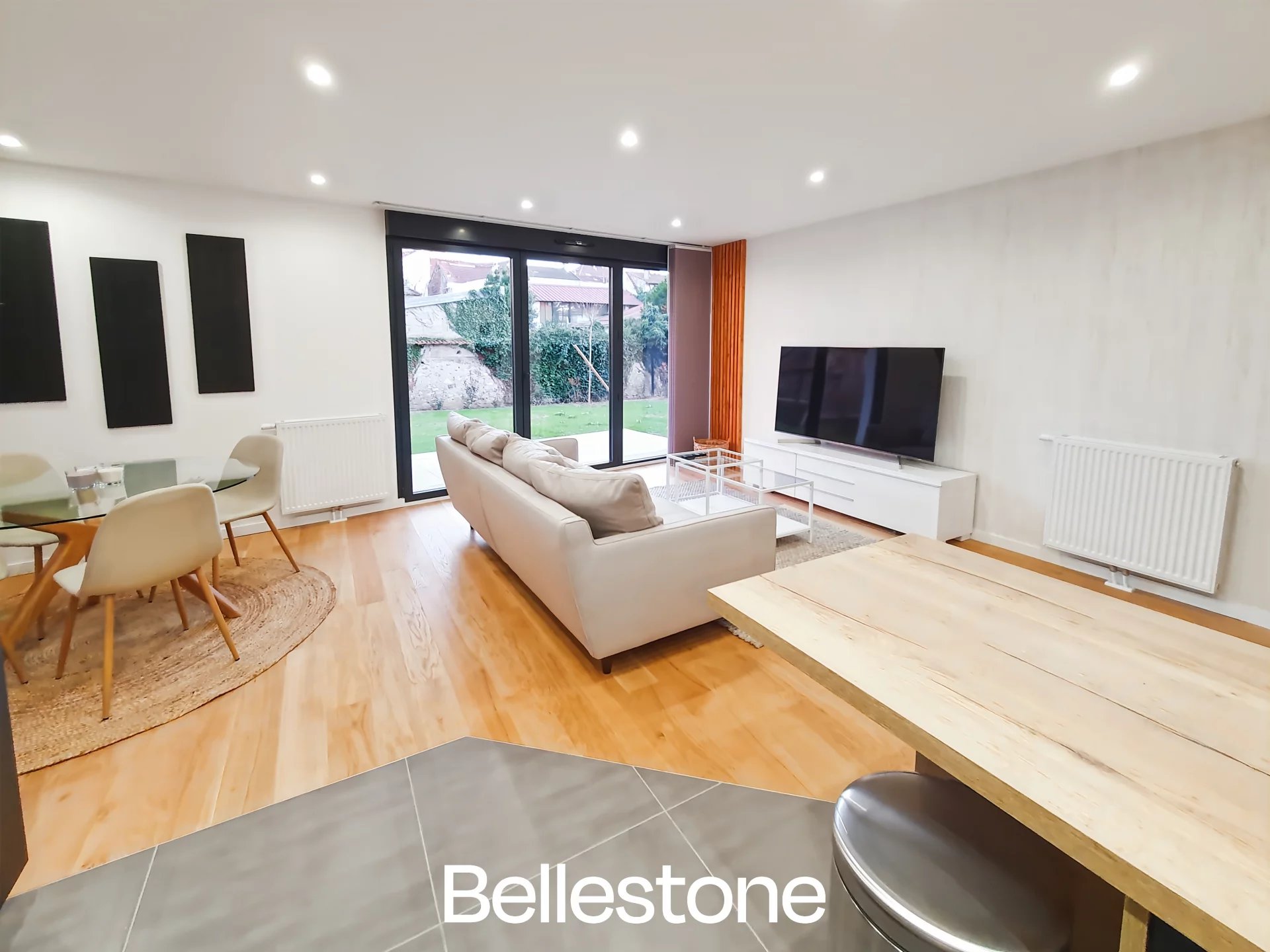 Situé à la fois au calme et au centre ville de Noisy avec toutes ses commodités, cet appartement de type T4 de 77 m² exposé Sud Ouest bénéficie d'un espace extérieur de plus de 160 m². La résidence de 2017 est qualitative avec de très belles prestations et répond aux normes de constructions récentes (ascenseur, visiophone, volets roulants électriques...). L'appartement se compose d'une entrée desservant un grand double séjour/cuisine de plus de 30 m², trois chambres dont une suite avec salle d'eau privative, une autre salle de bain et un toilette séparé. Toutes les pièces ont un accès direct sur le jardin intérieur privatif. Le bien est vendu avec une double place de parking en sous-sol. Les informations sur les risques auxquels ce bien est exposé sont disponibles sur le site Géorisques