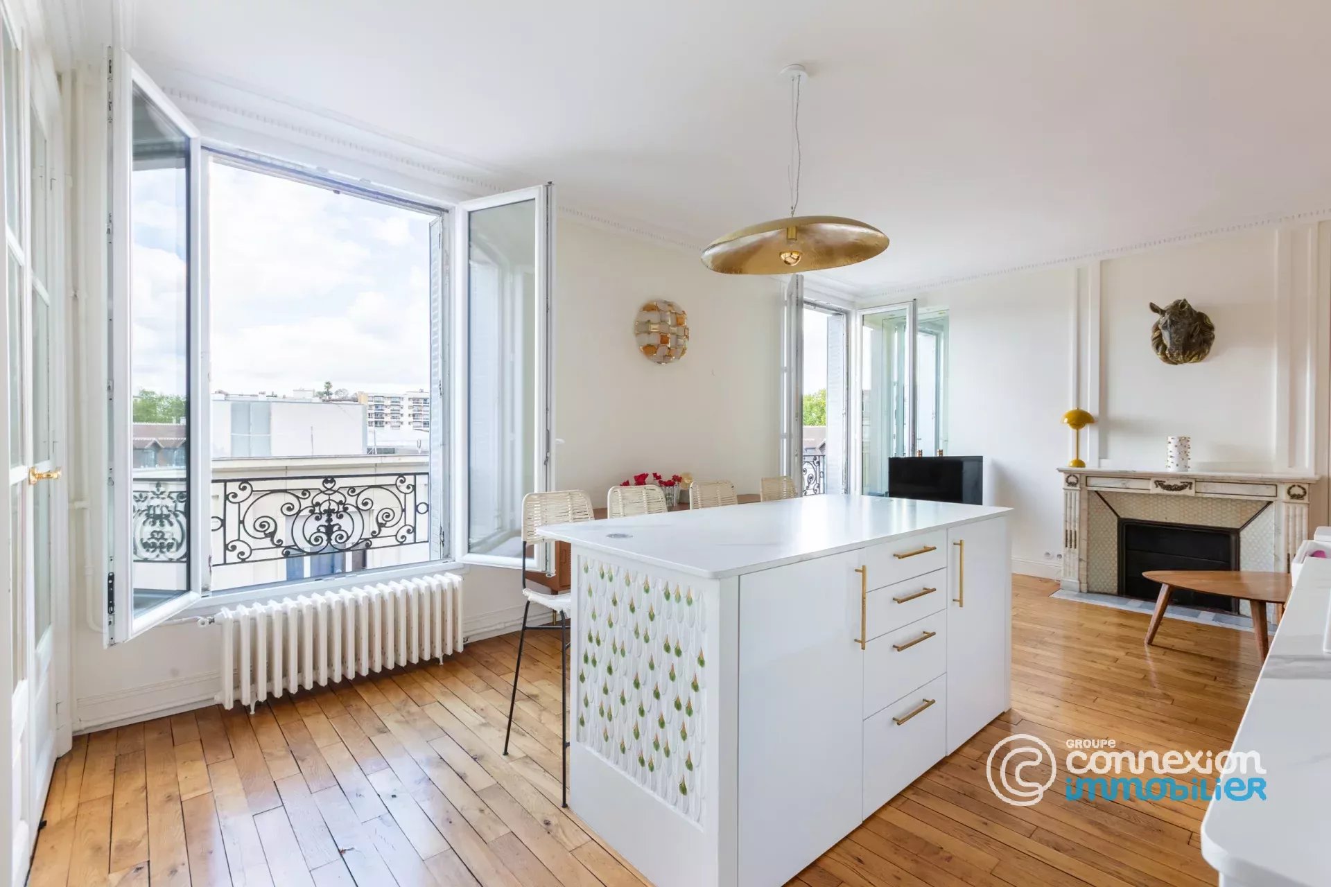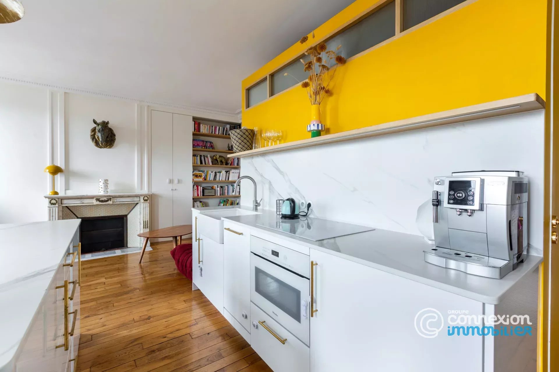 A deux pas du square Théodore Monod et du Jardin des Plantes, dans un bel immeuble de 1920, au 4ème étage avec ascenseur, appartement de trois pièces qui se compose d'un séjour avec cuisine US, de deux chambres, d'une salle de bains avec WC. Nombreux rangements. Vue dégagée, pas de vis à vis. Parquet, moulures et très belle cheminée. Refait avec goût et matériaux de qualité. Une cave et un local vélo complètent ce bien.
