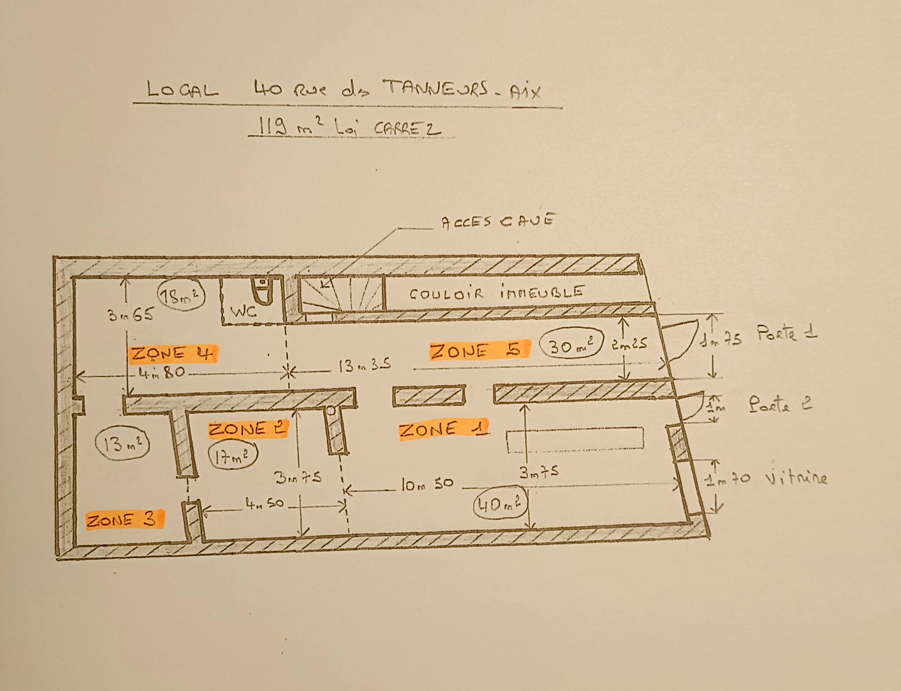 Plateau de 121 m² au RDC dont 119 m² Carrez, avec 2 entrées sur la rue