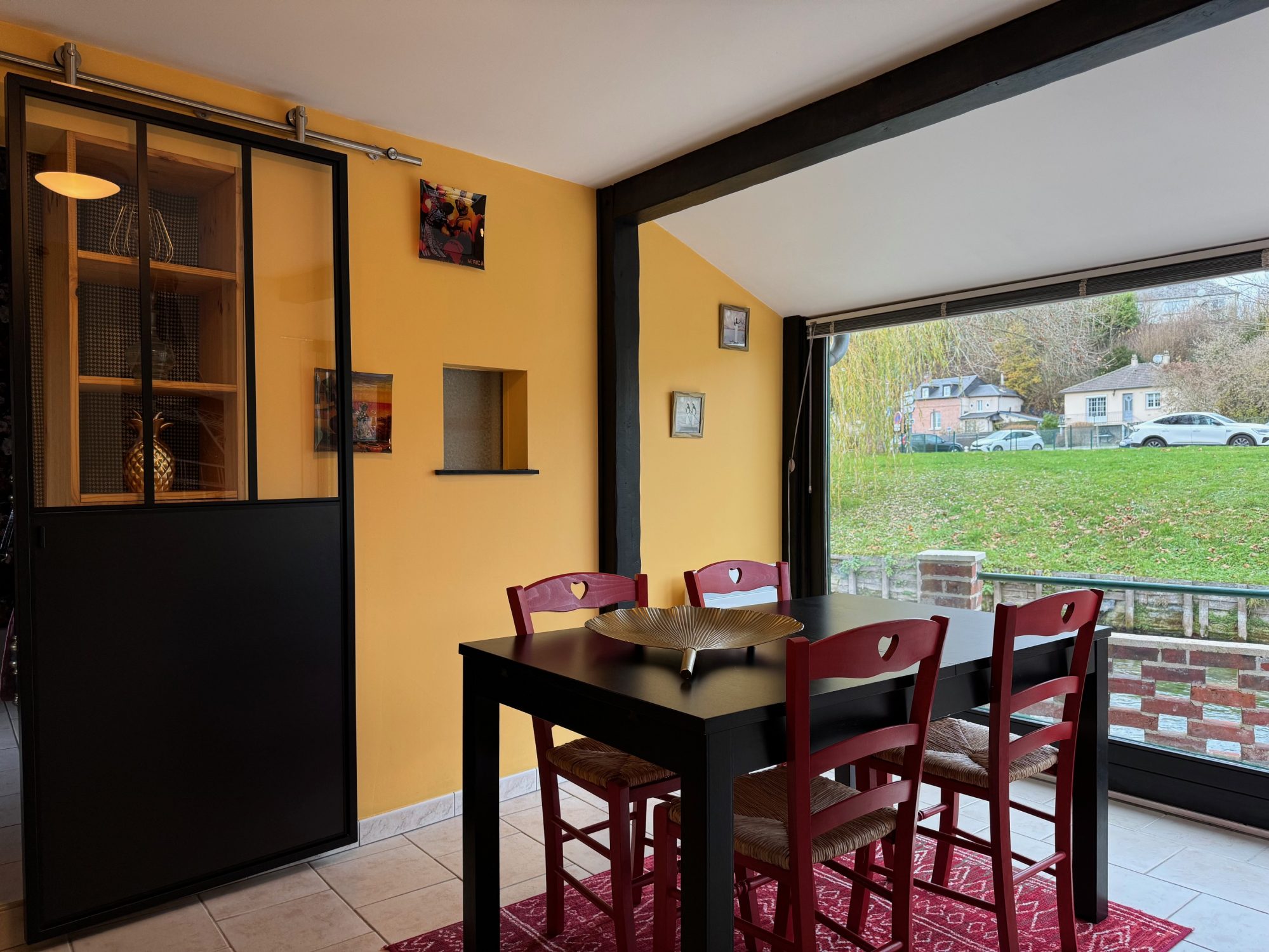 Très beau jardin avec deux terrasses et accès direct à la rivière. Un garage avec une remise. Chauffage électrique, huisseries PVC double vitrage et tout à l'égout conforme.