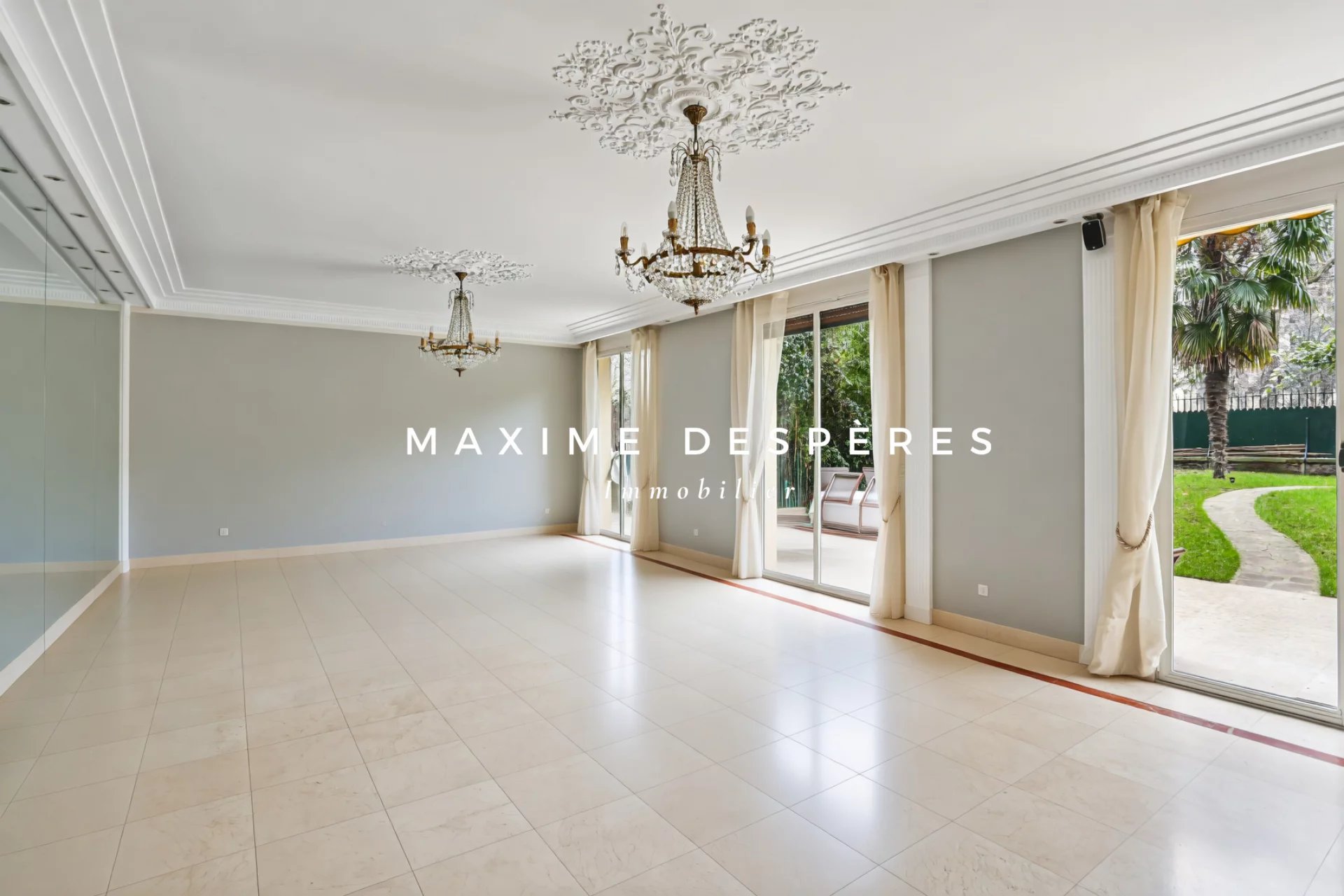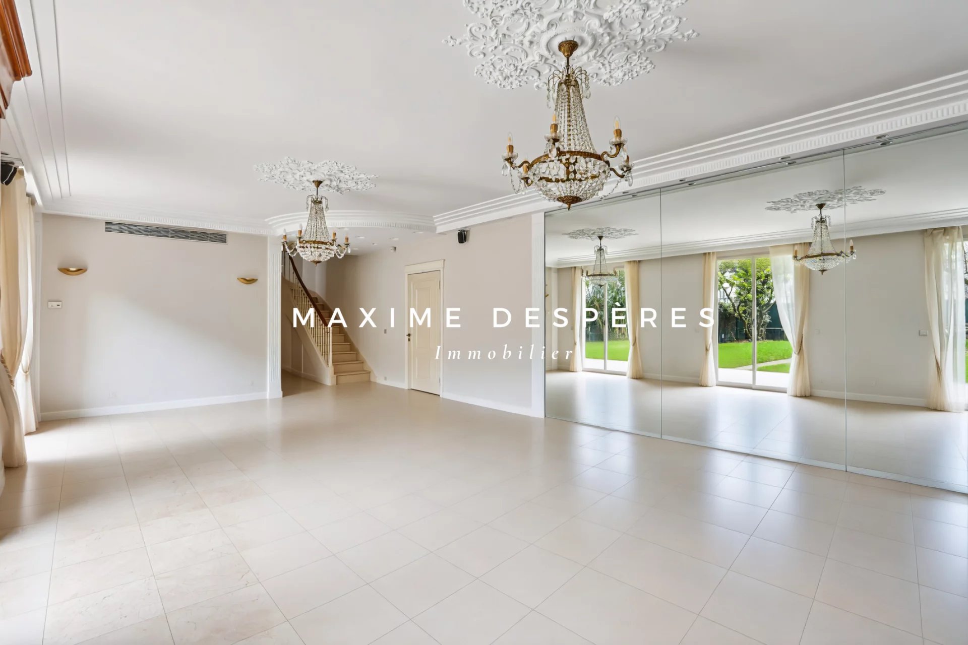 *Appartement 234.70m² pondérés (180.51m² Loi Carrez)* Situé dans le quartier Mairie, dans un immeuble semi-récent de standing avec gardien, l'agence MAXIME DESPÈRES vous propose un appartement de 180.51m² en rez-de-jardin sur deux niveaux. Ce bien familial d'exception se compose: d'une entrée, d'une double réception ouvrant sur un jardin de 210m² exposé SUD, d'une cuisine séparé et de toilettes invités. A l'étage, cinq chambres dont une suite parentale avec dressing, salle de bain et toilettes donnant sur un balcon filant, une salle de bain , deux salles d'eau dont une avec WC, un salon TV et un WC séparé. Deux caves complètent ce bien. Un studio de service ainsi que deux emplacements de parkings sont disponibles en sus du prix. Honoraires à la charge de l'acquéreur de 1% (prix hors honoraires:3 465 000€). Pas de procédure en cours. Charges annuelle: 11 654€/an. Nombre total de lots : 191. Lots d’habitation : 74. Les informations sur les risques auxquels ce bien est exposé sont disponibles sur le site Géorisques