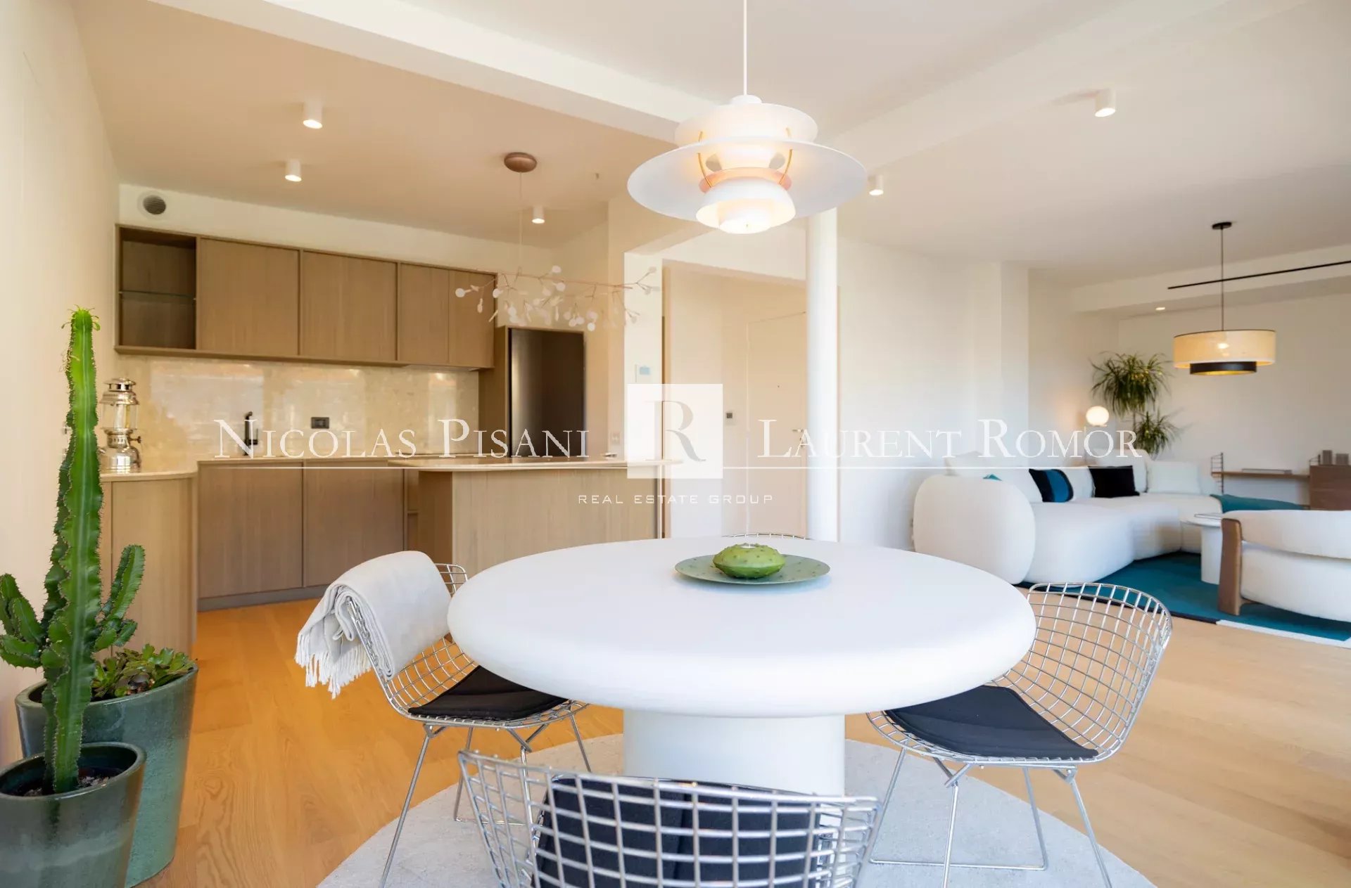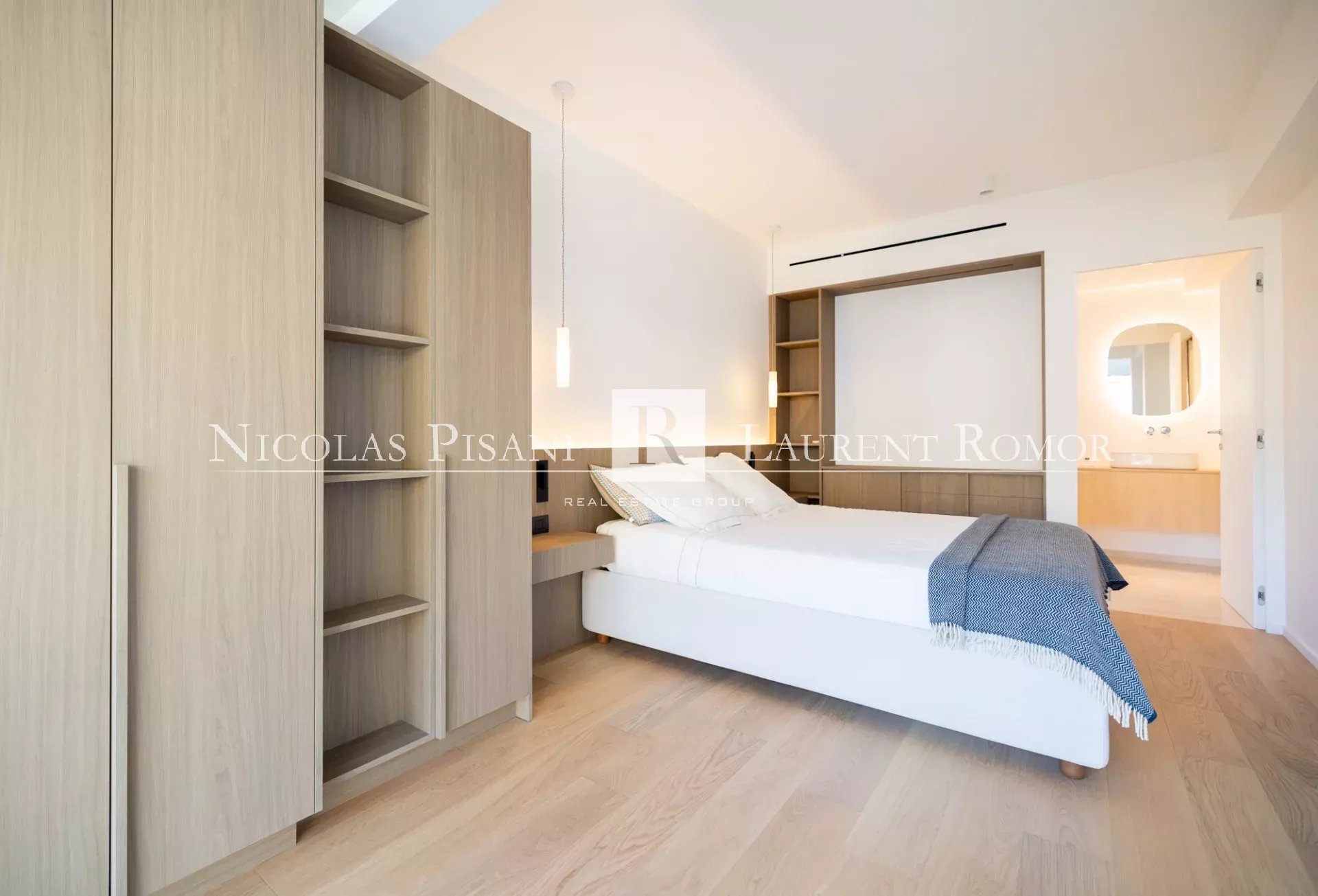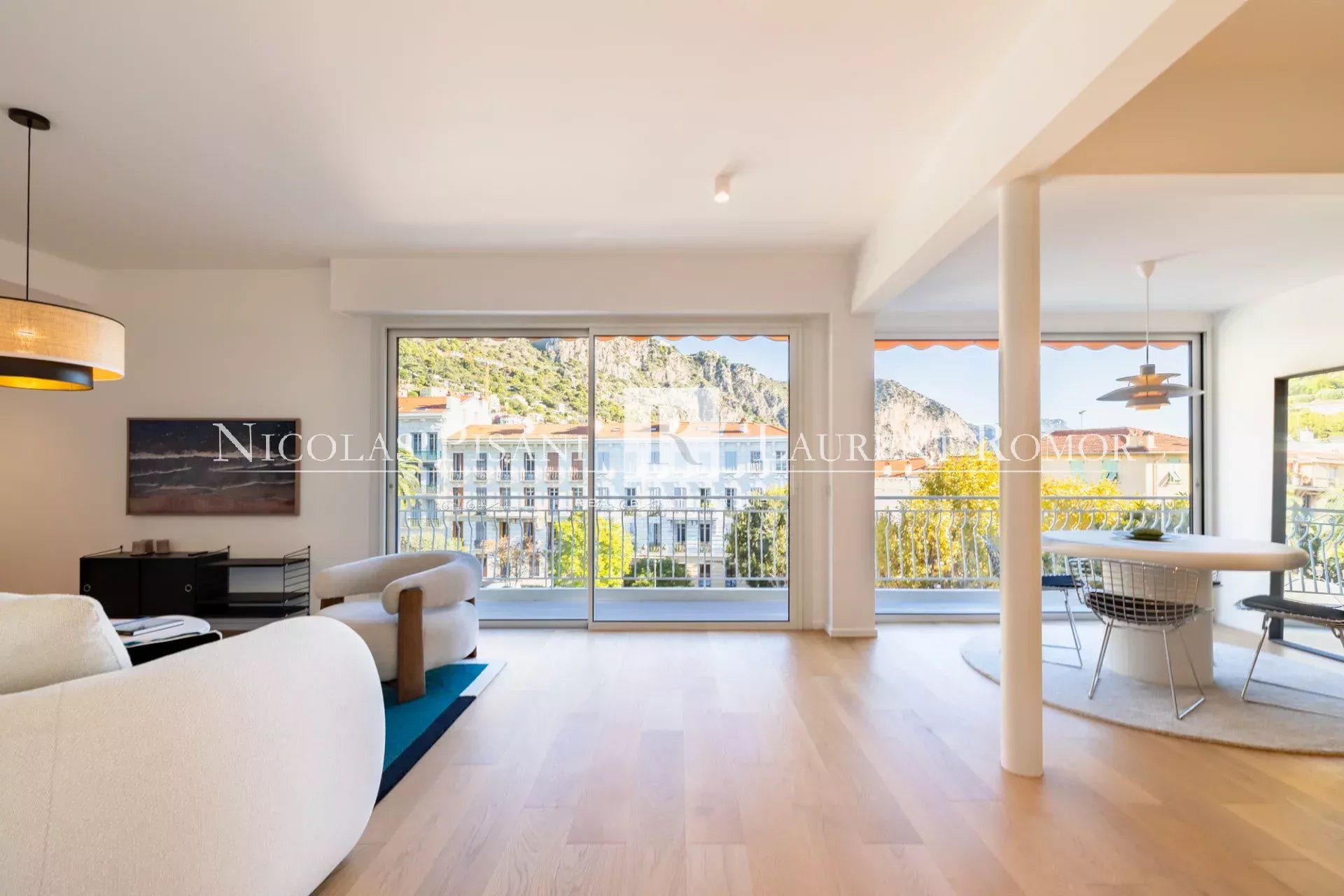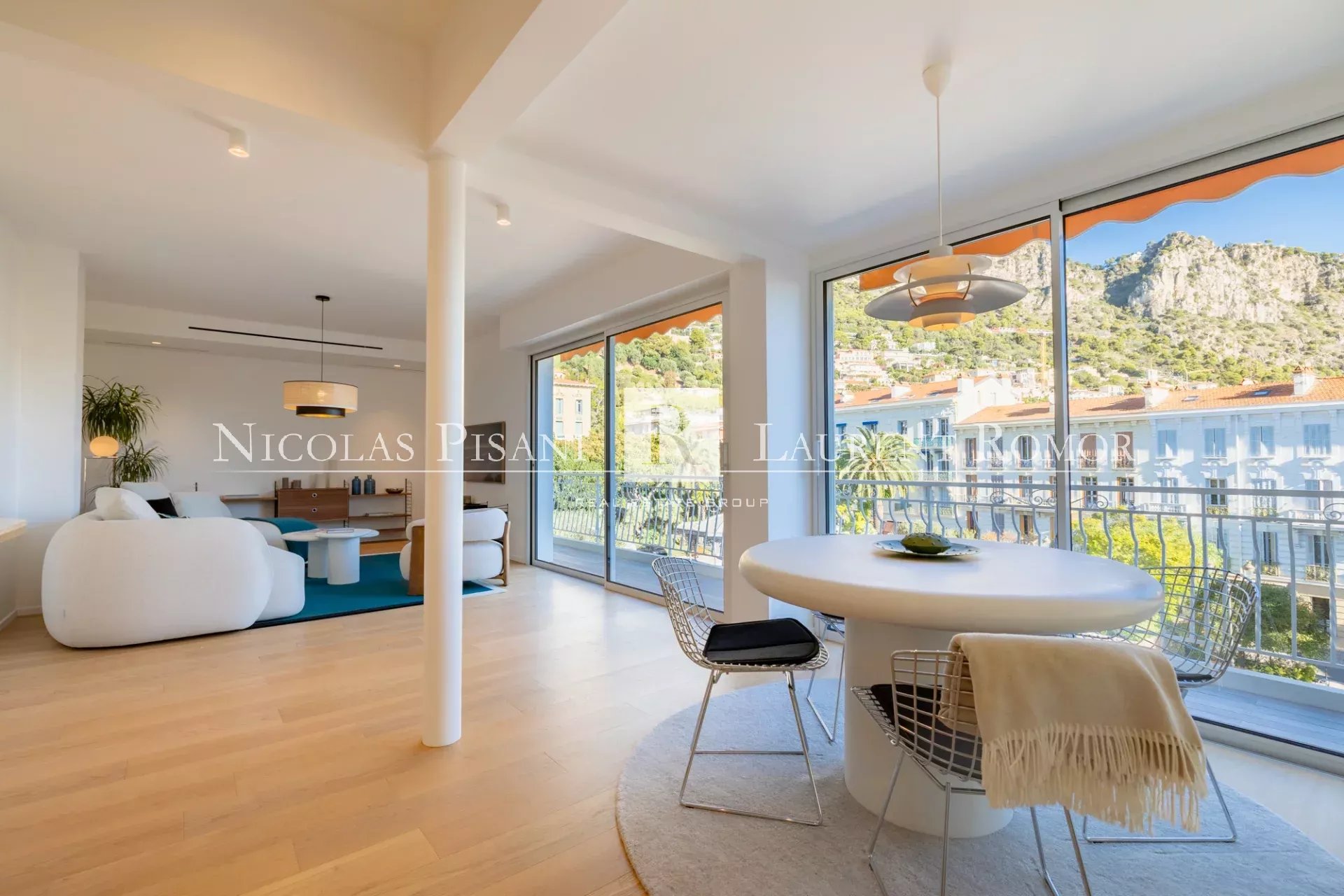 Beaulieu sur mer, au coeur de la ville, sur la place du marché, à pied des commerces et des plages, bel appartement 3 pièces de 88 m² avec balcon. Au dernier étage d'un immeuble de standing, l'appartement a été entièrement rénové avec de beaux matériaux. Il se compose d’un lumineux séjour offrant une très belle vue dégagée, d'une cuisine, de deux chambres, deux salles de douche dont une spacieuse avec WC, ainsi qu’un coin buanderie complètent l’ensemble. Entièrement climatisé l'appartement peut être vendu meublé. Frais d'agence à la charge du vendeur.