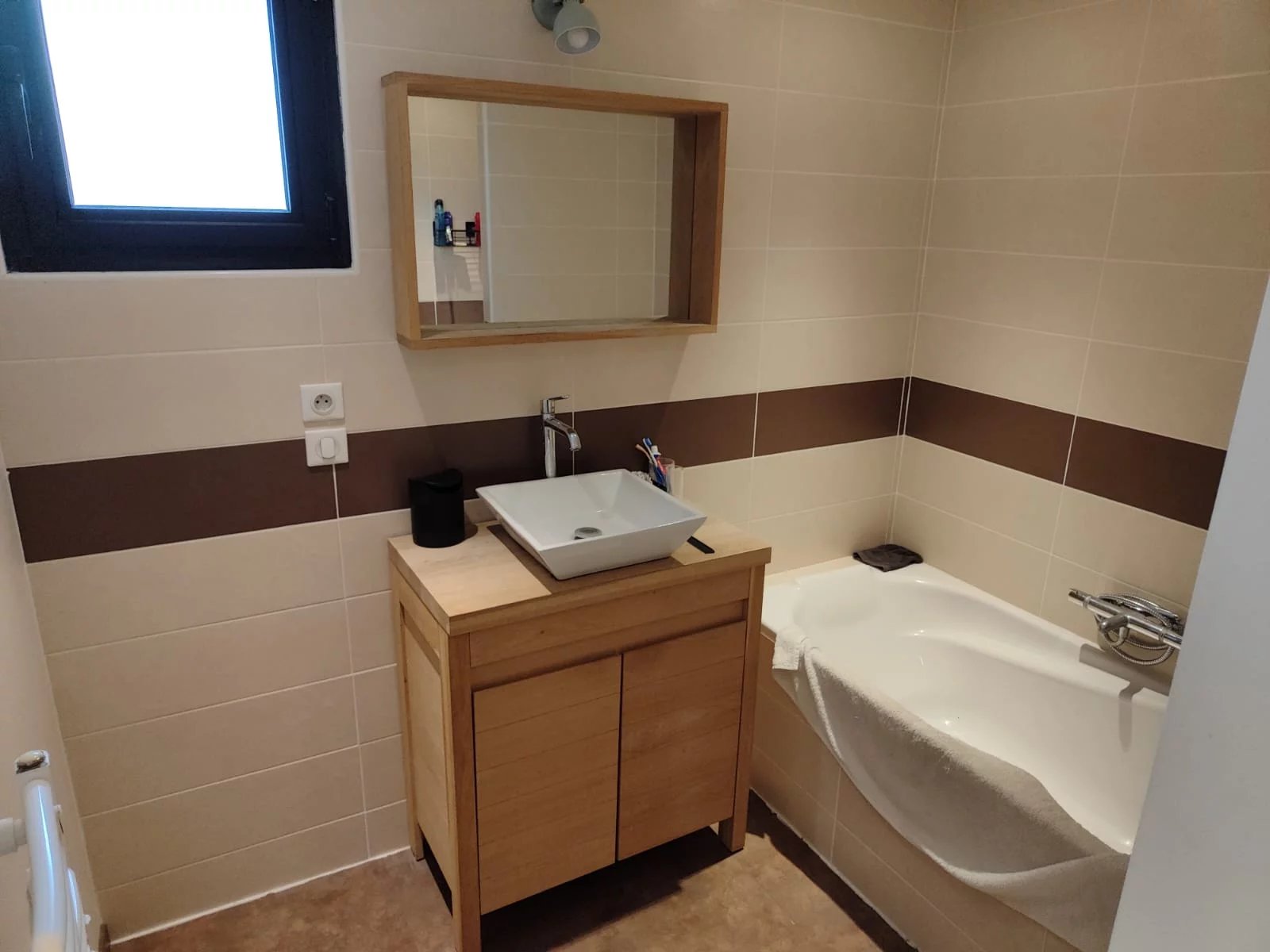 Salle d'eau avec douche + baignoire