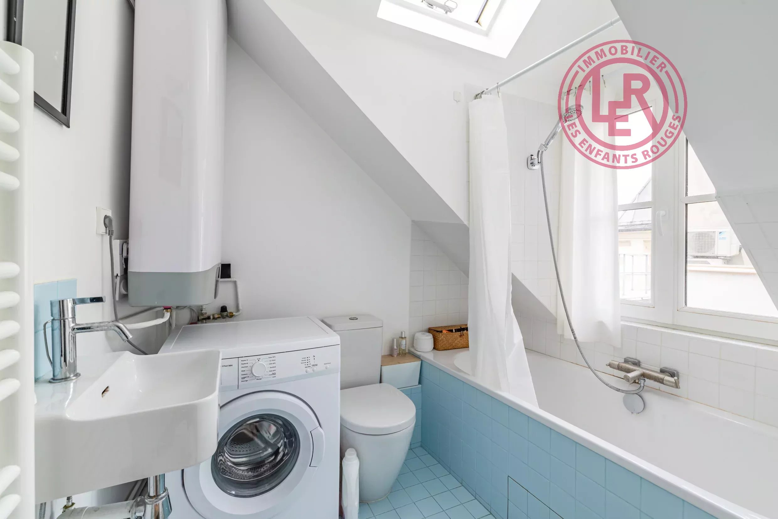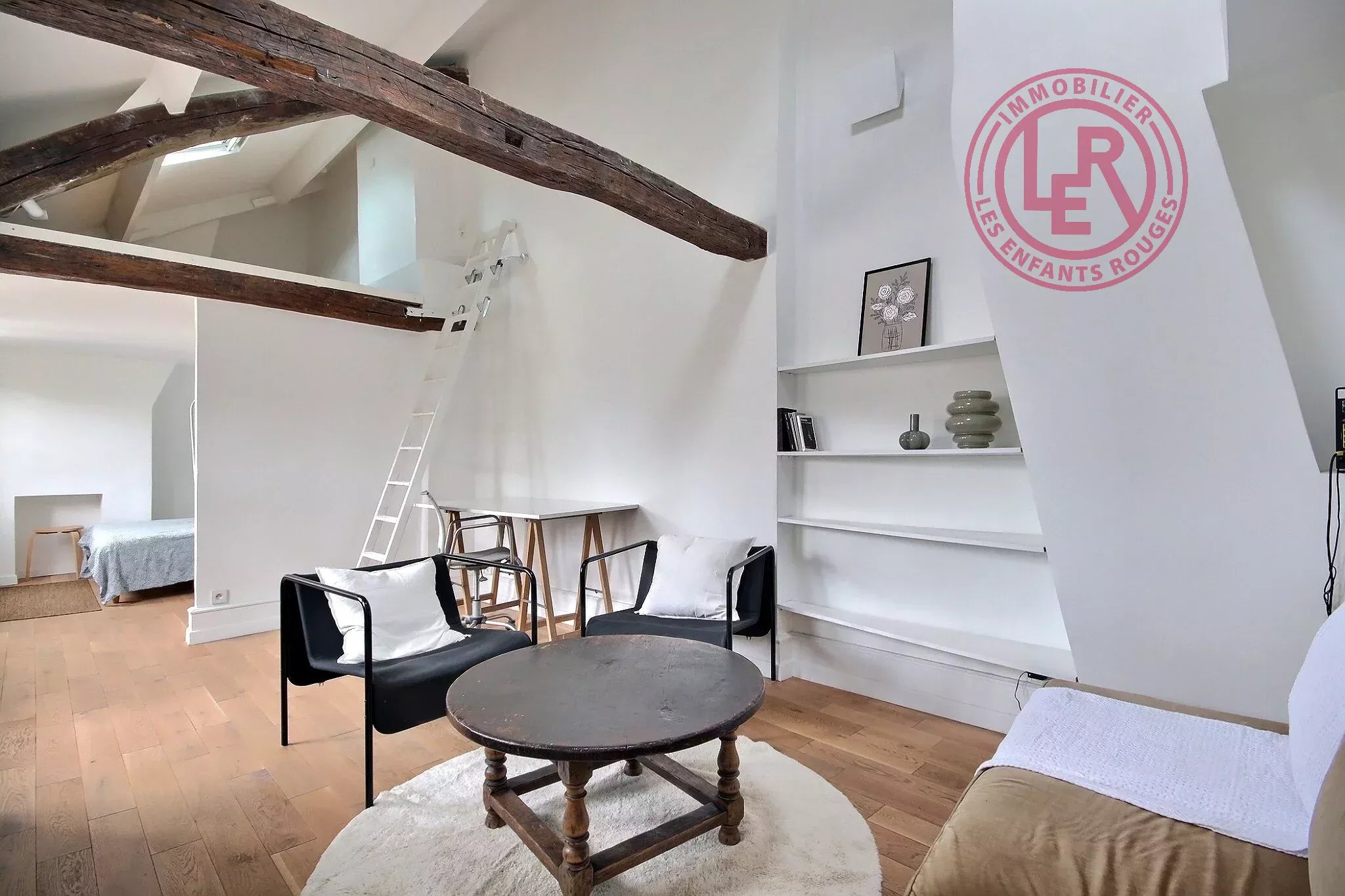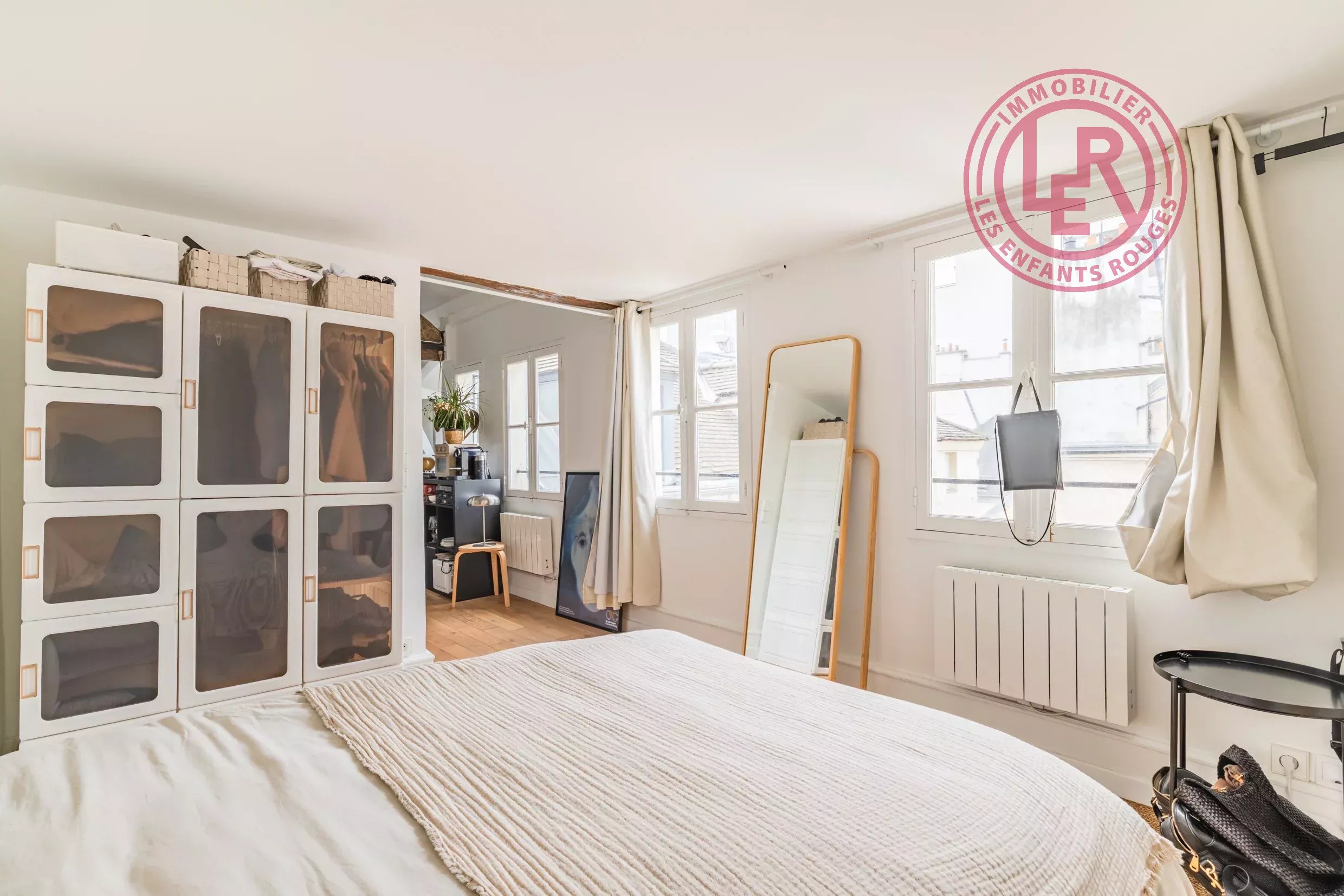 Au cœur du Marais historique, dans l’une des adresses les plus recherchées du quartier, ce ravissant deux-pièces de 33m2 loi Carrez et 44m2 au sol est situé aux derniers étages d’un immeuble parisien de caractère.