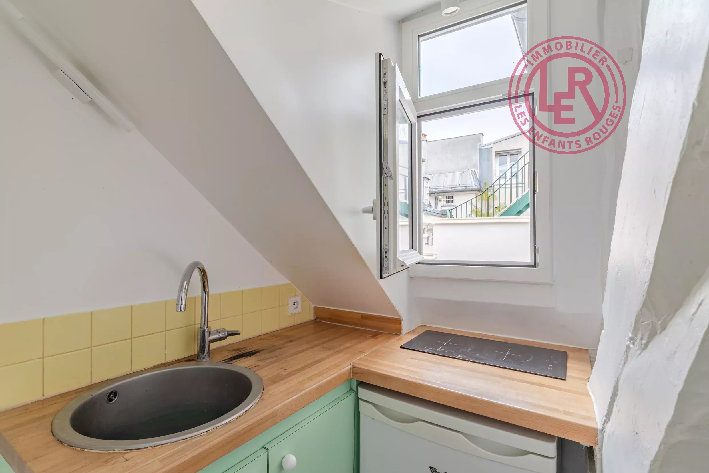 L’agencement a été pensé de manière optimale, offrant un intérieur fonctionnel et chaleureux, un véritable cocon parisien. La chambre est aujourd’hui ouverte et peut être facilement fermée par la simple installation d’une porte, selon les besoins. Une mezzanine d’environ 10 m² au sol, non comptabilisée dans la surface Carrez, complète ce bien et offre un espace supplémentaire idéal (coin nuit, bureau ou rangement).