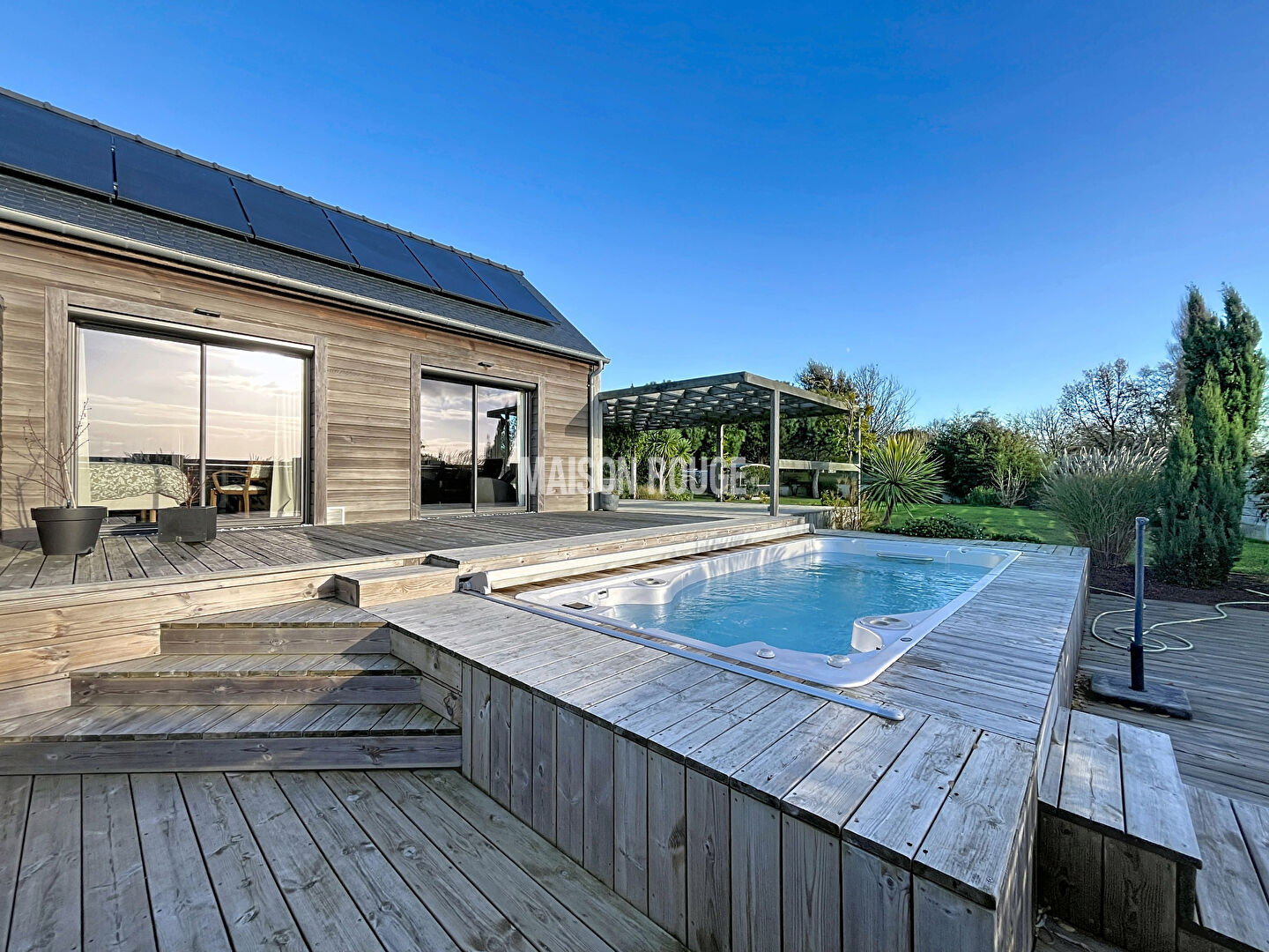 Maison en ossature bois sur 1 060 m² de terrain clos, arboré et sans vis à vis. Elle se compose : - Au rez-de-chaussée : salon-séjour avec poêle à bois, cuisine ouverte équipée-aménagée, salon home-cinéma et une suite parentale avec salle d'eau privative. - A l'étage : mezzanine, deux chambres dont une avec lit escamotable et une salle de bains avec douche et baignoire. La mezzanine donne accès à une chambre type dortoir sous combles. Grand garage, atelier, jardin, cour avec places de parking, terrasse bois, SPA avec nage à contre courant, panneaux solaire pour auto-consommation et revente du surplus. Maison très lumineuse, beaux volumes, nombreux rangements, matériaux de qualité, vie de plain-pied, idéalement exposée, à l'abri des regards, ... 10 min. de la Gare TGV, de la plage, 2 min des commerces. Prix FAI : 754 560 euros dont 4.80 % honoraires TTC à la charge de l'acquéreur. Soizic BRETON (EI) Agent Commercial - Numéro RSAC : 750758575 - SAINT MALO.
