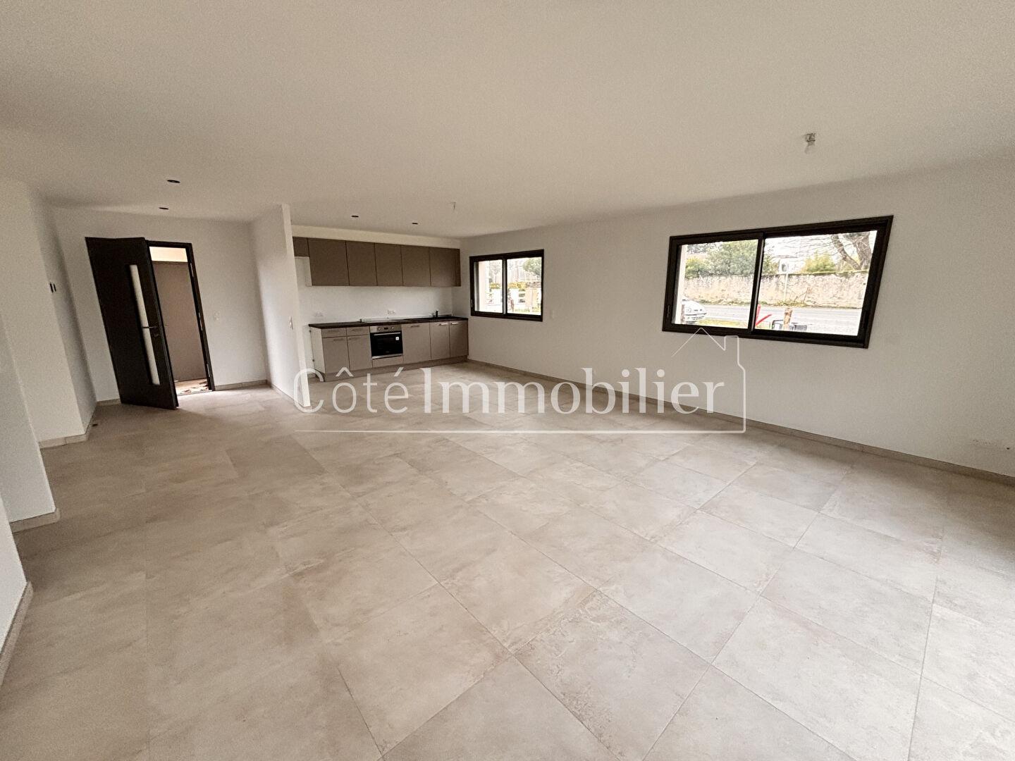 Maison neuve de plain-pied de 2025, Bourg, impasse calme. Située au coeur du bourg, dans une impasse au calme, cette maison neuve de 2025, entièrement de plain-pied, offre confort et modernité. Elle se compose d'une entrée avec placard, d'une spacieuse pièce de vie de 48 m² comprenant une cuisine aménagée et équipée ouverte, l'ensemble donnant directement sur le jardin exposé plein sud. La partie nuit dispose d'un dégagement desservant trois chambres, toutes dotées de placards intégrés, d'une salle de bains avec baignoire et douche, ainsi que d'un WC séparé. Une buanderie et un atelier de 14 m² viennent compléter cet ensemble. Vous bénéficierez également d'un double stationnement privatif et du confort d'un chauffage au sol par pompe à chaleur. Le tout sur un terrain clos de 356 m², parfaitement orienté plein sud. Disponible Début février 2026 COTE IMMOBILIER - BASSE GOULAINE 02.40.03.43.94 www.cote-immobilier.com