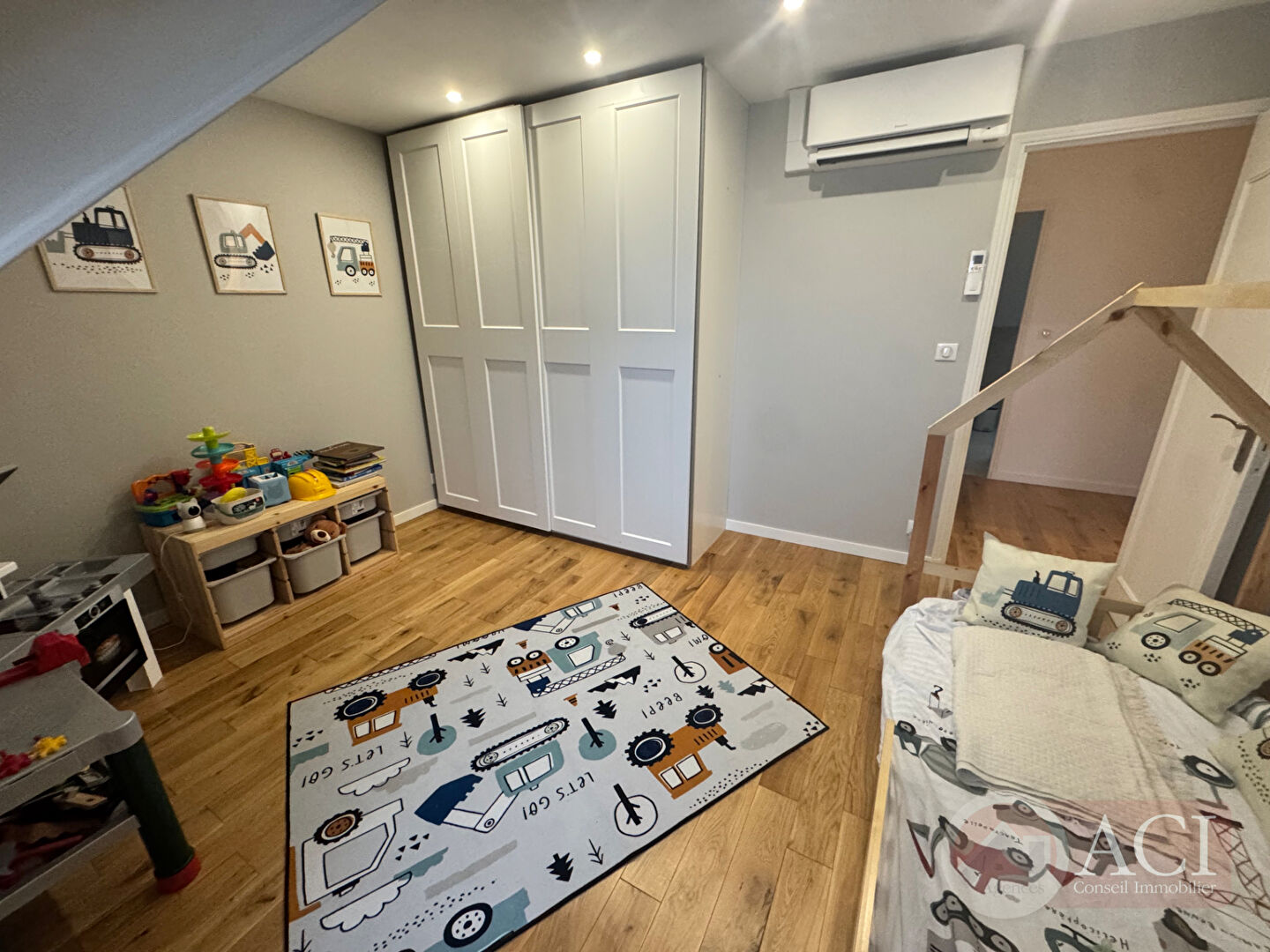 Au sein d'un quartier pavillonnaire recherché pour ses proximités avec la gare, les écoles et le commerces, cette maison familiale de 130m² au sol (120m² loi carrez) refaite à neuf avec des matériaux de grandes qualités vous offre: Grande entrée, double séjour de plus de 34m² avec cheminée donnant accès à une grande TERRASSE exposée PLEIN SUD et vue sur le JARDIN ARBORÉ de plus de1300m², sans aucun vis-à-vis, cuisine dinatoire aménagée et équipée, wc avec point d'eau (possibilité salle d'eau). A l'étage, un palier confortable dessert 4 chambres dont une grande SUITE PARENTALE avec un magnifique dressing , sa salle d'eau et wc, une salle de bain avec wc. Sous-sol total carrelé avec une grande salle de jeux climatisé, grand garage avec porte électrique possibilité de garer plus de 5 véhicules sur la propriété. Pompe à chaleur et ballon thermo dynamique ( consommation très raisonnable ) Le tout édifié sur un terrain arboré de 1302m² avec puits, Ravalement 2020. PARFAITEMENT ENTRETENUE, AUCUN TRAVAUX A PREVOIR, BEAUX VOLUMES Mickael NAZARIAN (EI) Agent Commercial - Numéro RSAC : - .