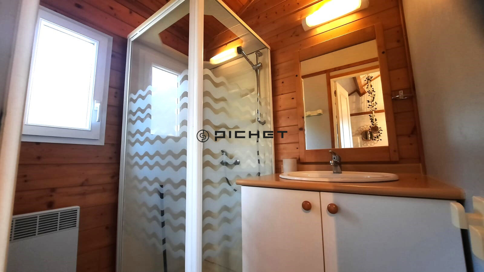 Chalet à vendre à 2 pas de Brive. Dans une résidence vacances ouverte à l'année, dans un écrin de verdure, chalet de 27m2 comprenant, pièce à vivre avec cuisine équipée, 2 chambres, salle d'eau avec WC, terrasse et jardin autour. Loué en AirBnB 75 euros la nuitée en haute saison. Entièrement refait à neuf. Copropriété de 98 lots - dont 98 lots habitation. (Pas de procédure en cours). Charges annuelles : 797.28 euros.