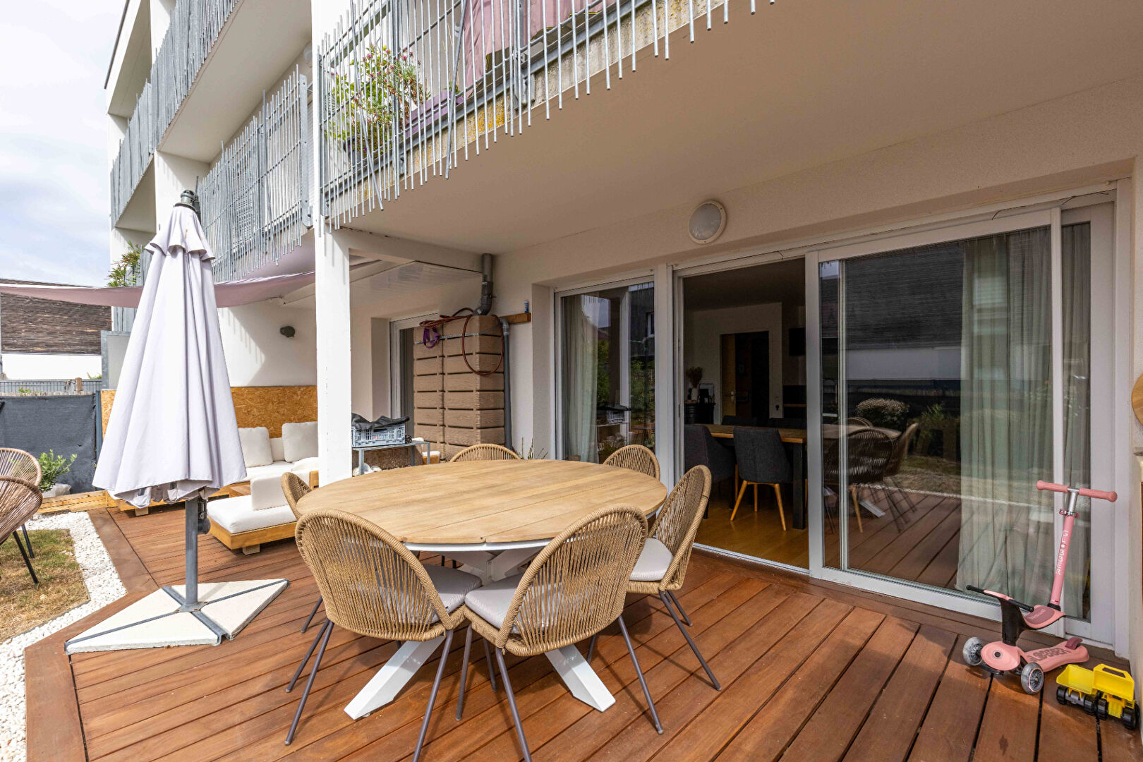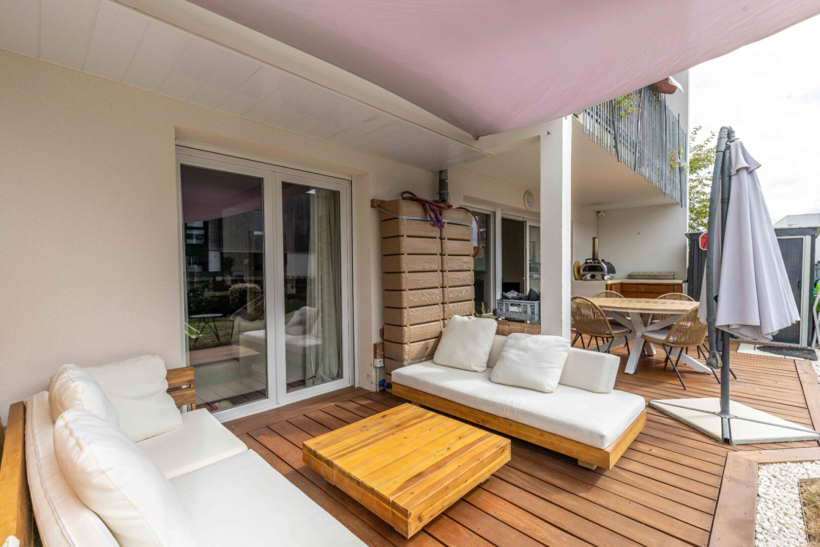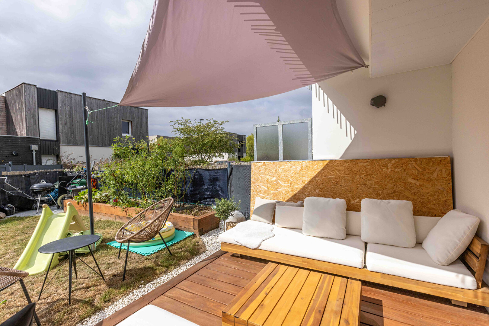 A VENDRE - EXCLUSIVITÉ CABINET BARTH IMMOBILIER CHARTRES DE BRETAGNE - APPARTEMENT 4 PIÈCES 2015 -JARDIN - CHARTRES DE BRETAGNE Retrouvez nos biens en vidéo sur Instagram : barth_immobilier A proximité du parc des loisirs ,dans un lotissement calme et familial et au pied d'un arrêt de bus STAR, venez découvrir ce magnifique appartement de 2015 entièrement rénové, qui allie fonctionnalité et finitions parfaites ! Celui-ci se compose d'une entrée avec placard desservant 2 chambres dont une avec placard, d'une jolie et spacieuse salle d'eau, d'un WC et d'un grand salon/séjour/cuisine avec buanderie attenante . Possibilité de facilement créer une 3ème chambre comme initialement agencé. Vous apprécierez la modernité et l'agencement de ce véritable appartement coup de coeur et profiterez également d'un extérieur de 76 m2 aux prestations toutes aussi soignées , comme l'en attestent votre agréable jardin privatif clos et sa jolie terrasse aménagée de 35 m2. Enfin pour compléter cette belle découverte, un local de stockage isolé et 2 places de parking privatives, dont une couverte, viendront valider ce joli bien classé C aux faibles charges de copropriété . Alors , nous visitons quand votre futur chez vous ? Référence : 1802FD (4.46 % honoraires TTC à la charge de l'acquéreur.) Copropriété de 27 lots - dont 8 lots habitation. (Pas de procédure en cours). Charges annuelles : 700 euros. Franck DAHYOT (EI) Agent Commercial - Numéro RSAC : 978041069 - Rennes.