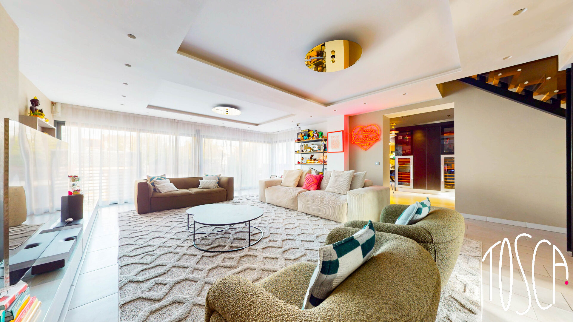 A seulement 6 minutes à pied du tram T9, découvrez cette maison entièrement rénovée et agrandie avec un goût contemporain raffiné, offrant un équilibre parfait entre élégance architecturale et confort moderne. D'une surface habitable de 330 m² (407 m² utiles) sur un terrain de plus de 700 m², cette demeure séduit par ses volumes généreux et sa luminosité exceptionnelle grâce à de grandes baies vitrées ouvertes sur le jardin. Le séjour de 50 m², baigné de lumière, donne un accès direct au jardin, complété par une grande cuisine ainsi qu'une salle à manger attenante, toutes équipées avec des matériaux et électroménagers de standing. La maison propose 5 chambres, dont une suite parentale de 17 m² avec dressing de 18 m² et une salle de bains somptueuse (douche et baignoire). Le premier étage accueille 4 chambres, offrant de multiples possibilités d'aménagement pour une vie de famille, avec salle de bains et salle d'eau séparées, chacune aménagée avec des prestations modernes et soignées. Les espaces de travail et de détente sont tout aussi remarquables : un bureau de 34 m² avec baie vitrée donnant sur le jardin et, au-dessus, une salle de cinéma privative. Le sous-sol, composé de 3 pièces généreuses, est extrêmement modulable : idéal pour une buanderie, salle de jeux, salle de sport ou tout autre usage selon vos envies. Côté équipements et prestations, la maison est entièrement domotisée, dispose d'une piscine entourée d'un terrain de pétanque et d'une cuisine d'été pour passer d'agréables moments pendant les beaux jours, d'un garage double de 40 m² avec mezzanine, et de plusieurs places de stationnement extérieures. Alliant l'élégance, le confort moderne et un emplacement privilégié, cette propriété représente une opportunité rare sur le marché. Pour découvrir cette propriété, une visite virtuelle est proposée exclusivement sur rendez-vous privé à l'agence. Réf Mandat n°1348. Honoraires d'agence inclus 5% du prix net vendeur à la charge de l'acquéreur. Les informations sur les risques auxquels ce bien est exposé sont disponibles sur le site Géorisques : http://www.georisques.gouv.fr (5.00 % honoraires TTC à la charge de l'acquéreur.)