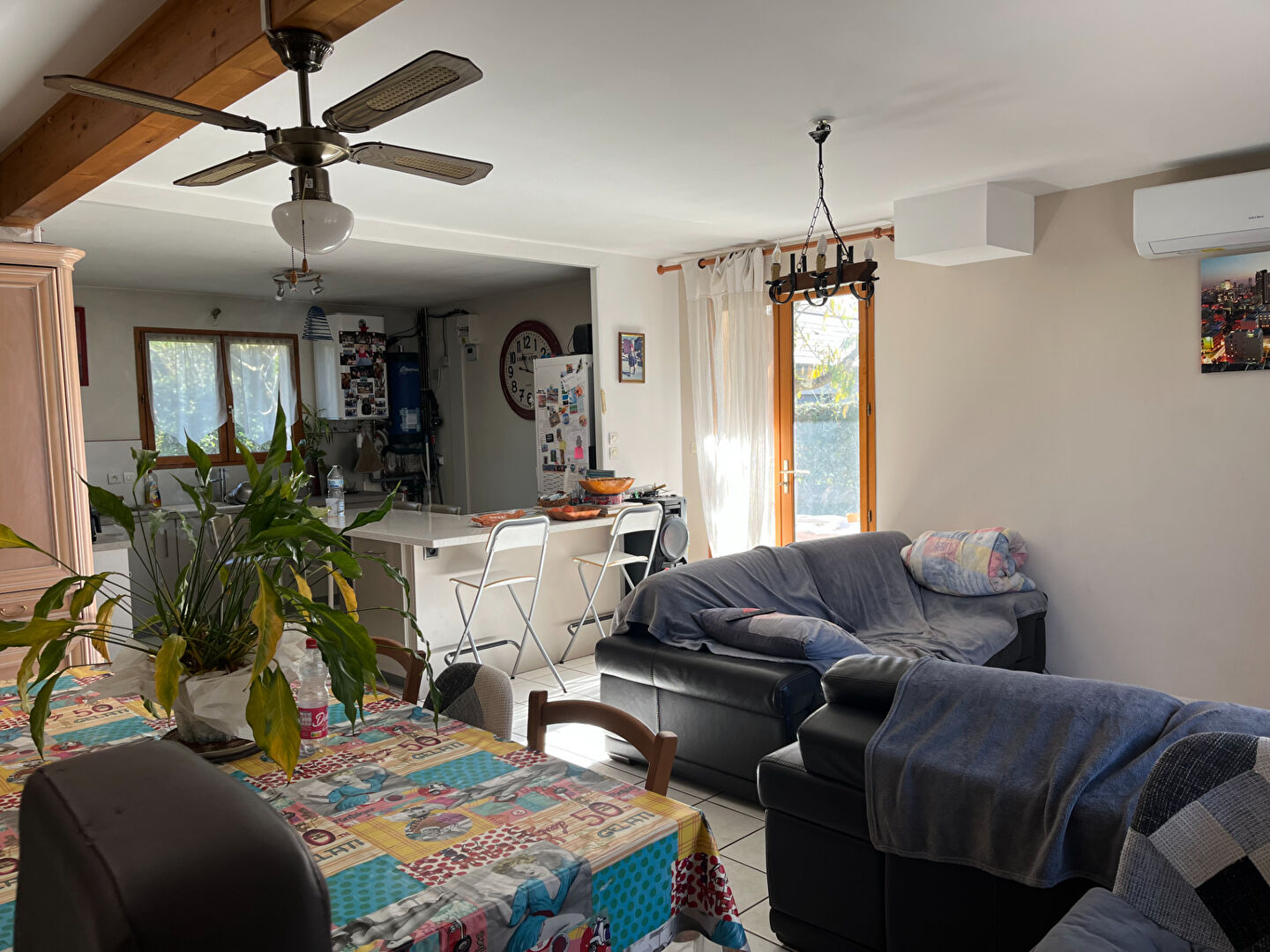 Secteur gendarmerie de Moirans, Maison de 1996, lumineuse, exposée SUD et au calme, d'environ 150 m2 sur un Terrain plat arboré, piscinable et clos d'environ 700 m2 , un Garage attenant à la maison et des places de stationnement. proche centre Moirans à pied, gare, écoles et commodités. Au RDC , Cuisine équipée ouverte sur Pièce de vie, 2 Chambres avec placards muraux, une Salle de Bain et WC séparés, accès au garage. A l'étage, 2 Chambres, une salle d'eau à terminer, un espace bureau. Une pièce au dessus du garage servant de grenier peut être aménagée Diagnostics en cours de mise à jour suite au changement de mode de Chauffage, installation d'une pompe à chaleur air /eau de 2024 et clim réversible. Panneaux photovoltaïque pour autoconsommation et revente EDF environ 500 euros/an lotissement : 6 lots d'habitation, charges d'environ 50 euros/an pas de procédure en cours Taxe foncière : 1377 euros CONTACT France : 07 63 43 24 42 France HERRY (EI) Agent Commercial - Numéro RSAC : - grenoble.