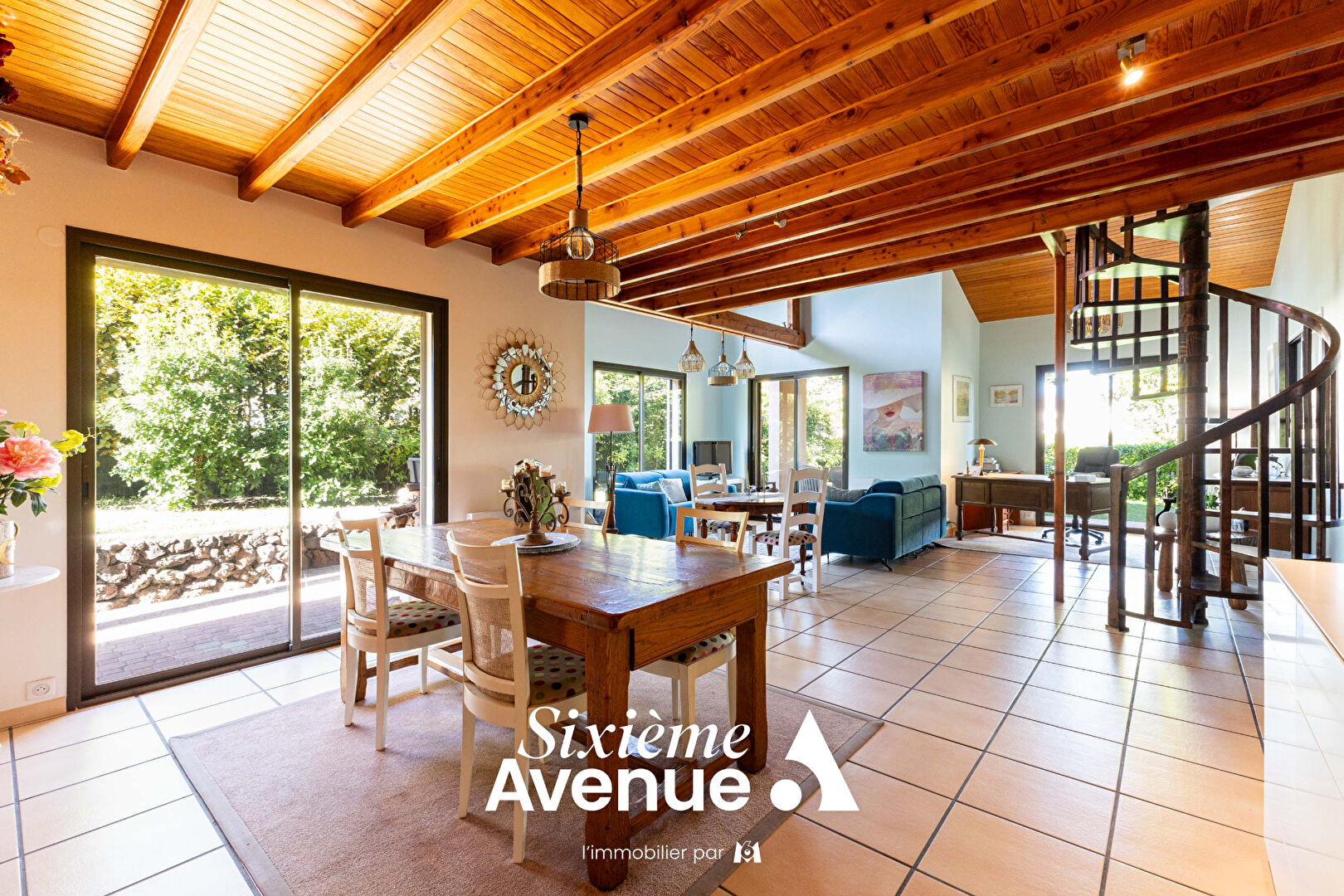 SIXIEME AVENUE CLERMONT-FERRAND vous propose à la vente cette très belle maison d'architecte des années 90 sur la commune de Romagnat ! Dans un cadre calme et verdoyant à 10 min du centre-ville de Clermont-Ferrand, cette maison affiche une surface habitable de 137 m² avec en complément un garage de 30 m² et un agréable jardin clos et arboré. Salon séjour exposé ouest avec une hauteur sous plafond de plus de 4 m et de grandes baies vitrées offrant une belle vue sur l'extérieur. Cuisine indépendante entièrement intégrée et équipée avec ouverture sur la pièce de vie. Côté nuit : - Au rez-de-chaussée, deux chambres, une salle d'eau et un WC séparé. - A l'étage, une chambre, une belle mezzanine et une salle de bains avec toilettes. En sus, un carport attenant au garage et une magnifique cave. Chauffage individuel au gaz et Poêle à bois Jotul. Menuiseries en aluminium double vitrage avec volets roulants électriques. Secteur recherché, à proximité des axes routiers. Pas de travaux à prévoir. N'hésitez pas à nous contacter pour plus d'informations ou pour organiser une visite ! Charlotte SOLELHAC (EI) Agent Commercial - Numéro RSAC : 922367568 - Clermont-Ferrand.